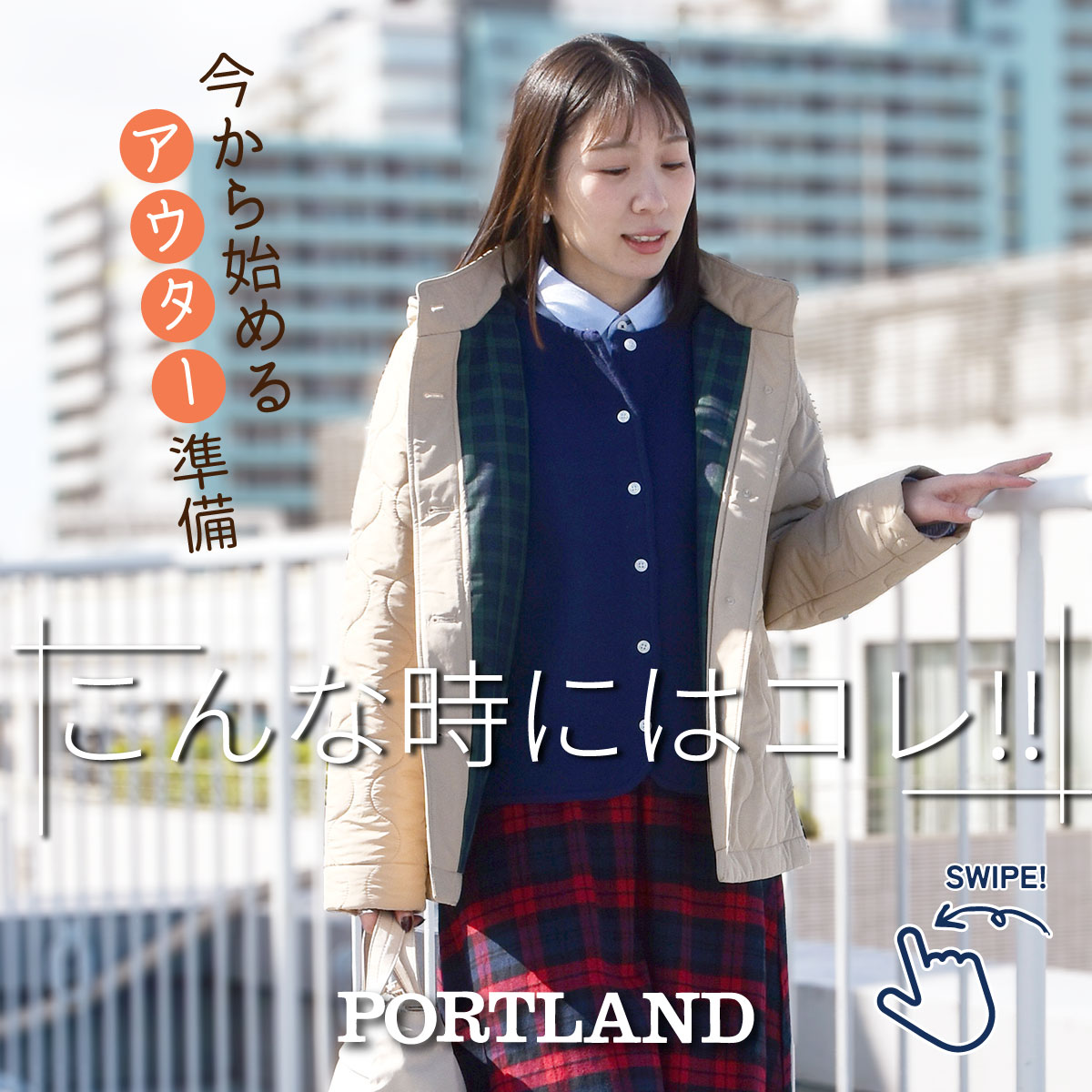 【2025秋冬】【ポートランド】薄起毛タータンチェックスカート【PS3-35952】【S22】