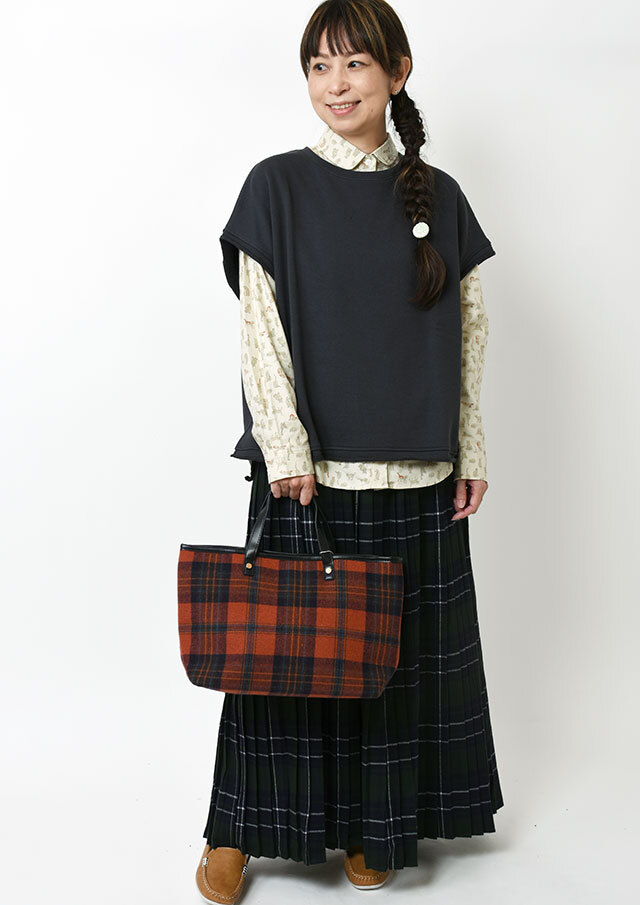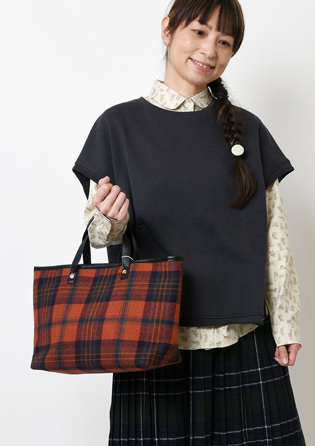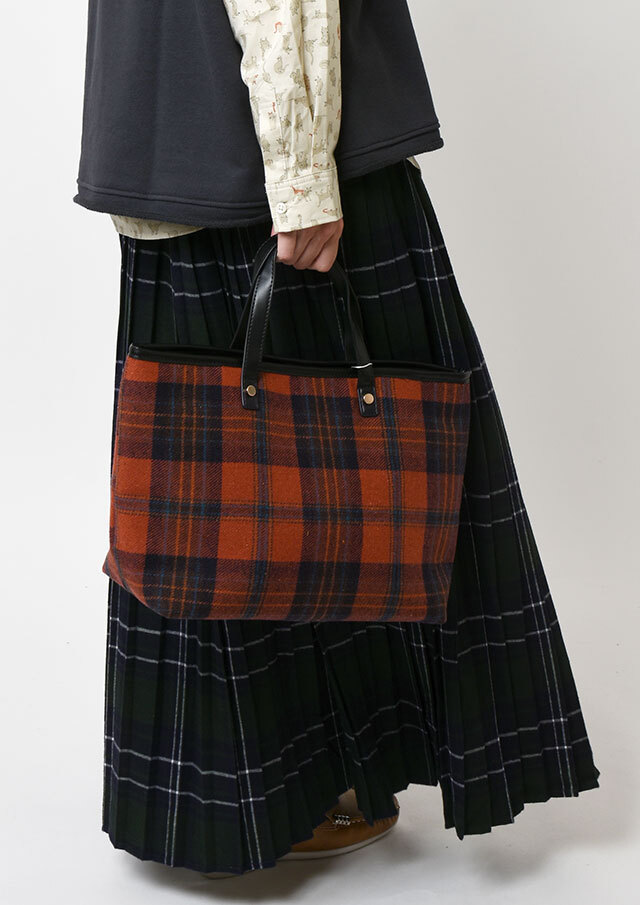 温かみのある秋冬らしいチェック生地とハンドルやパイピングでフェイクレザーを組み合わせたトラッドスタイルにもピッタリなトートバッグ。お財布やポーチ、手帳もすっきり入るミディアムサイズは、ちょっとしたお出かけにも通勤にも便利。季節感のある素材で、秋冬のおしゃれにぴったりのアイテムです。