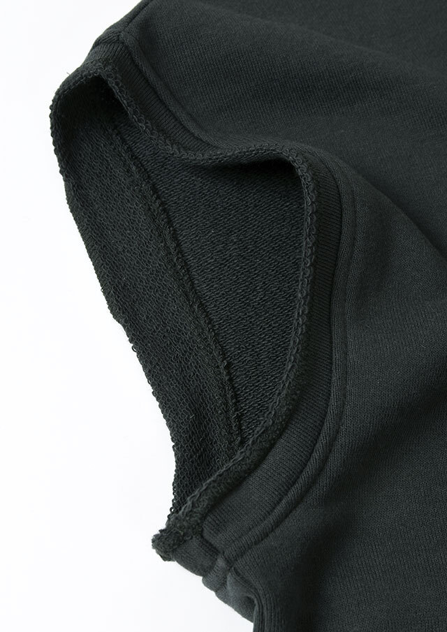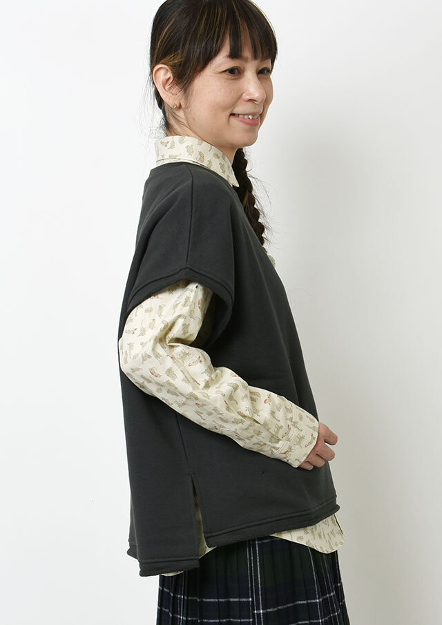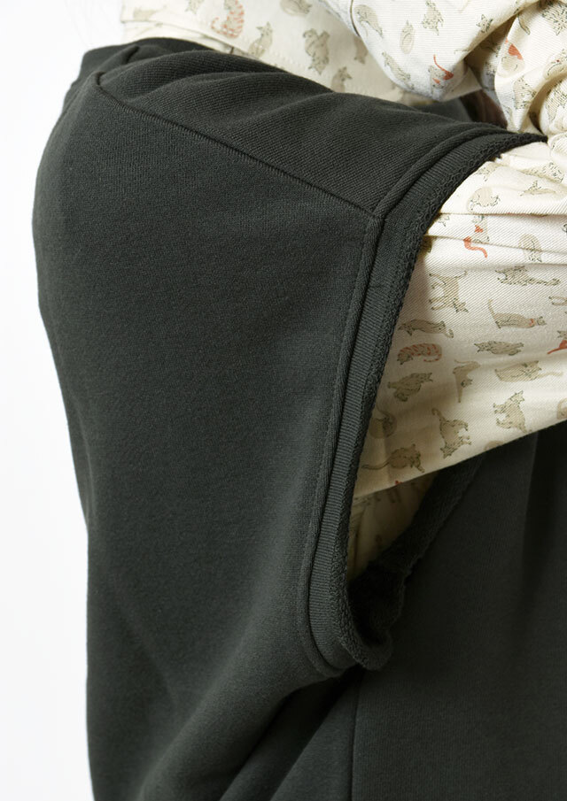 程よいオーバーサイズにドロップショルダーがリラックスムードを演出する、大人カジュアルにぴったりの裏毛ベスト。アームホールと裾はあえてリブを使わず、切りっぱなし風の仕上げに。普段使いしやすい裏毛生地でかっちりしすぎないカジュアルなレイヤードコーデを楽しめます。