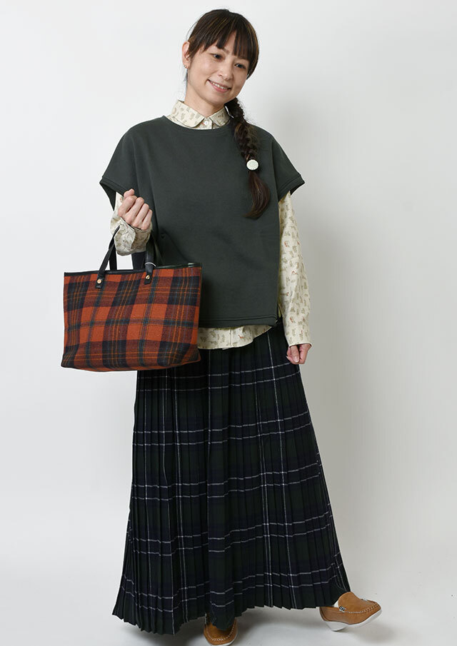 肌触りも柔らかく、またそれ程分厚くなくカジュアルで着やすいです。 中に花柄やチェックのブラウスが似合います。 |