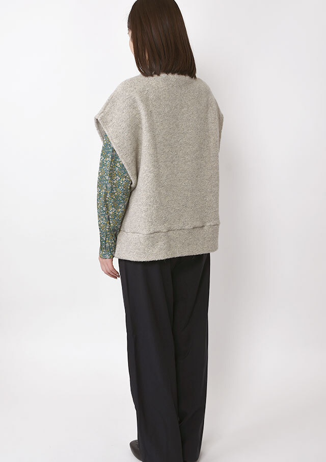 見た目にもあたたかな、モコモコとしたパイル素材が魅力のベスト。ボタンを付けず、すっきりとした印象で、様々なスタイルに自然になじみます。程よい丈感でスカート・パンツ問わず合わせられます。毛混紡素材であたたかく、アウターの下に重ねれば防寒着としても活躍します◎
