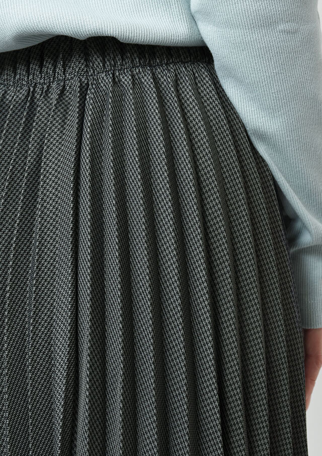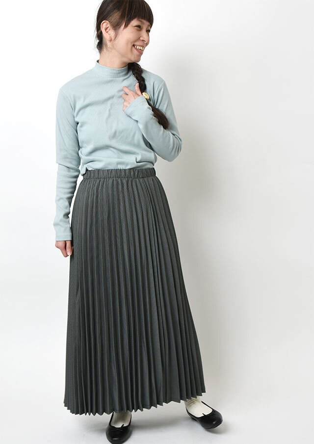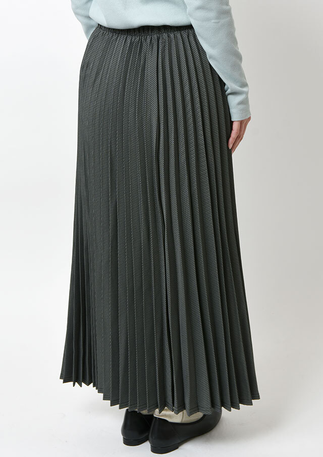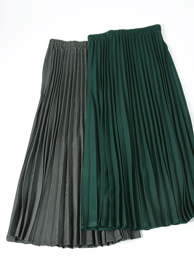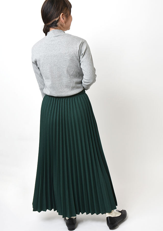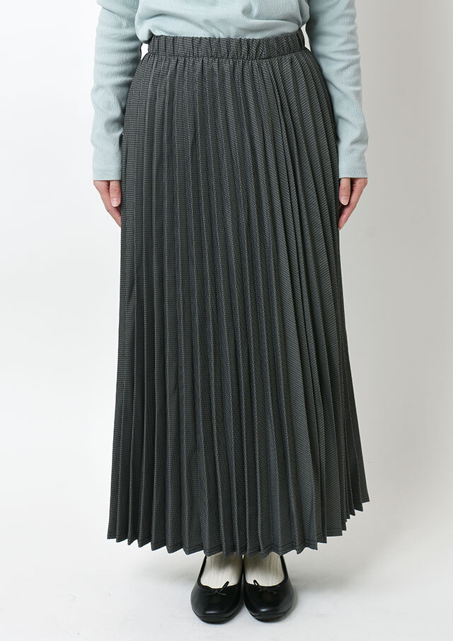 動くたびにプリーツがしなやかに美しく揺れる魅力的なスカート。ウエストは総ゴム仕様でストレスフリーなはき心地のデザインです。広がりすぎないシルエットとプリーツの縦ラインがすらっと見せてくれる効果も。きれいめにもカジュアルにも着まわせる、シンプルながら存在感のある一枚です。裏地なし。