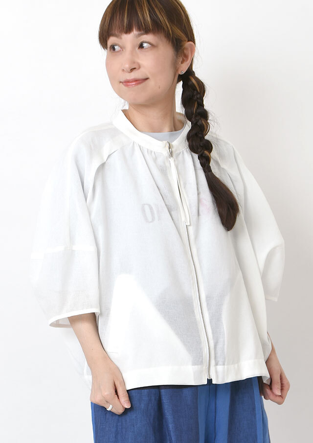 トレンドのシアー素材を使用した、軽やかな印象のZIPブルゾン。ほんのり透ける素材感が抜け感を演出し、シーズンムードを高めてくれる1着です。ドルマンスリーブとワイドなシルエットでリラックス感があり、さっと羽織るだけでこなれたスタイリングに。ボリュームのあるデザインながらも、軽やかな素材でバランスよく着こなせるのもポイントです。カジュアルからきれいめまで幅広いコーディネートに活躍します。