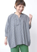 綿混の再生繊維(セルロース)素材を使用したプルオーバーブラウス。首元をすっきり見せるスキッパーデザインと、ゆったりとしたドルマンシルエットで抜け感のあるスタイルに。落ち着いた雰囲気のギンガムチェック柄が、カジュアルすぎず大人らしい印象を演出します。