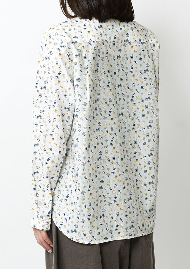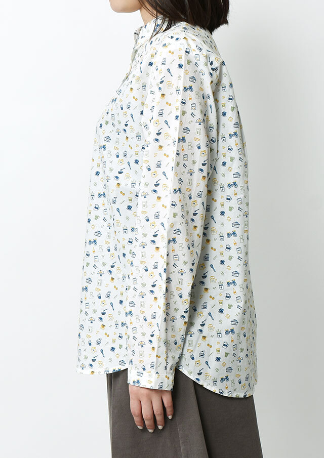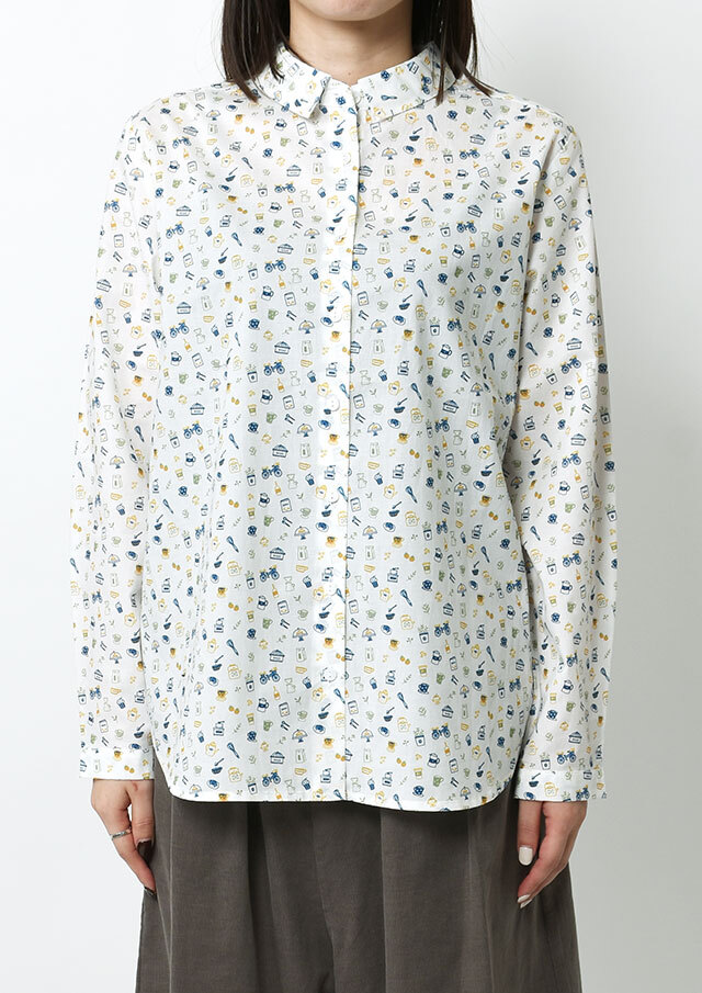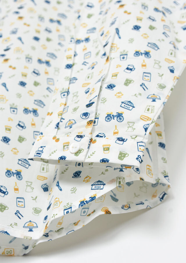 思わず目を引くユニークなオリジナルのCAFE柄が魅力のプリントブラウス。1枚でさらっと着ても、カーディガンやジャケットのインナーにしてもプリントが映え、コーディネートに遊び心をプラスしてくれます♪日常にちょっとした楽しさを取り入れたい方にぴったりのアイテムです。