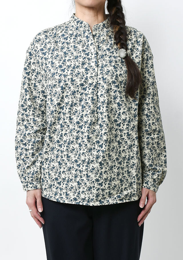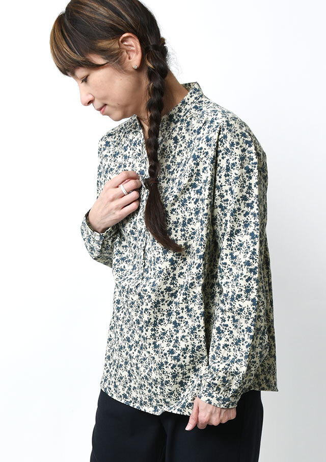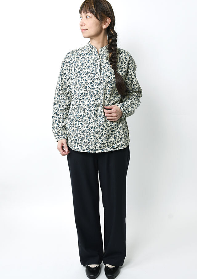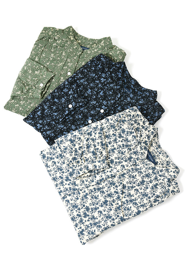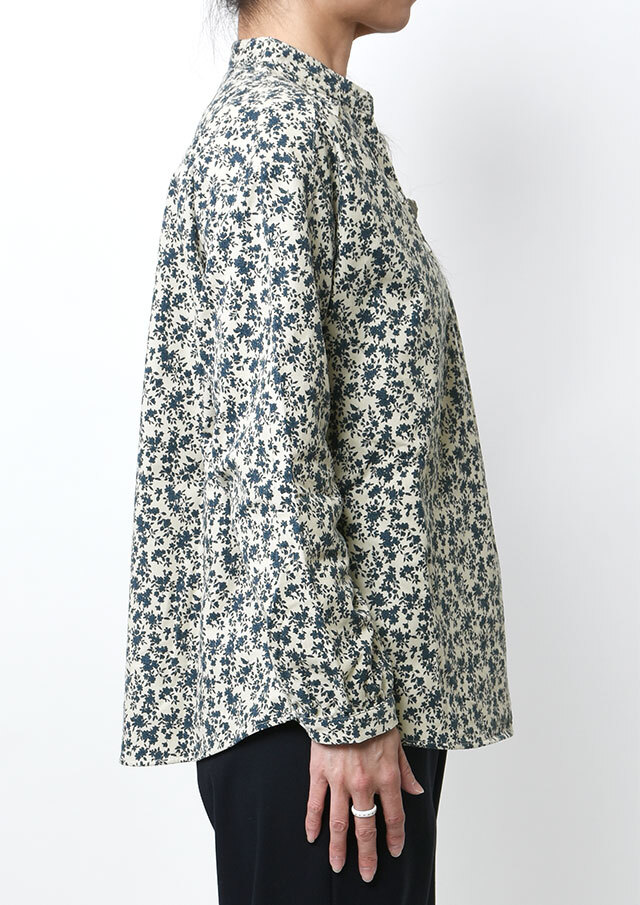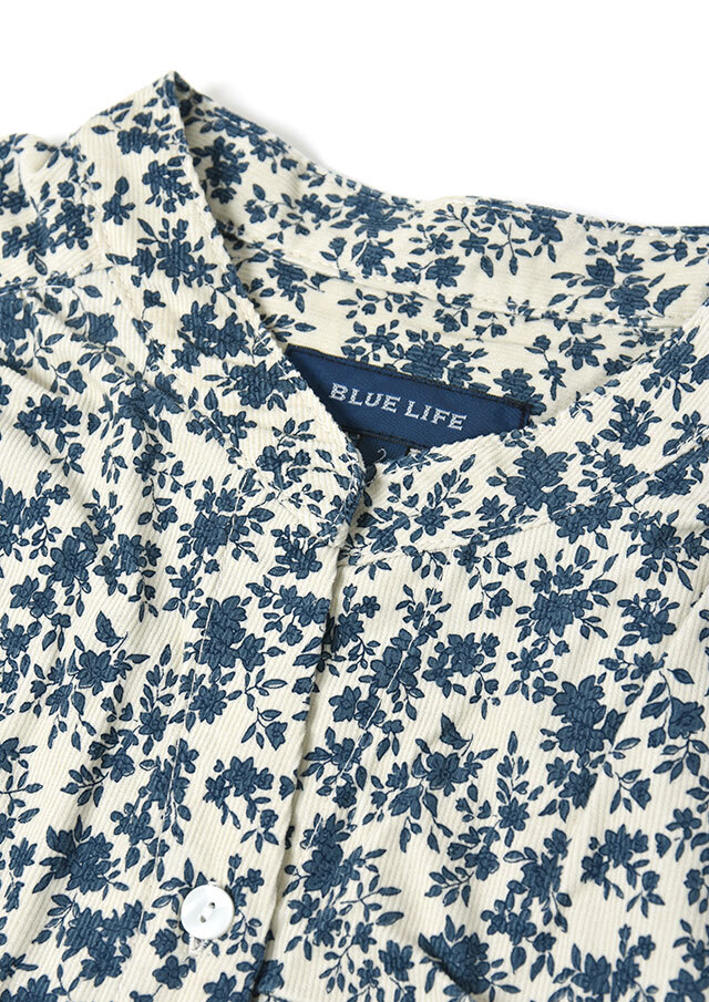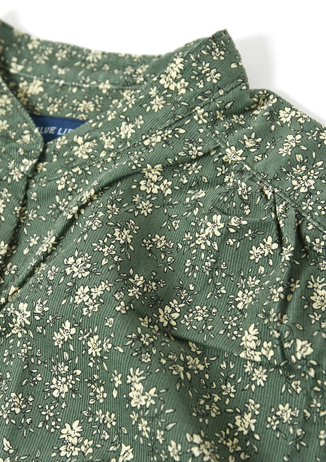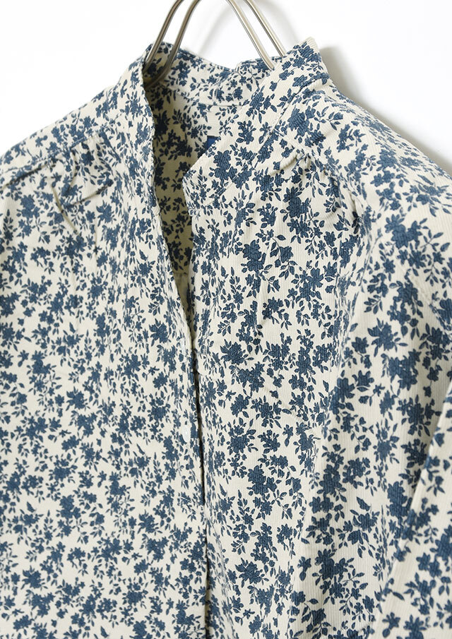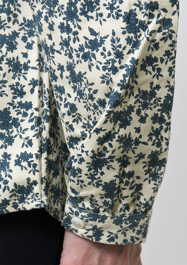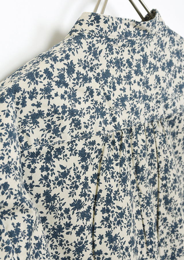 やさしい単色の花柄が上品な印象のコーデュロイブラウス。程よくゆとりのあるプルオーバーデザインで、リラックス感のある着心地。コーデュロイのあたたかみのある素材感で、秋冬のコーディネートをやさしく彩ります。