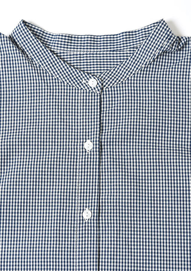 シンプルで着回しやすいロンストとギンガムチェックの七分袖ブラウス。前身頃はすっきりとしたデザインに仕上げつつ、後身頃と袖口にはギャザーを施し、ほどよいふんわり感をプラスしています。やわらかさのあるブロード生地を使用しているため肌触りも良く、快適な着心地も魅力。前を開けて羽織りとしても使えるので、デイリーコーデに幅広く活躍するブラウスです。