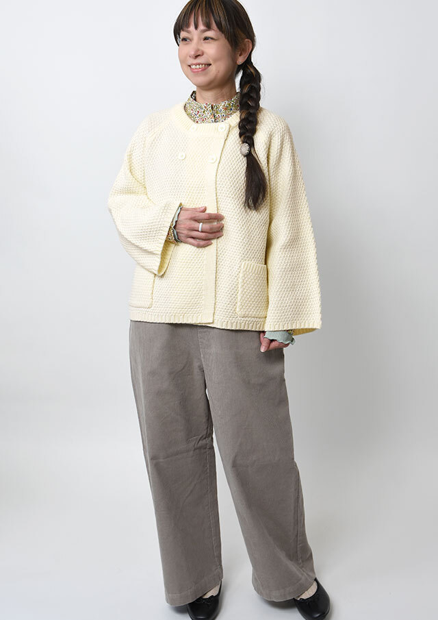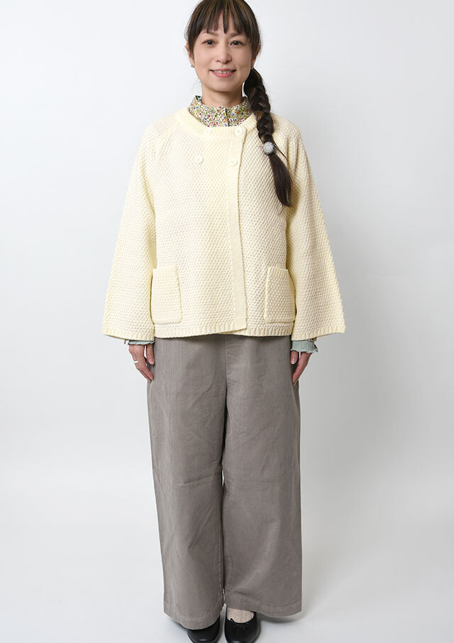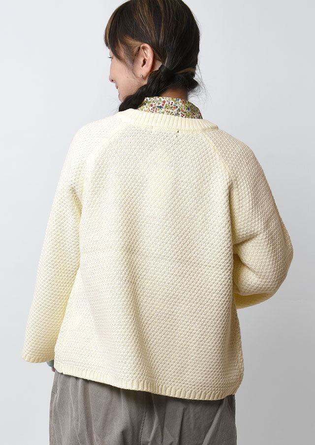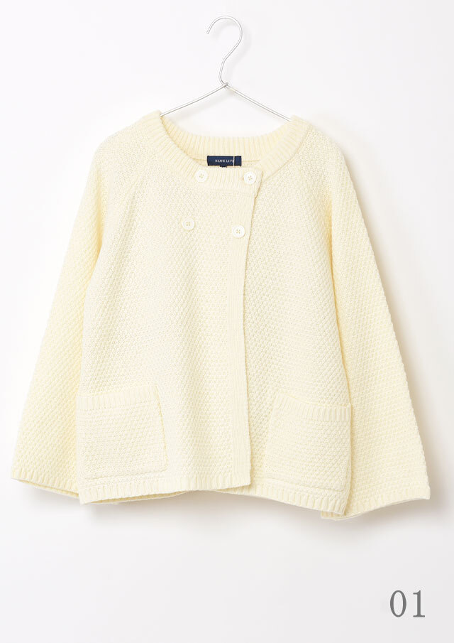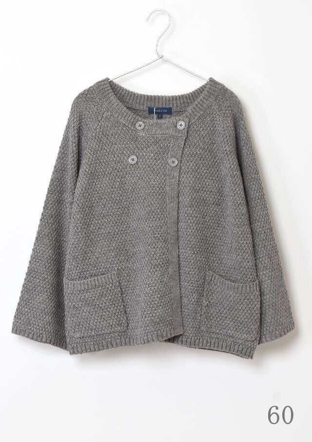 フロントのWジャケット風ボタンがポイントのニットカーディガン。上側に4つだけ施されたボタンで程よい抜け感を演出。ラグランスリーブで肩まわりにゆとりを持たせ、袖幅も広めなのでリラックスして着れつつオシャレも叶えてくれるアイテム。両サイドのパッチポケットがさりげないアクセントに。柔らかなニット素材で着心地も◎