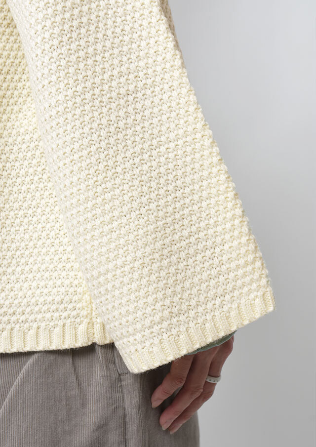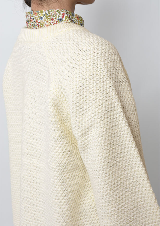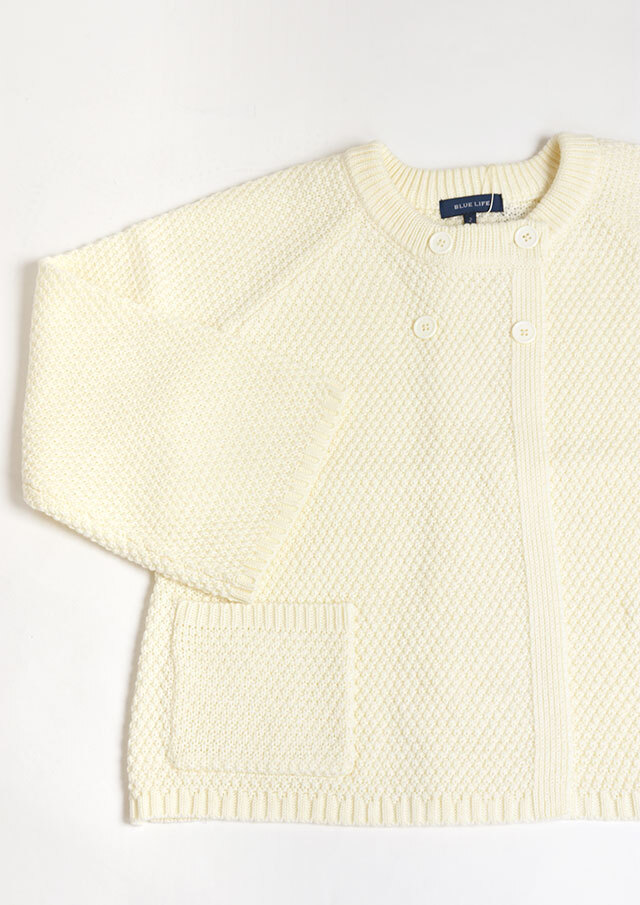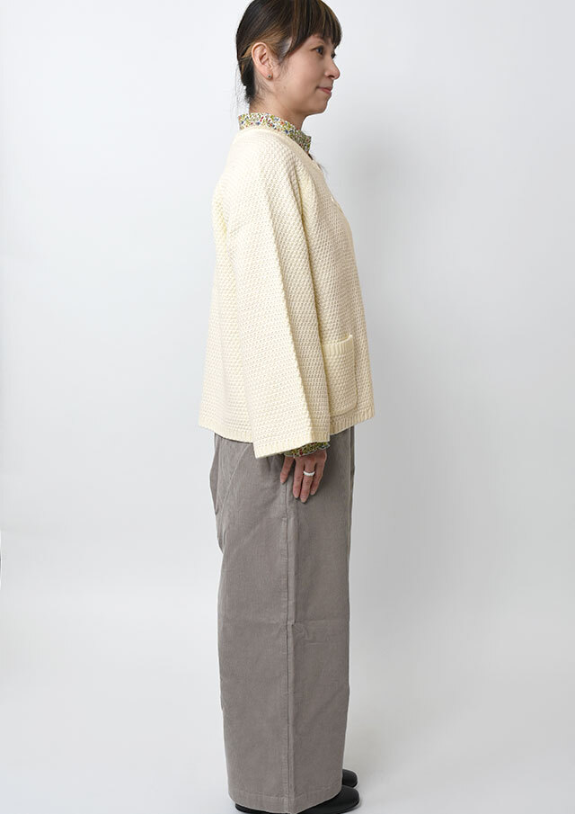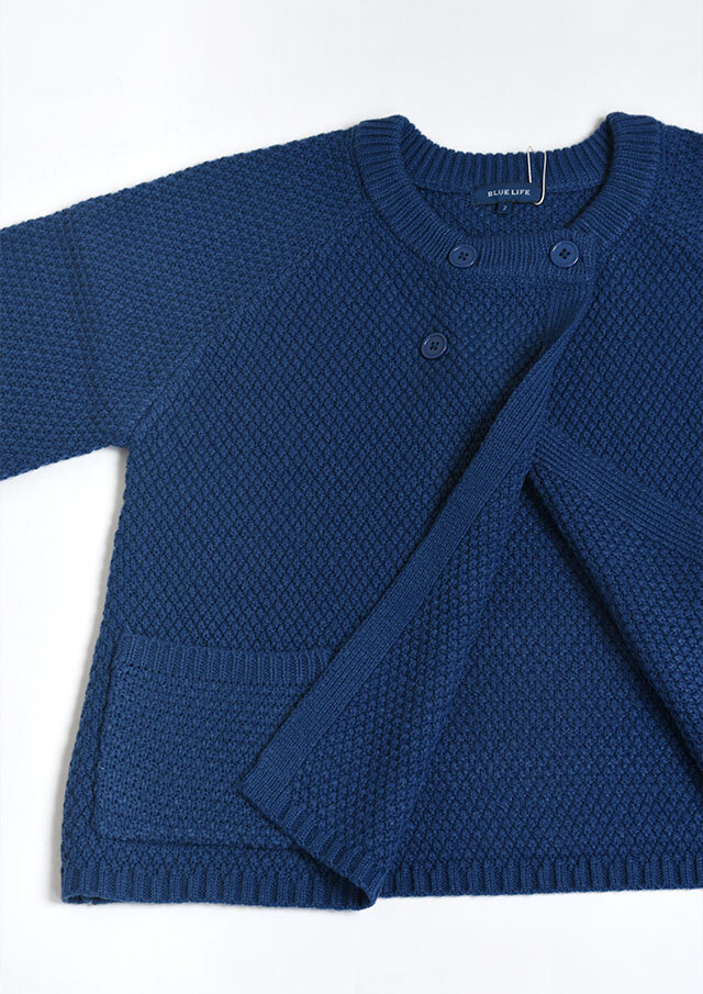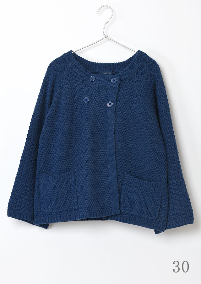 フロントのWジャケット風ボタンがポイントのニットカーディガン。上側に4つだけ施されたボタンで程よい抜け感を演出。ラグランスリーブで肩まわりにゆとりを持たせ、袖幅も広めなのでリラックスして着れつつオシャレも叶えてくれるアイテム。両サイドのパッチポケットがさりげないアクセントに。柔らかなニット素材で着心地も◎