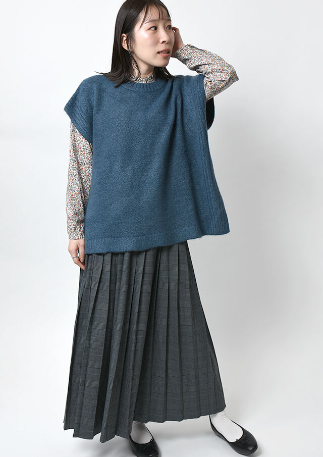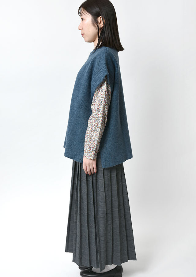 ふんわりと軽い着心地が魅力のスフレヤーンを使用したニットベスト。程よい厚みがありながら、軽量で保温性も高く、秋口から春先までロングシーズン活躍◎ブラウスやカットソーとのレイヤードはもちろん、ワンピースに合わせて女性らしい着こなしも楽しめます♪