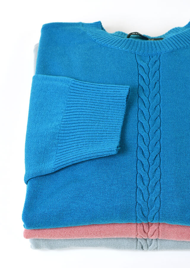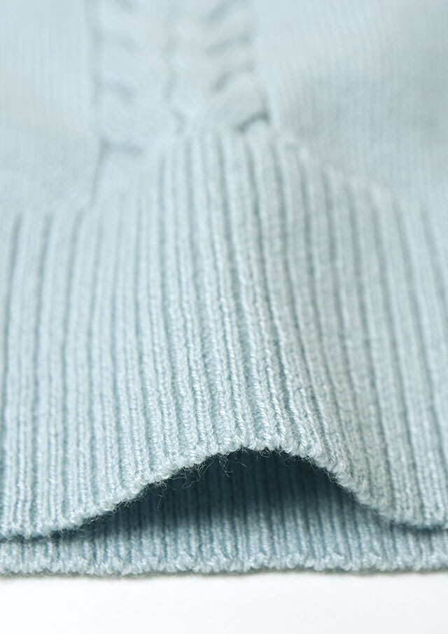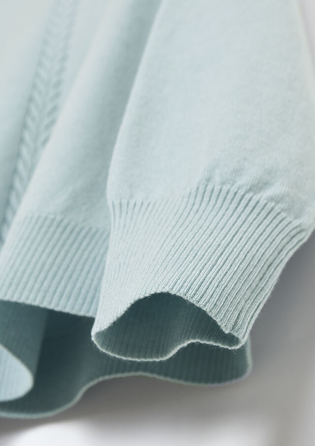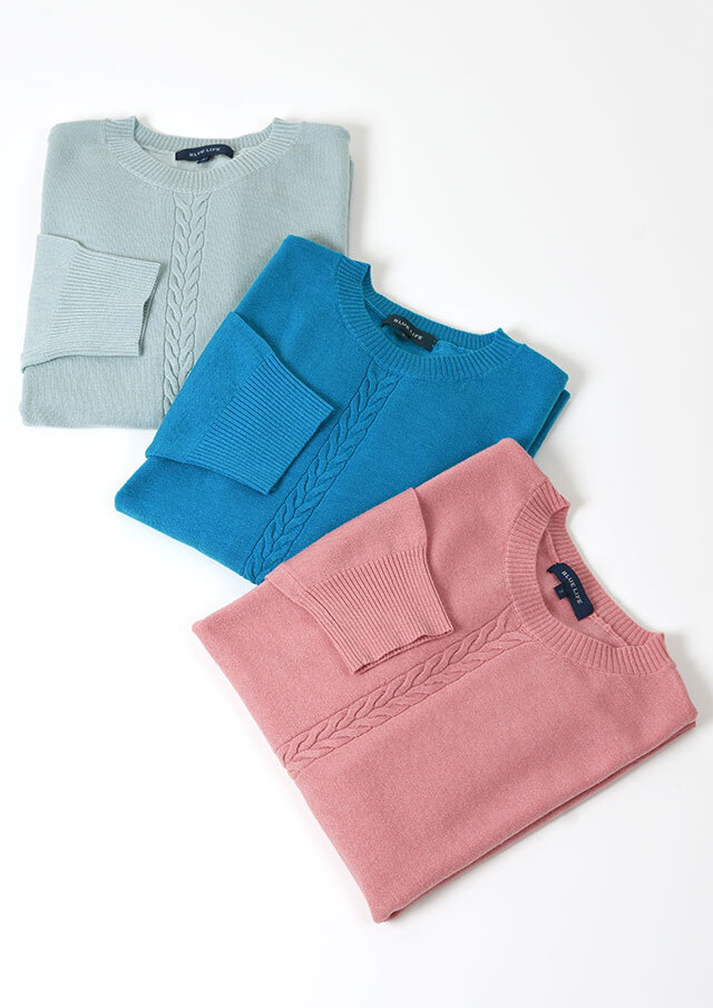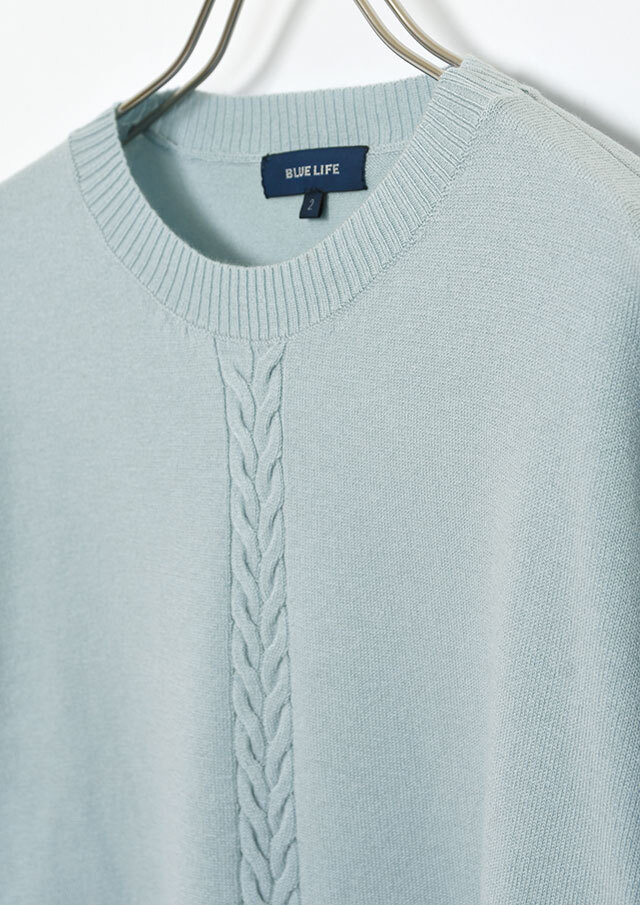 すっきりとした肉感のハイゲージニット。前身の中央に施した縦ラインのケーブル柄が、シンプルながらも編み柄で表情をプラスし、コーディネートにさりげないアクセントを与えてくれます。無駄のないデザインで、オン・オフ問わず着用できる汎用性の高い一枚です。