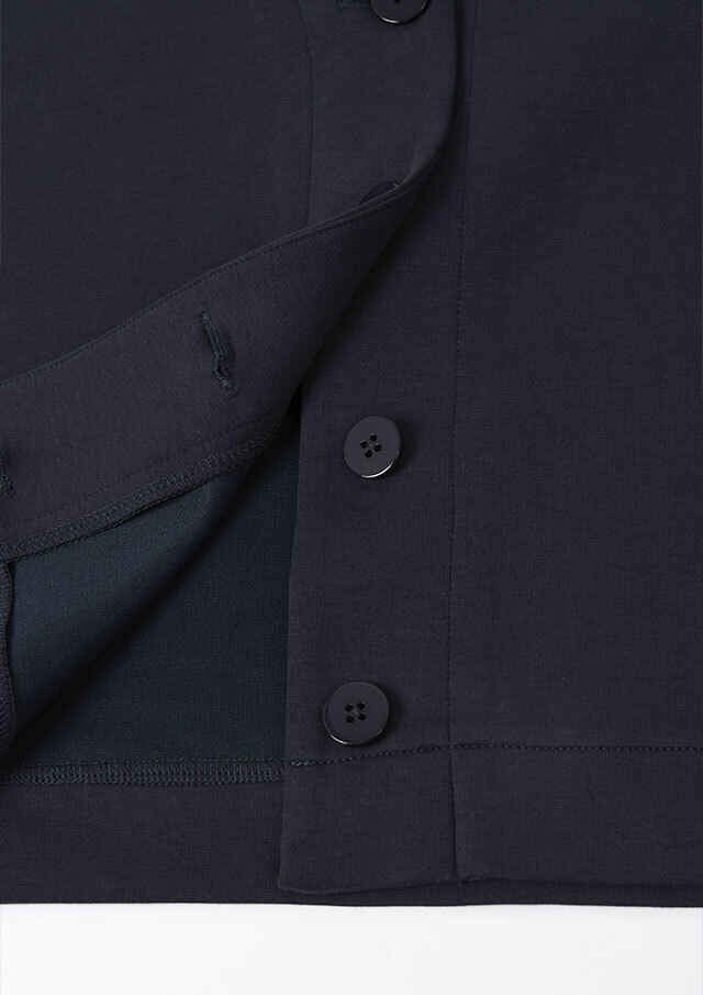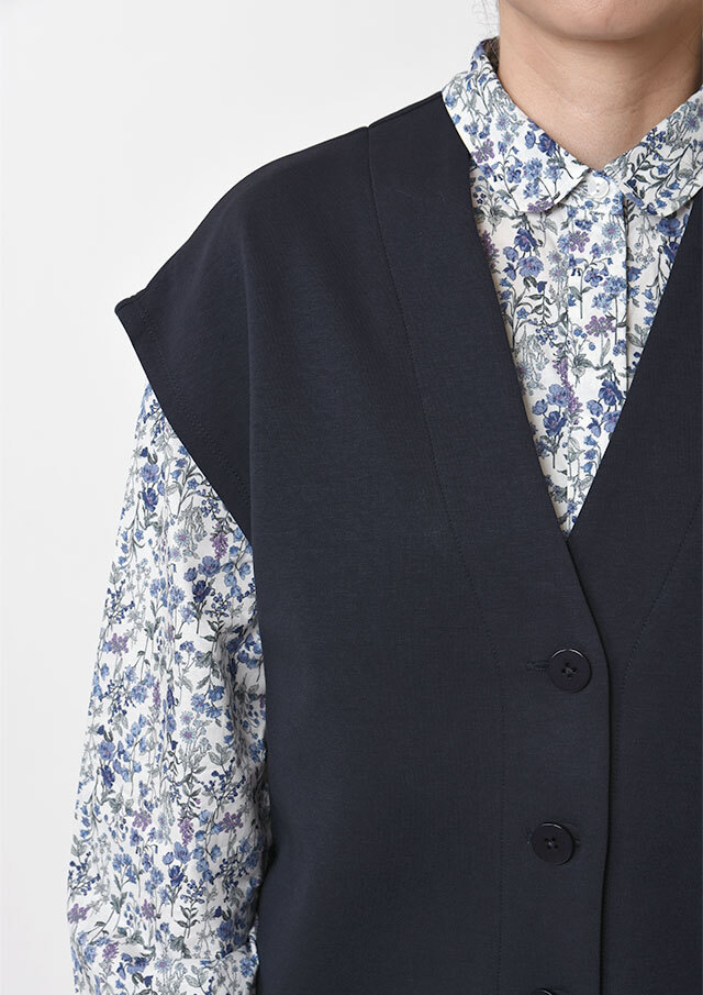 ほどよいハリ感と伸縮性のあるポンチ素材を使用したカットソーベスト。着回しの幅が広がる前開きデザインで、Tシャツやブラウスの上にさっと羽織るだけで、こなれ感のあるスタイリングが完成します。季節の変わり目のレイヤードコーデにもぴったりで、きれいめからカジュアルまで幅広く活躍する一枚です。