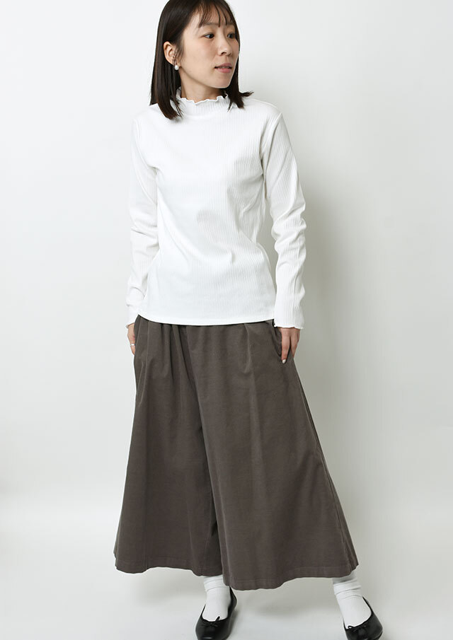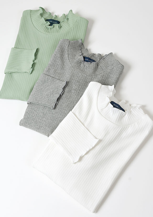首元と袖にほんのりフリルを効かせた、テレコメローカットソー。程よいフィット感が心地良く、レイヤードスタイルでももたつかないのが嬉しいポイント♪ニットの下からフリルをちらりとのぞかせれば、シンプルコーデがぐっと新鮮に。トレンドに左右されず、長く付き合えるアイテムです。