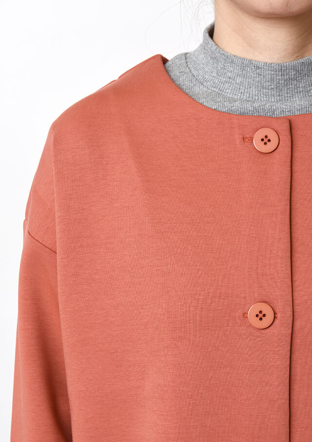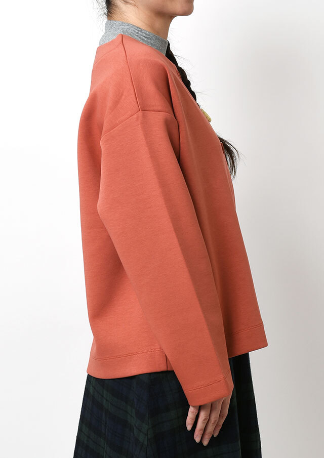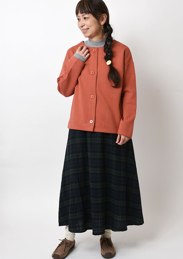 素敵な落ち着いたオレンジで薄めな生地なので重ね着でコートの下に着てももたつかないし、カットソーの上にちょっと羽織るのにも良いです。