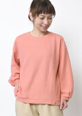 シンプルで着回しやすい表面感のあるワッフル風生地カットソー。ポリエステル混素材なのでシワになりにくく、お手入れも簡単。袖にはタックを入れてさりげなくボリュームを持たせ、脇線をフロントまで振り、スリットを入れたデザインです。シンプルだからどんなボトムスにも合わせやすく、オンオフ問わず活躍する1枚です。