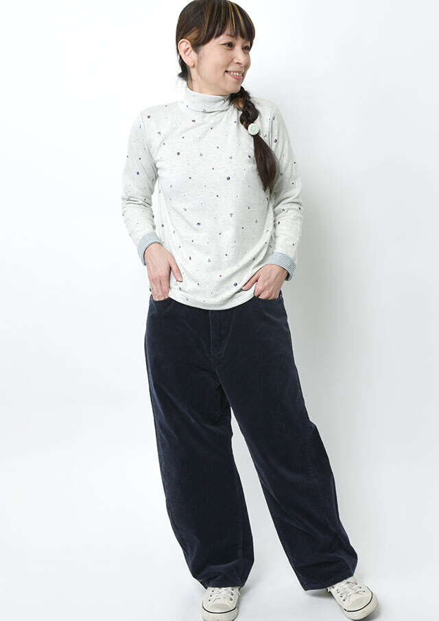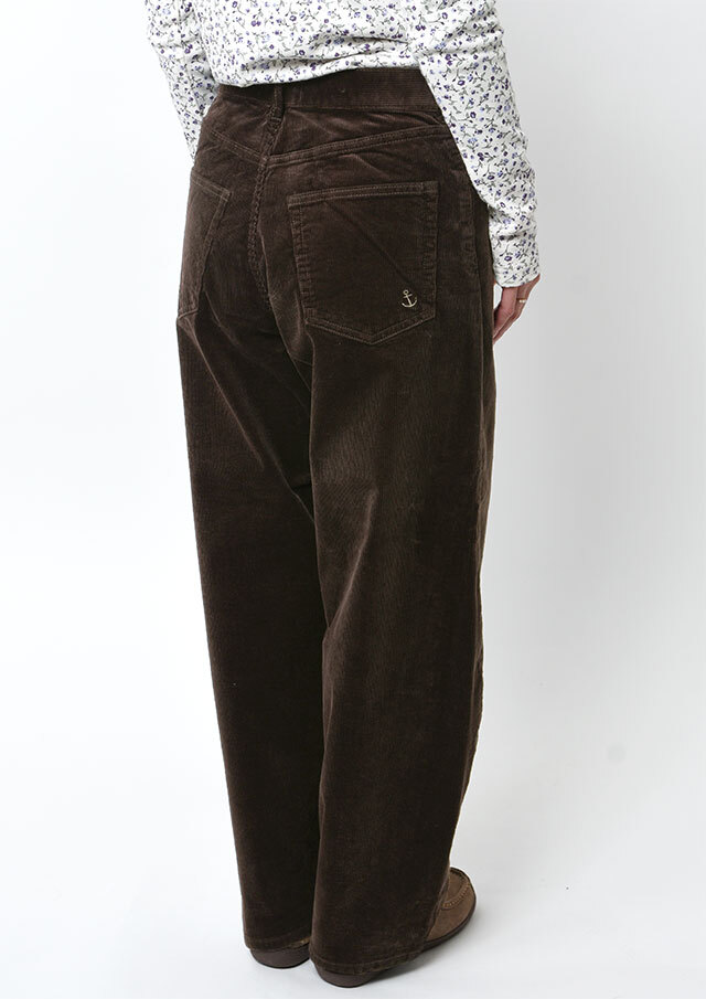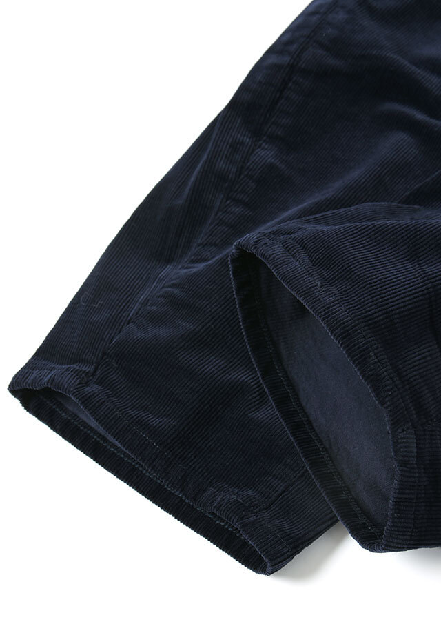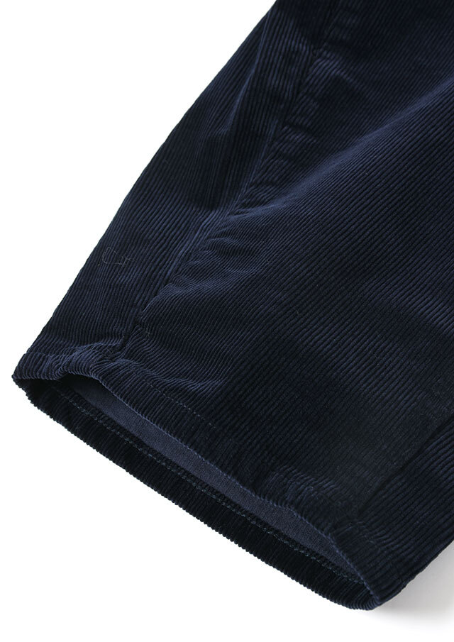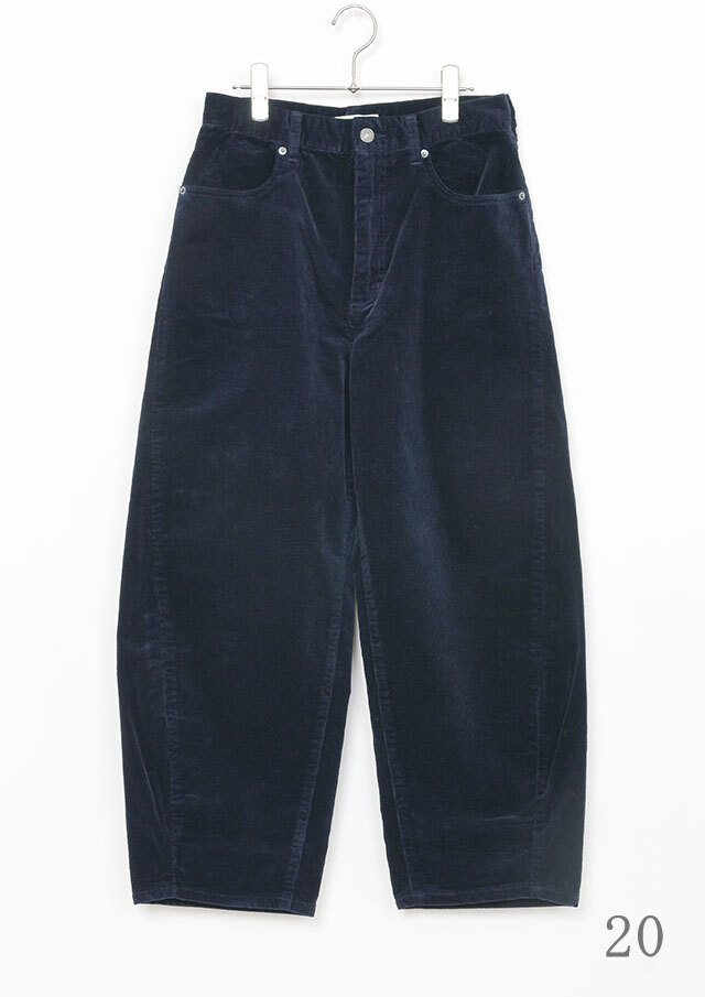 やや細畝の14Wコーデュロイを使用した、カジュアルながらもクリーンさのある一本。バギーシルエットをベースにカーブデザインを取り入れることで、裾に向かって緩やかな丸みを描く独特のフォルムに仕上げています。パーカー×スニーカーでリラクシーにまとめるのはもちろん、コンパクト丈のトップスと合わせれば、メリハリのあるバランスの良いスタイリングが楽しめます。普段の着こなしにこなれ感をプラスしたい方におすすめのアイテムです。