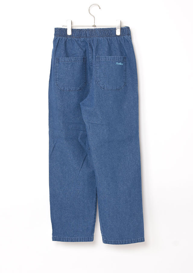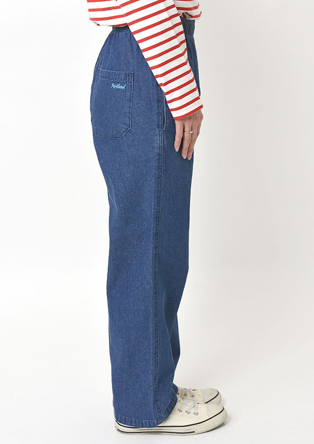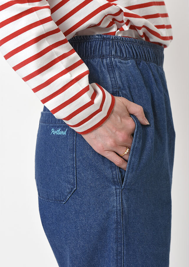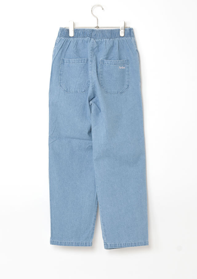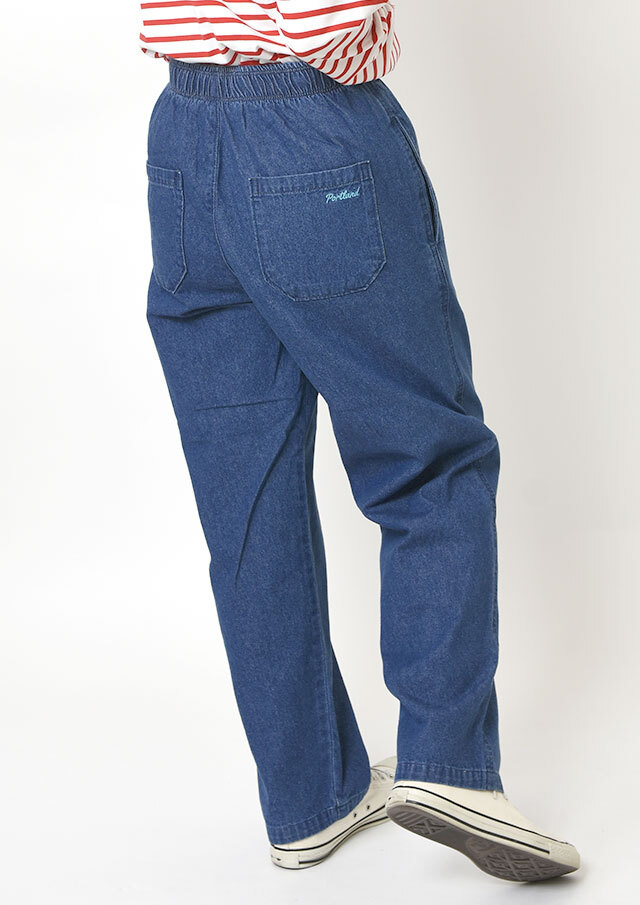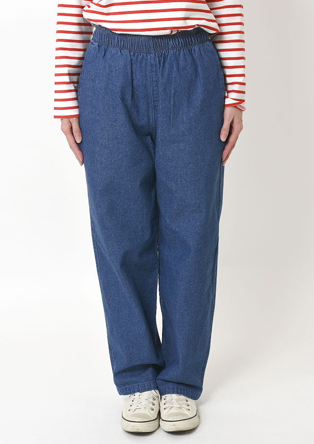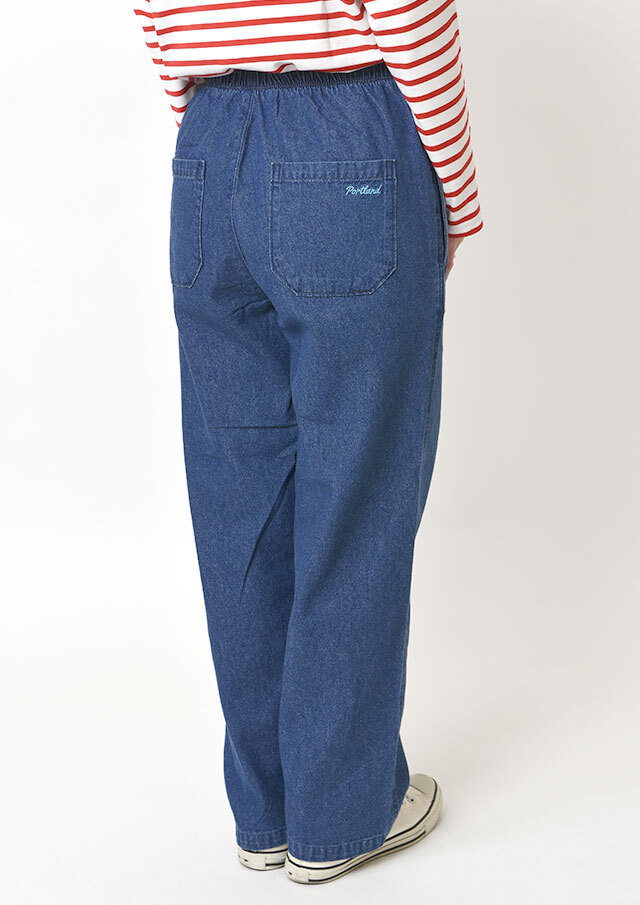 ウエスト総ゴム仕様で快適な穿き心地のデニムパンツ。ラクに穿けて動きやすく、デイリーコーデに活躍する着回し力抜群のアイテムです◎後ろ左ポケットにはさりげないロゴ刺繍をあしらい、バックスタイルのアクセントに♪シンプルなデザインの中にこだわりをプラスした、毎日使いたくなる一本です。