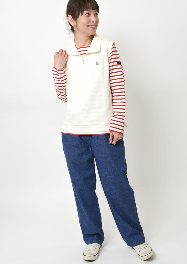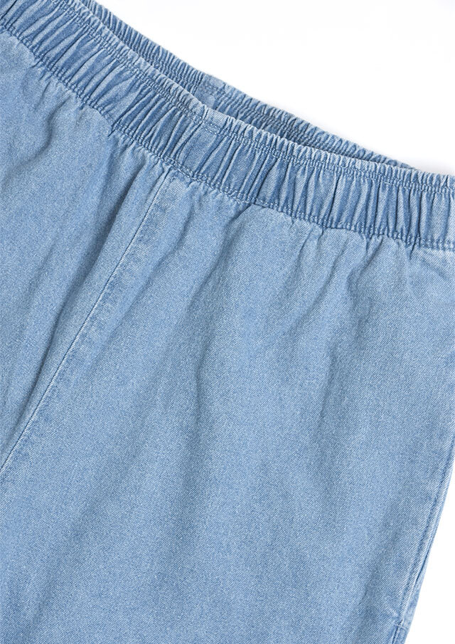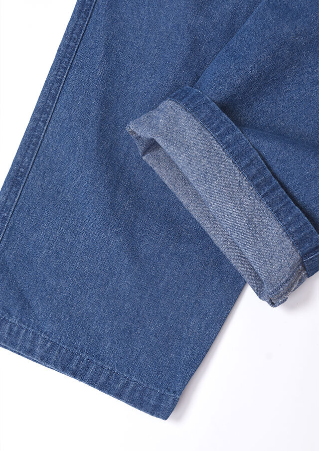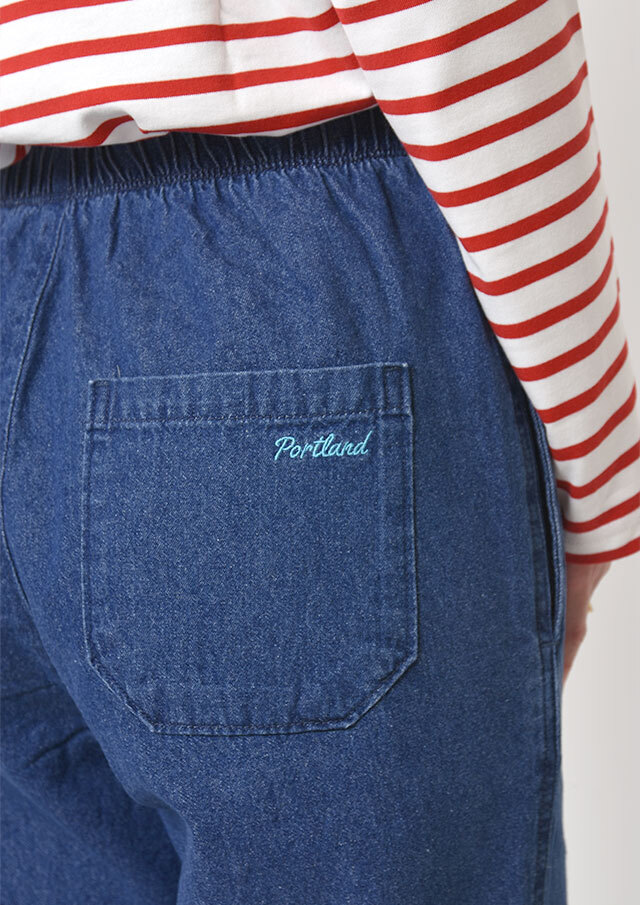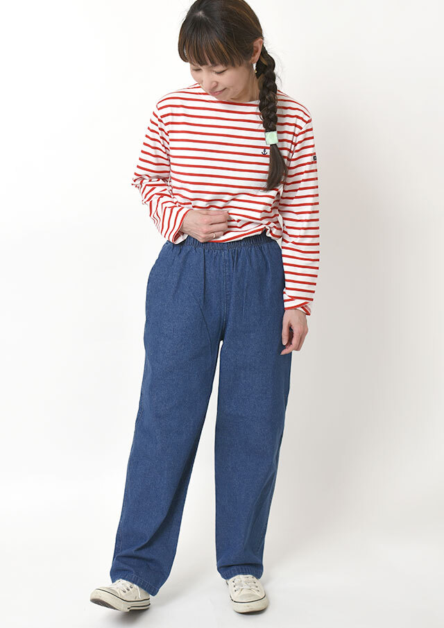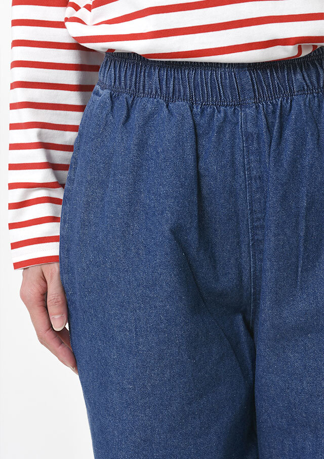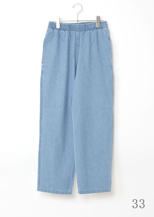 ウエスト総ゴム仕様で快適な穿き心地のデニムパンツ。ラクに穿けて動きやすく、デイリーコーデに活躍する着回し力抜群のアイテムです◎後ろ左ポケットにはさりげないロゴ刺繍をあしらい、バックスタイルのアクセントに♪シンプルなデザインの中にこだわりをプラスした、毎日使いたくなる一本です。