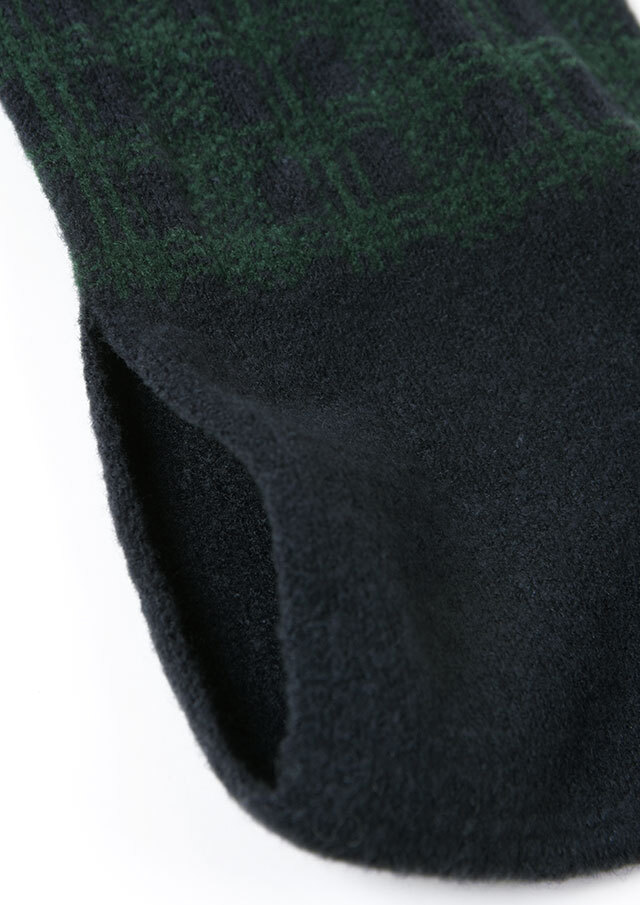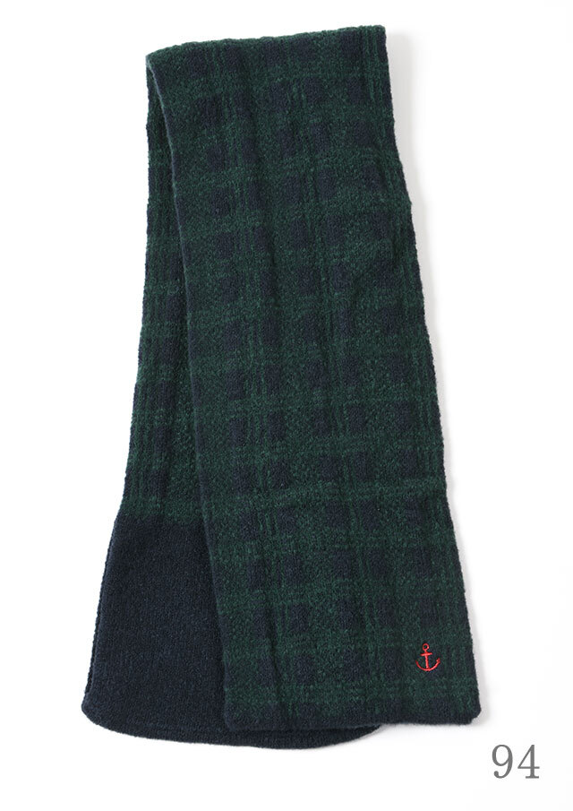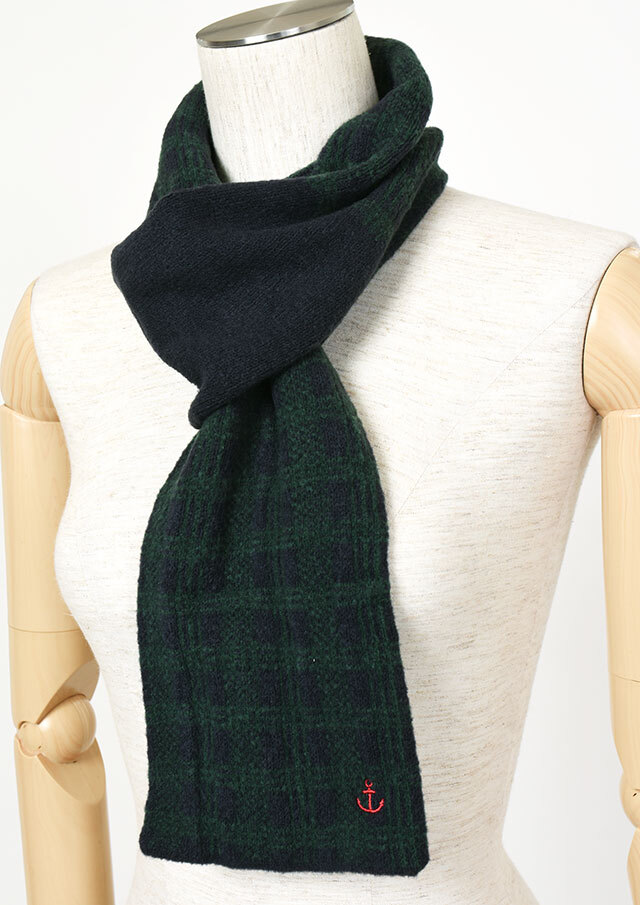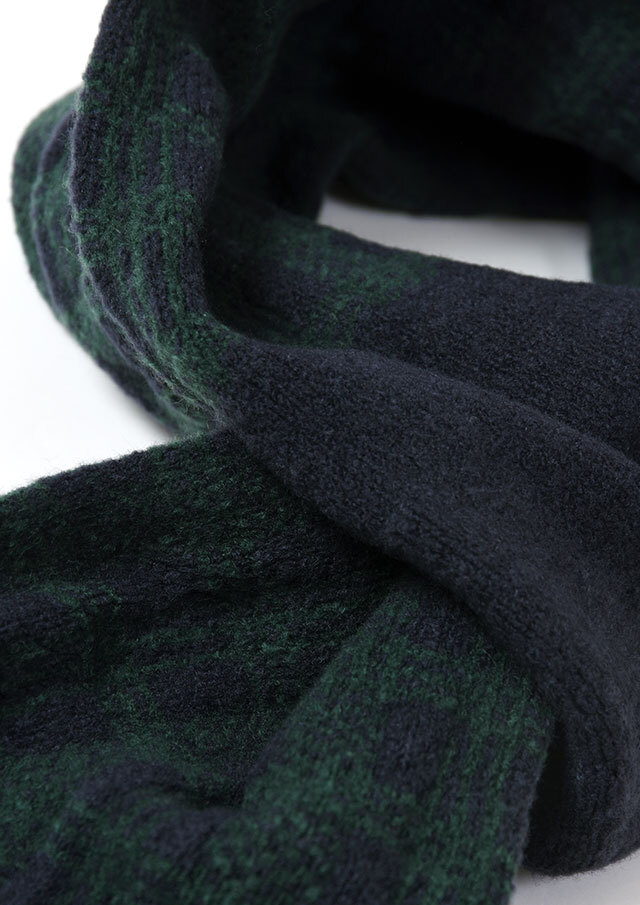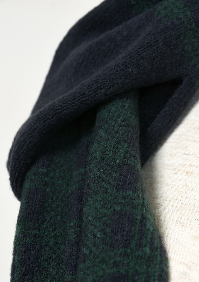 大人な印象のブラックウォッチのマフラーは片側の輪に通すだけの簡単スタイリングが嬉しいコンパクトデザイン。