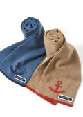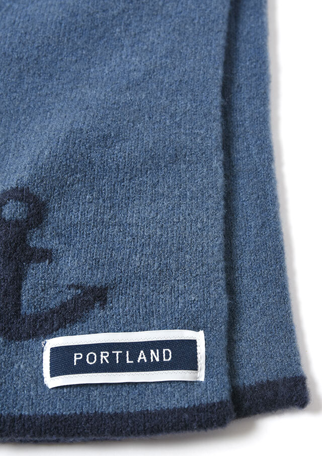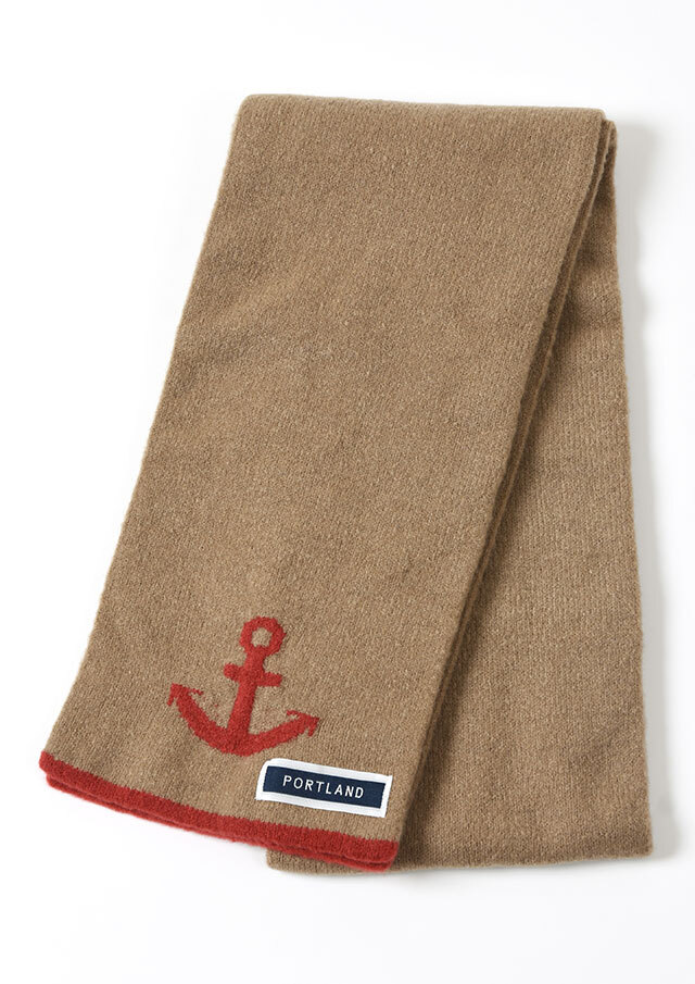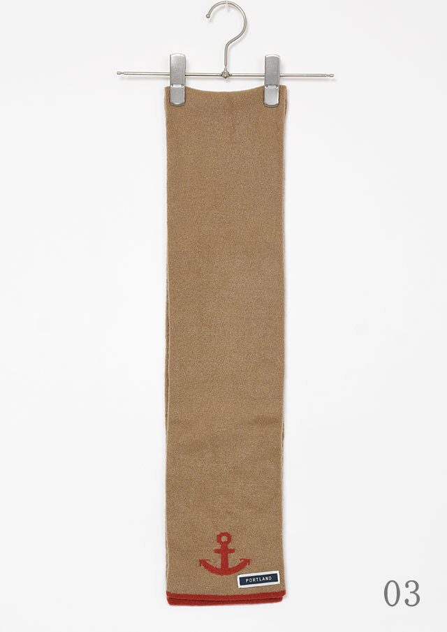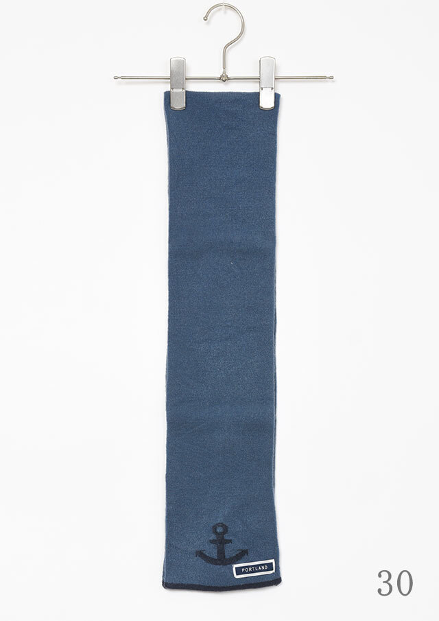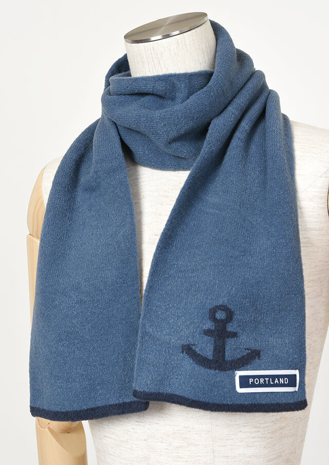 さり気なくマリンな雰囲気をプラスできるイカリ柄ワンポイントのマフラーです。やや厚みがありますが、柔らかく細身なので巻きやすいのも嬉しいポイントです。
