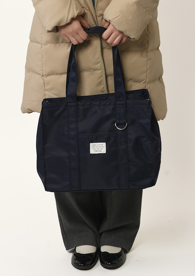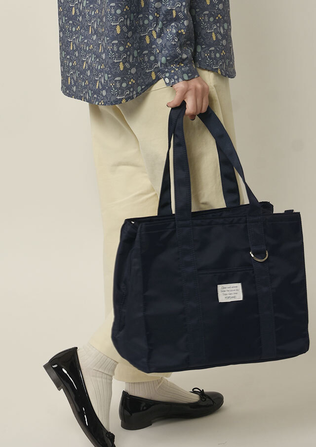 たっぷり入って荷物の整理整頓がしやすい3層構造のあおり型バッグは収納力抜群!さらに内ポケットが付いているので、機能性も充実◎真ん中のメイン収納はマチも広く、ファスナーが付いた安心仕様です。持ち手もさっと肩にかけやすい長さです。ナイロン地でシーズンレス・どなたでも持ちやすいデザインです。
