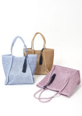 季節感たっぷりのペーパー素材で仕立てた、大きめサイズのトートバッグ。軽やかな風合いが魅力で、春夏のコーディネートにぴったりのアイテムです。さりげなく揺れるタッセルがアクセントに♪収納力のあるゆったりとしたサイズ感で、デイリー使いはもちろん、レジャーやお出かけにも活躍します。内布あり・入れ口マグネットホックタイプ・内側に小物ポケット×2付き。