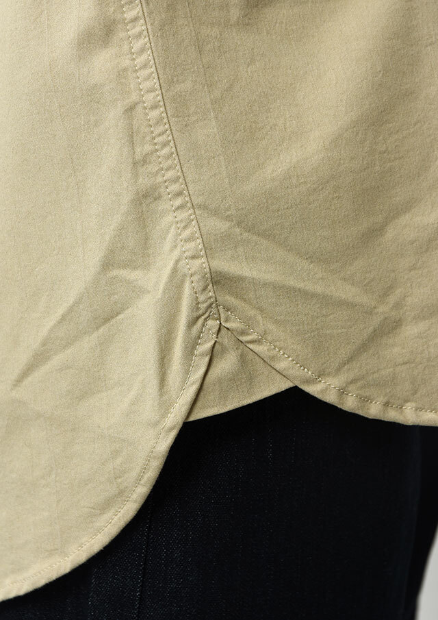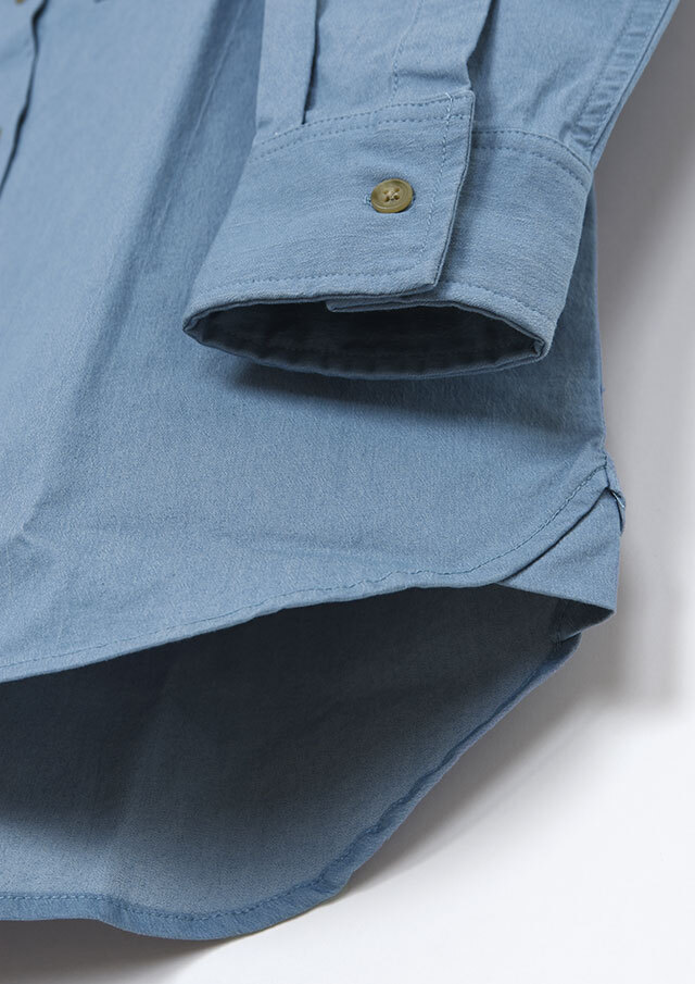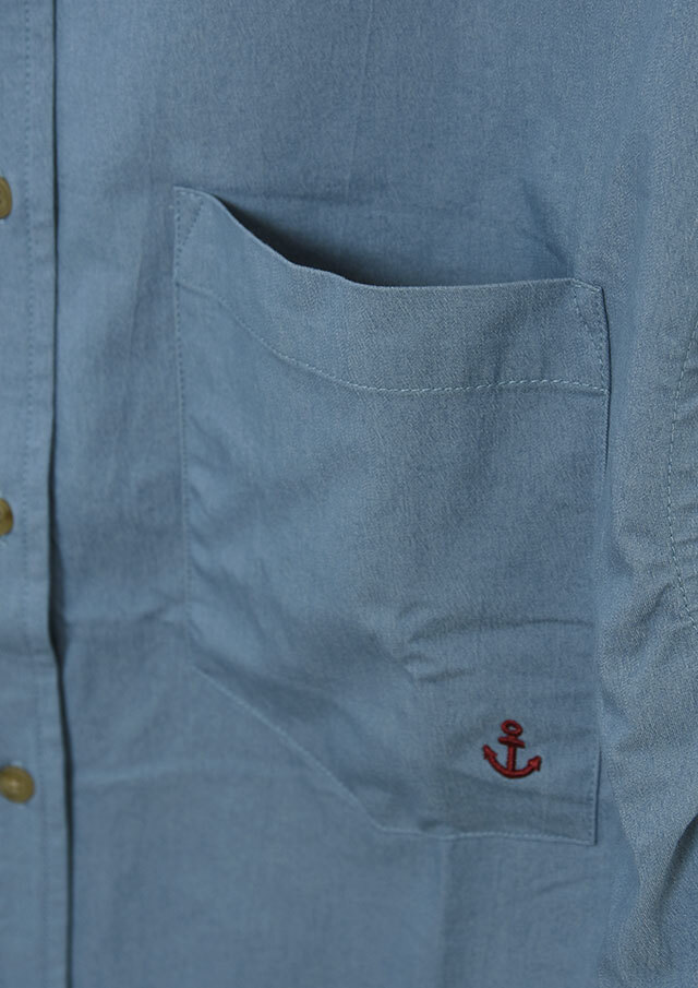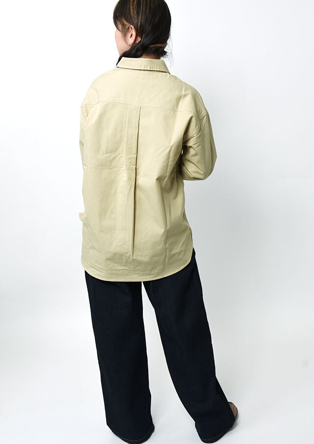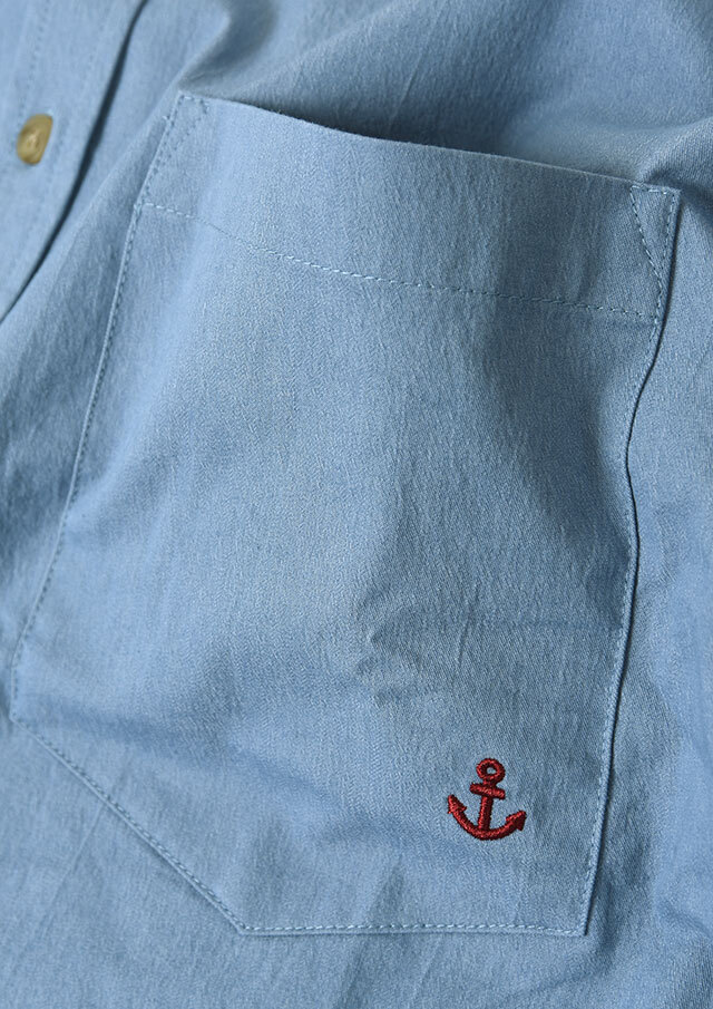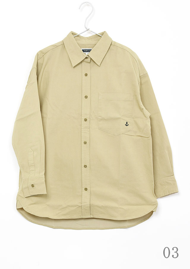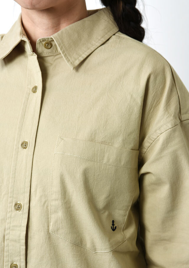 程よくストレッチの効いたTC生地を使用したロングシャツ。ややしっかりめの風合いで、高見えする質感です。シンプルな無地でデイリー使いにぴったり◎左胸の大きなポケット&イカリ刺繍がデザインのポイントに。一枚ではもちろん、羽織としても着まわせる万能アイテムです。