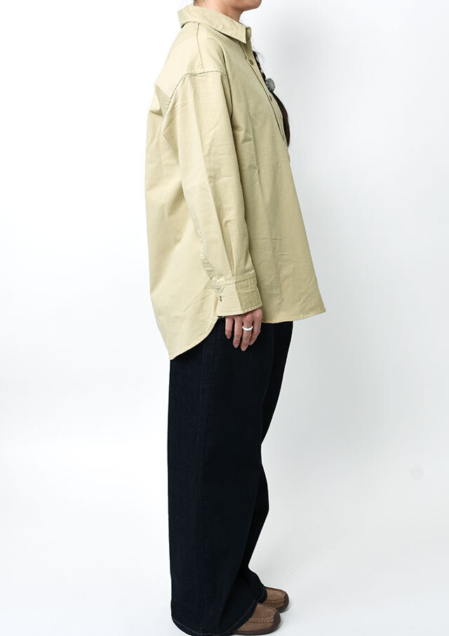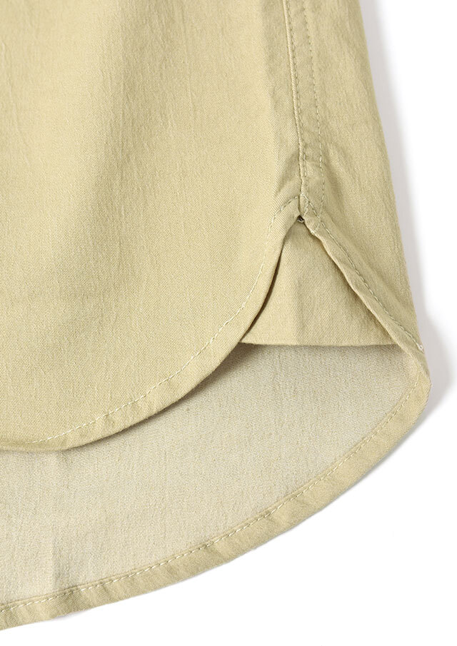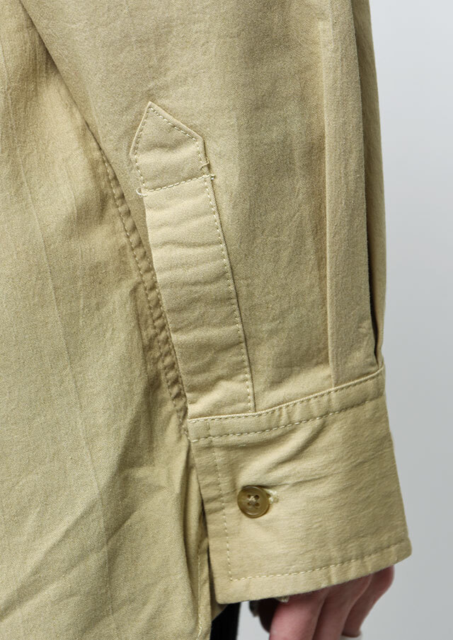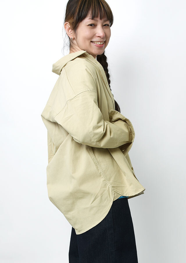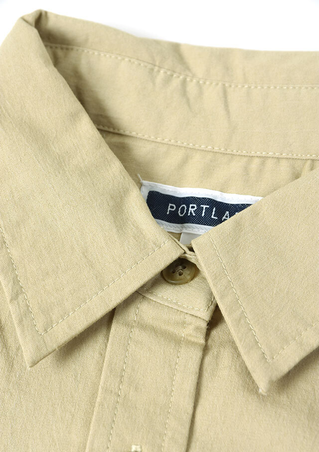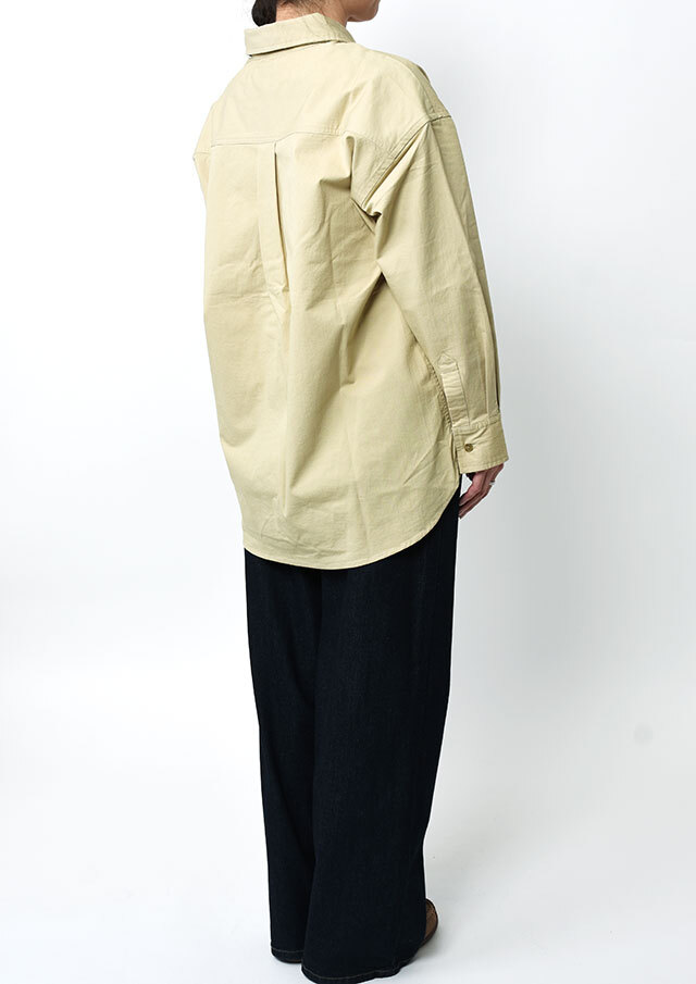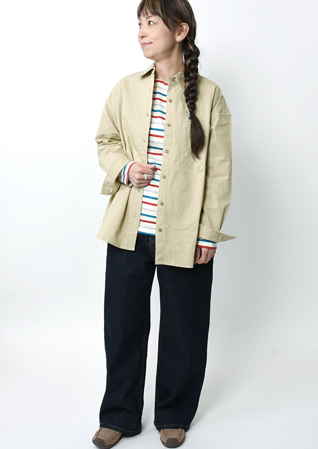 程よくストレッチの効いたTC生地を使用したロングシャツ。ややしっかりめの風合いで、高見えする質感です。シンプルな無地でデイリー使いにぴったり◎左胸の大きなポケット&イカリ刺繍がデザインのポイントに。一枚ではもちろん、羽織としても着まわせる万能アイテムです。