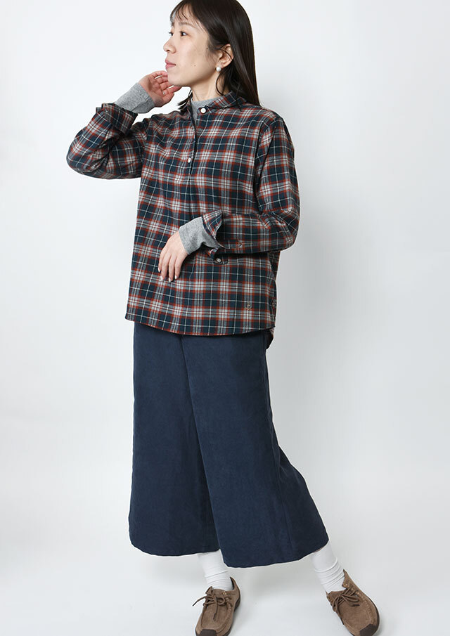 タータンチェック柄のプルオーバーブラウスです。ショールカラーはクラシックでありながら、どこか新鮮な印象を与えてくれるデザイン。コットンビエラの微起毛感が心地よく、肌触りも柔らかです。厚すぎない生地感でニットとの重ね着にも対応し、オールラウンドで使いやすいアイテムです。季節感を楽しみながらおしゃれができる一枚です。