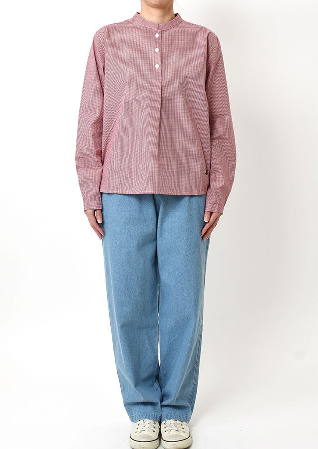 細やかなギンガムチェックが目を引くプルオーバーブラウス。細かめの柄が子どもっぽくなりすぎず、程よいこなれ感を演出。さらっと着るだけでコーデの主役になる一枚です。ゆったりとしたシルエットでリラックス感があり、気負わず着られるのもポイント♪デニムやチノパンと合わせて王道カジュアルに、スカートと合わせれば、さりげない可愛さをプラスできます。