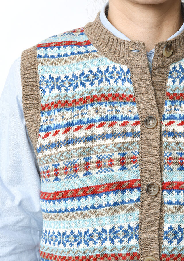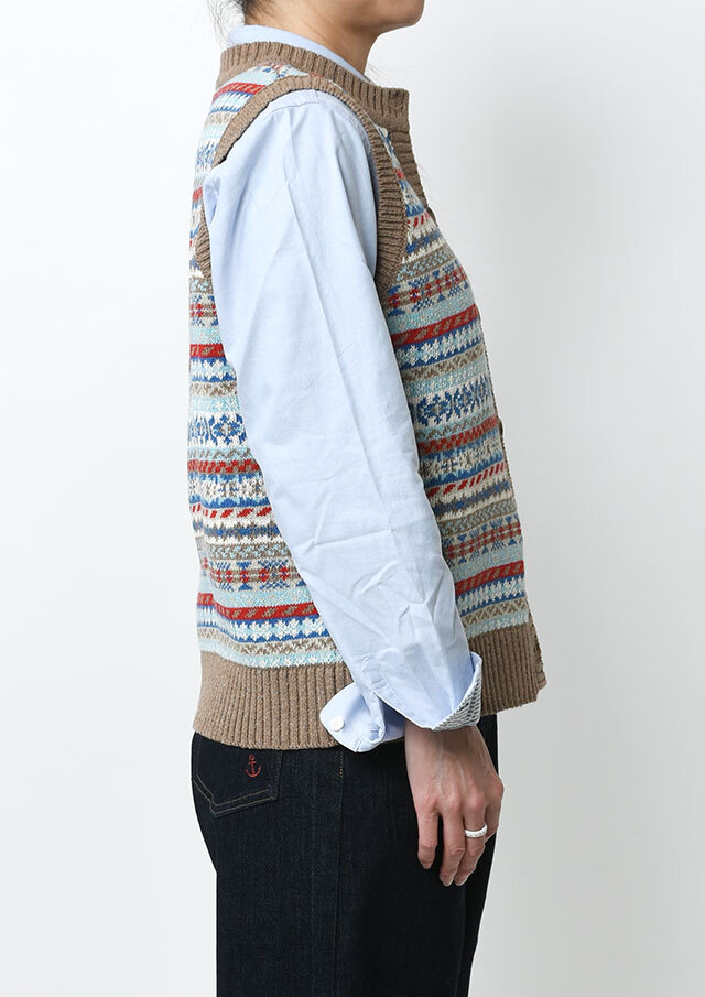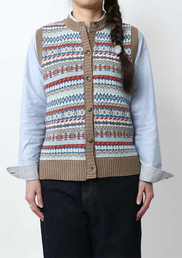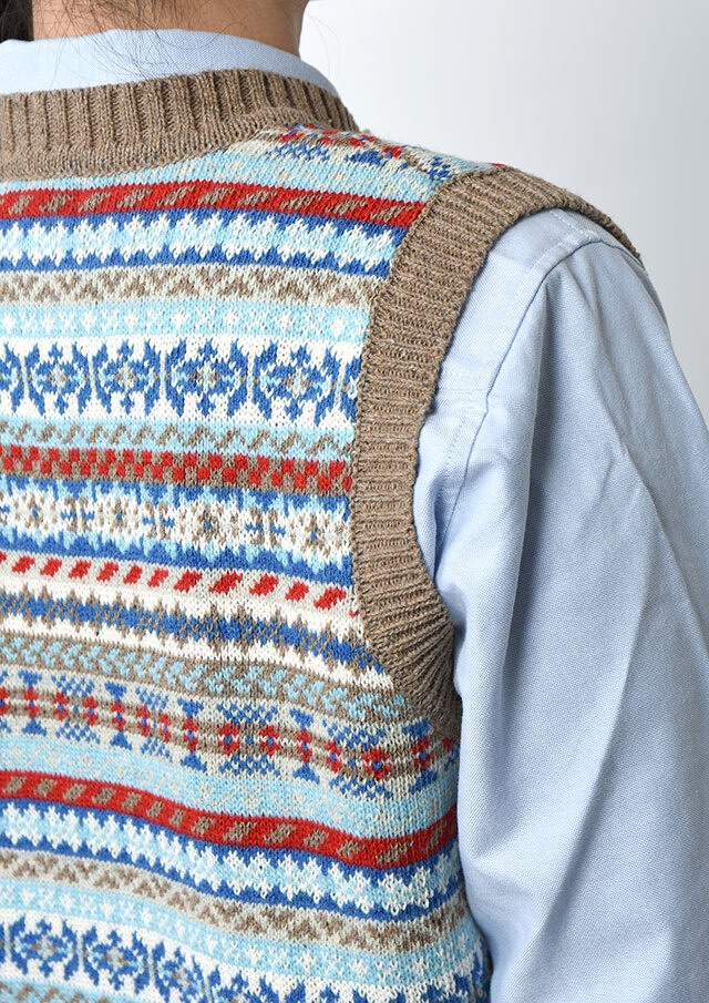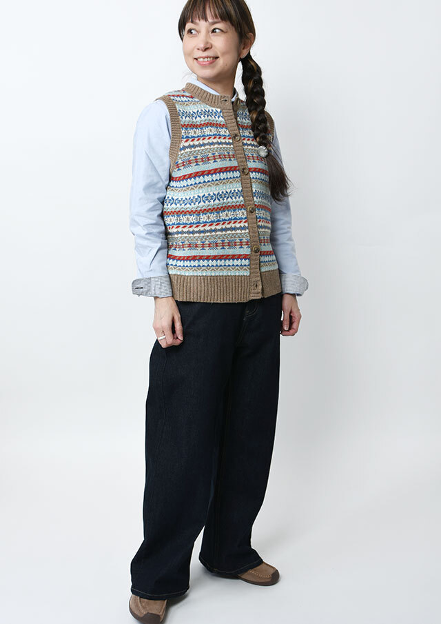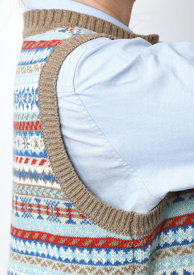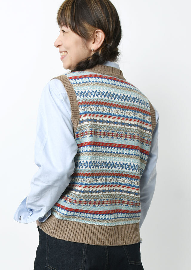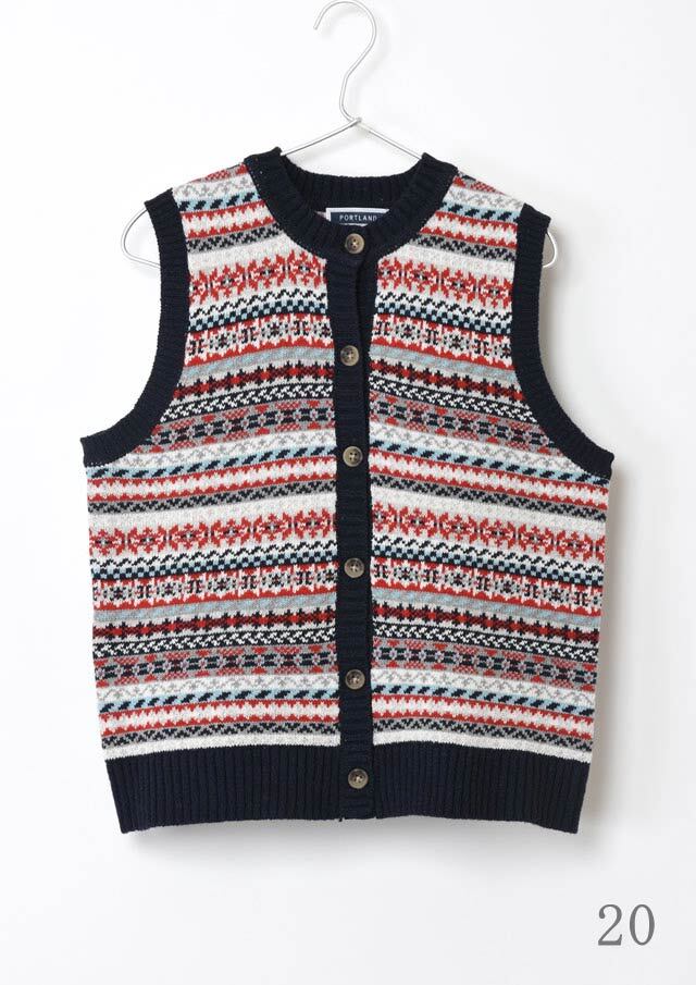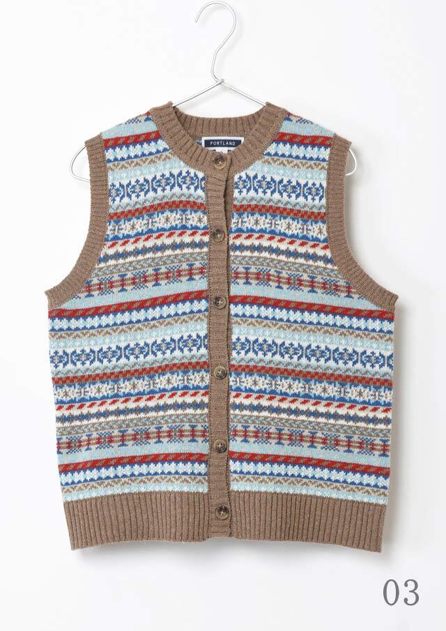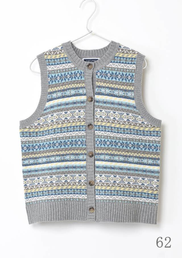 冬らしさ満点のジャカード編みが魅力のニットベスト。ブラウスやカットソーを合わせるだけで、シーズンムード漂うコーディネートに♪アウターの中からちらりと覗かせてもGOOD◎
