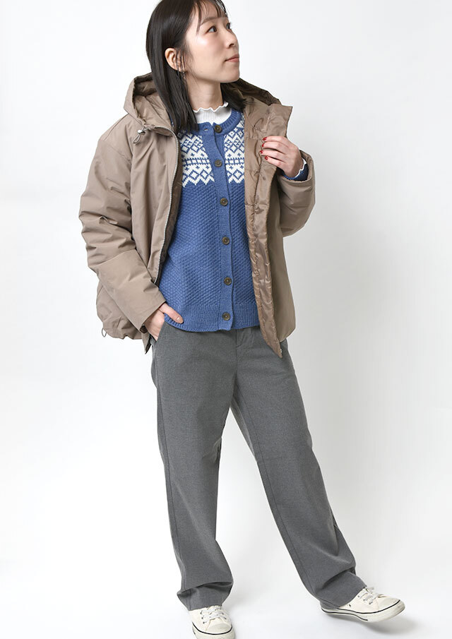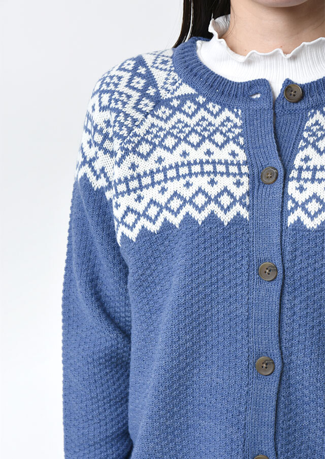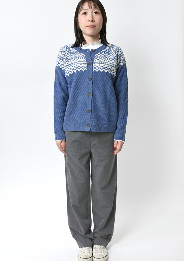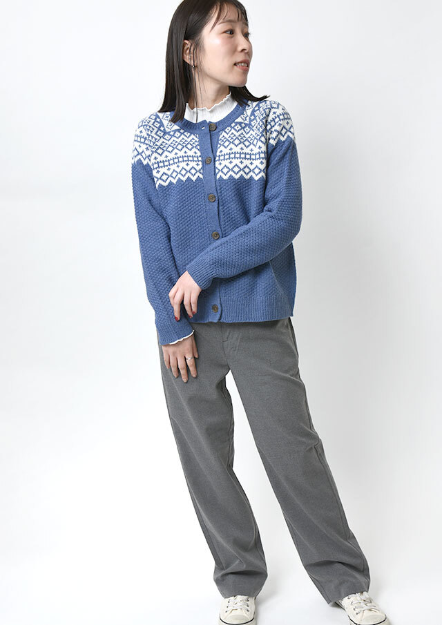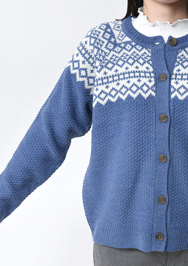 ウィンタームードを高めるジャガード柄が目を惹くニットカーディガン。凹凸のある編地による表面感もポイントです。羽織るだけでコーディネートに温かみと季節感をプラスし、寒い季節のおしゃれを楽しめます。デイリー使いはもちろん、冬のイベントシーンにもぴったりです♪