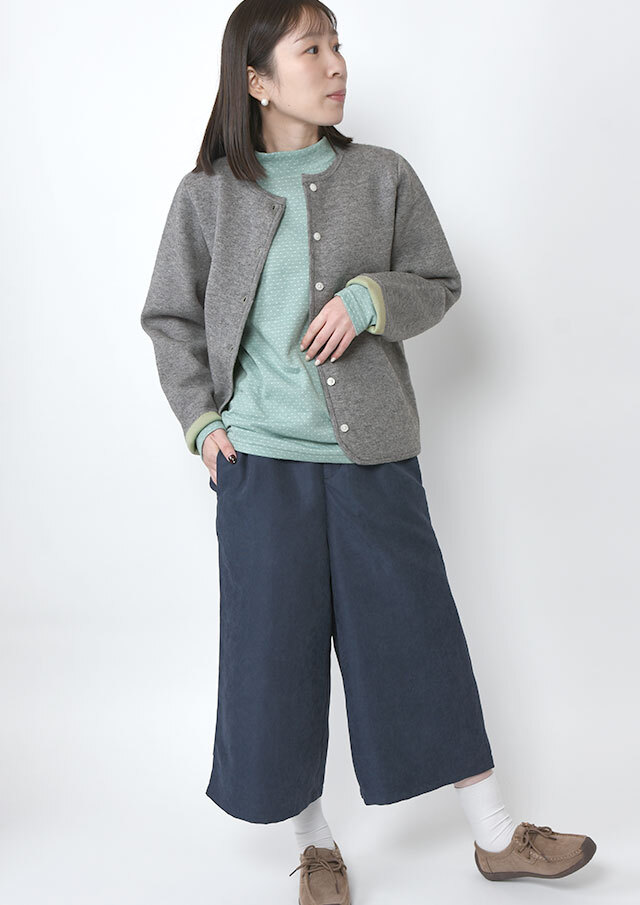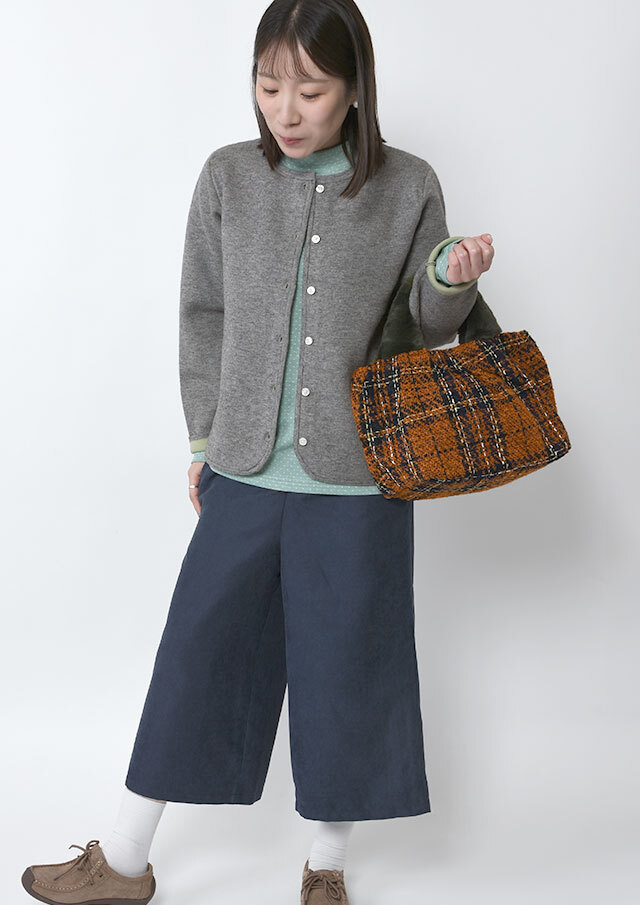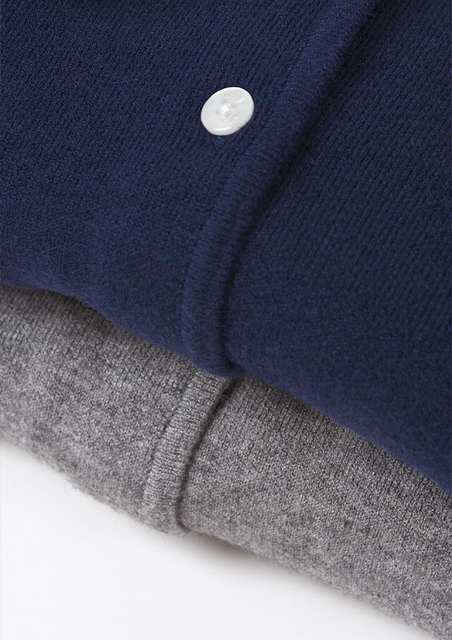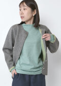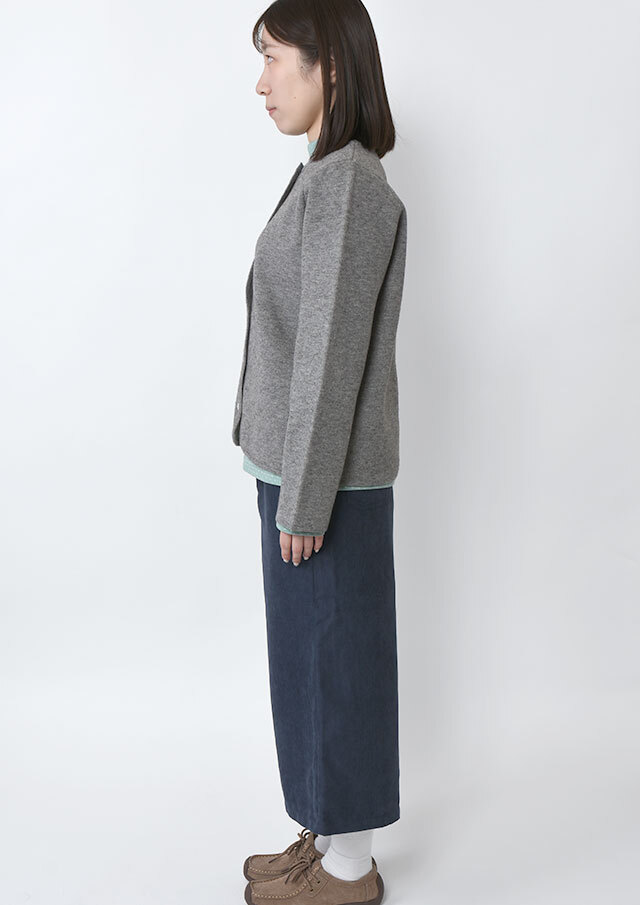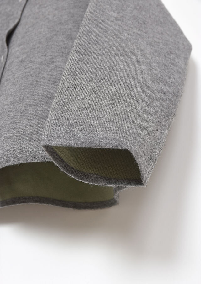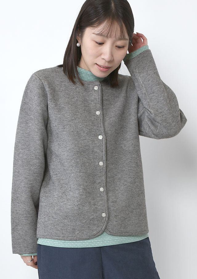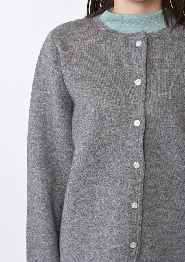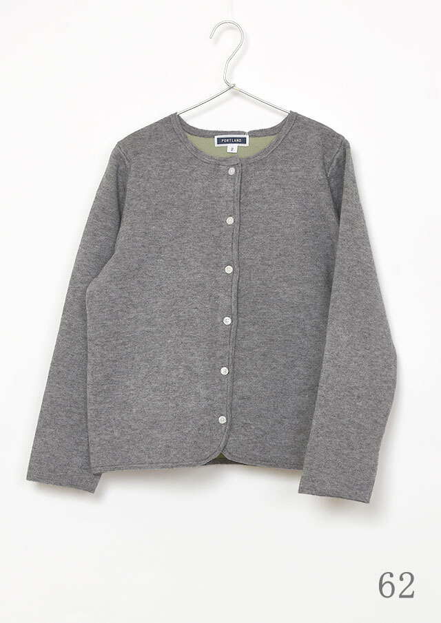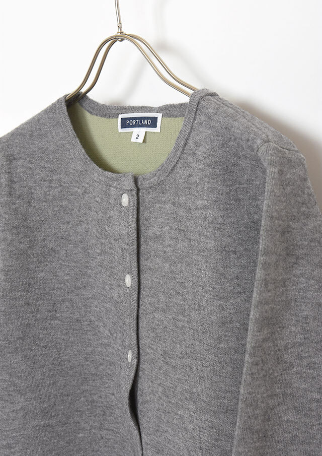 ダブルフェイスで編み立てた程よい肉感のあるカーディガン。ノーカラーデザインが首元をすっきりと見せ、上品で洗練された印象に。裏地には配色カラーを採用しており、袖口を折り返したり、さりげなく覗くコントラストがスタイリングのアクセントになります。カーディガンとしてはもちろん、軽めのジャケット感覚で羽織るのもおすすめ。