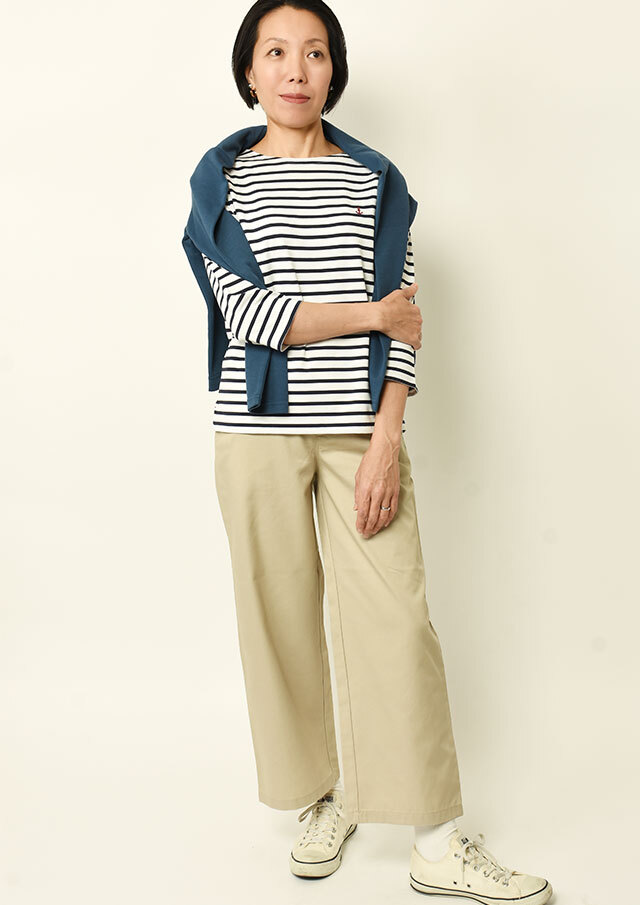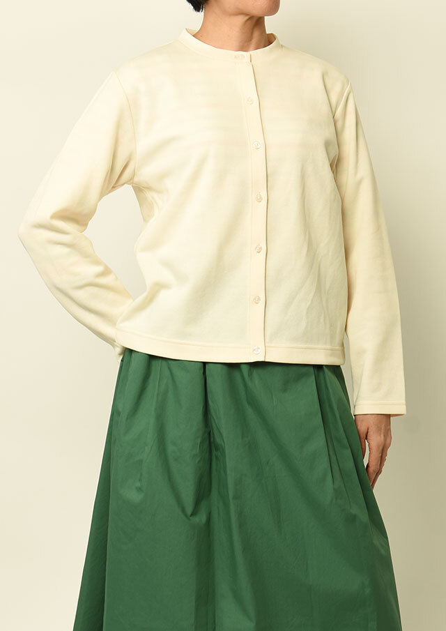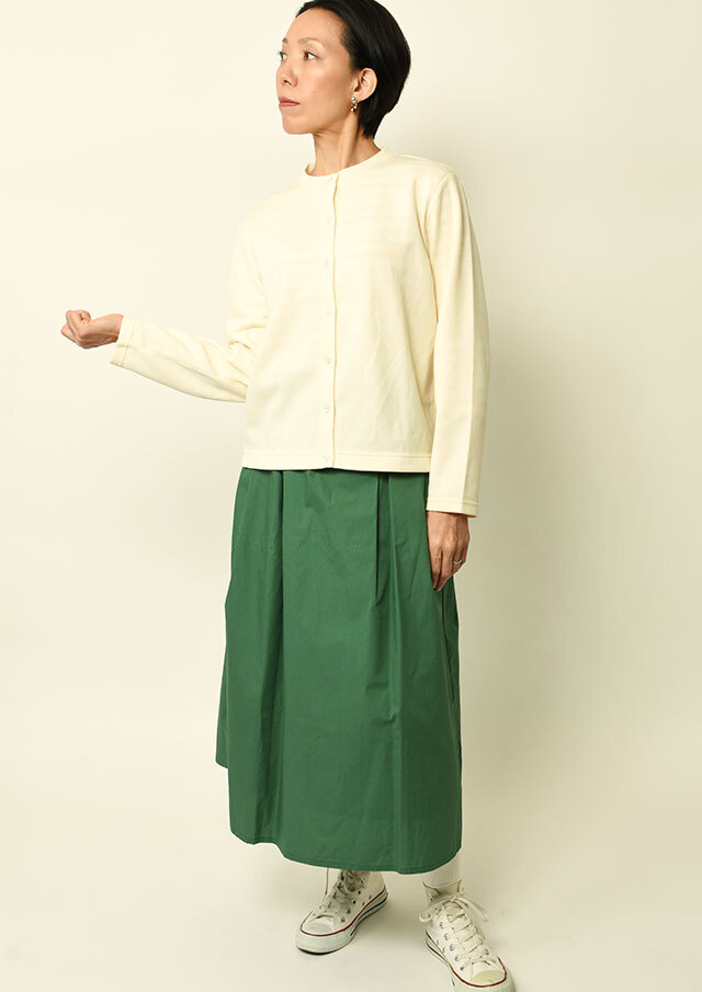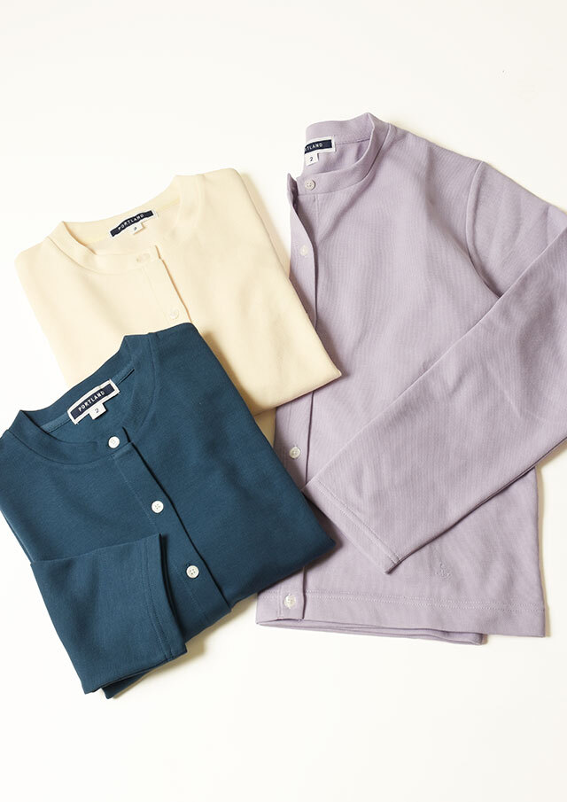 余計な装飾が無く、シンプルで取り入れやすいカットソー鹿の子の長袖カーデ。サラッとしていて、ポリエステル混なのでシワになりにくく、お手入れが楽ちんなのも嬉しいポイント♪ポートランド定番のボーダーカットやチェックシャツにも好相性です。