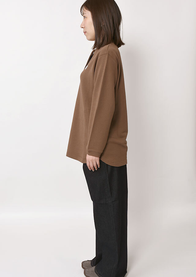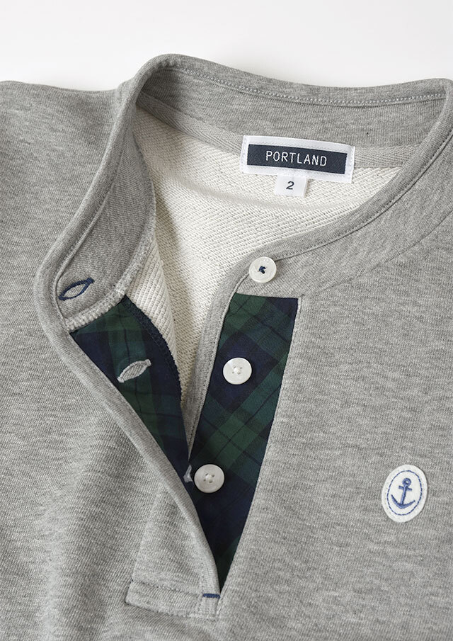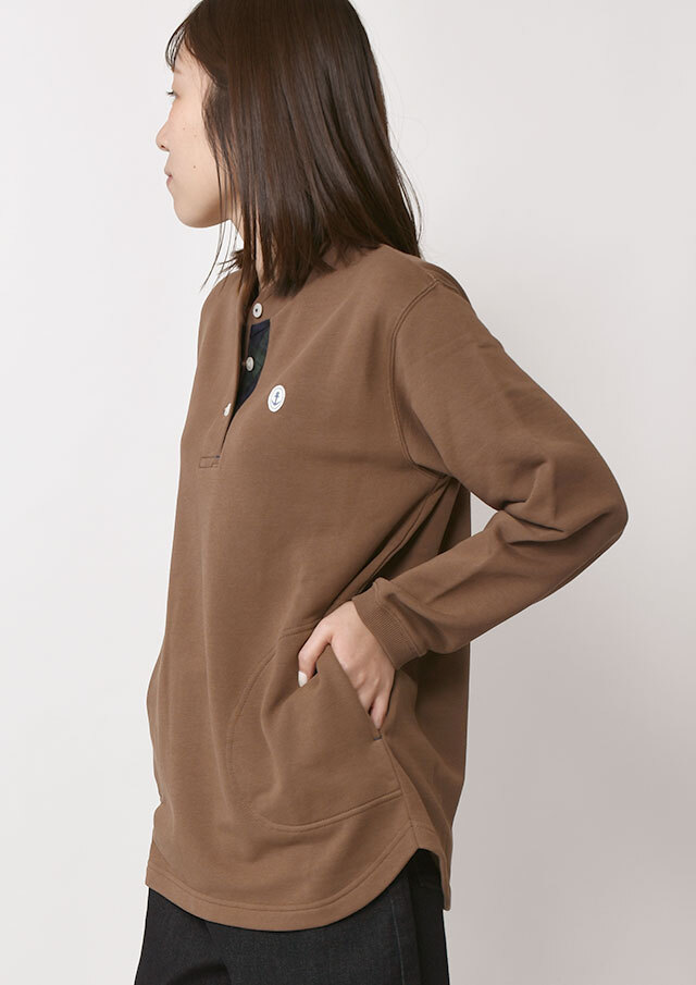ボタンを開けると内側からブラックウォッチ柄が覗く、ヘンリーネックの裏毛チュニック。ゆったりとしたシルエットで体のラインを拾いにくく体型カバーも◎寒い日はハイネックのインナーやタートルネックを重ねたレイヤードスタイルもおすすめ◎