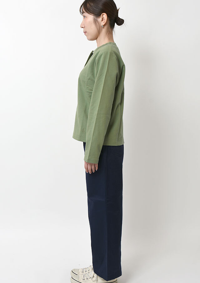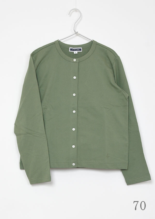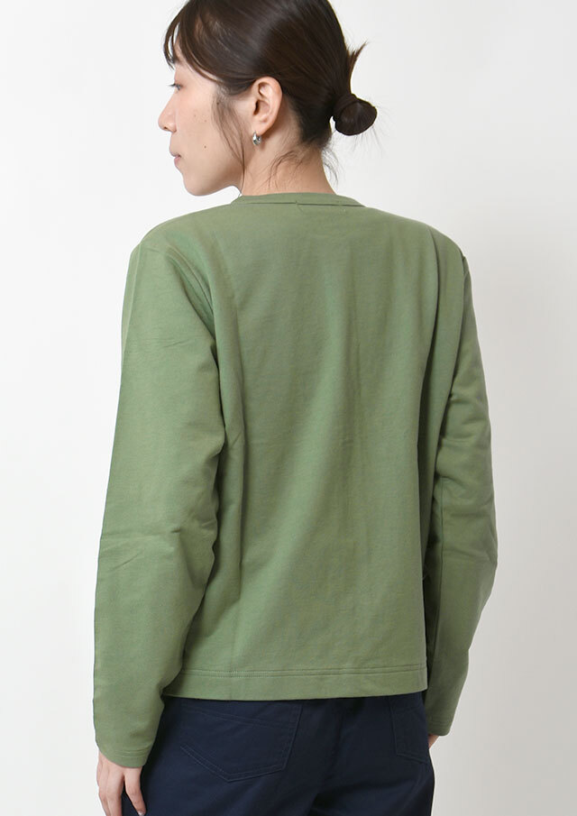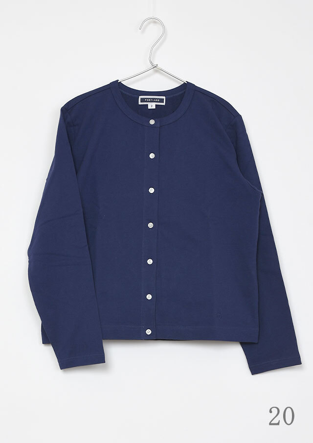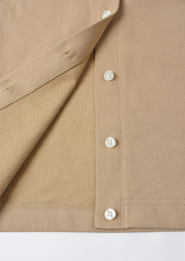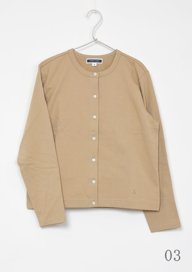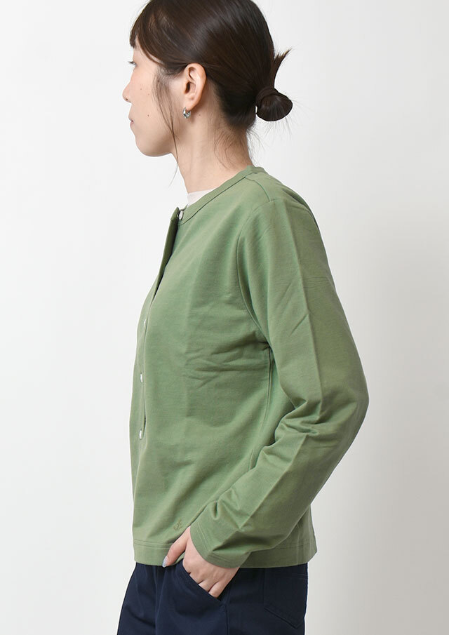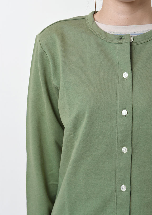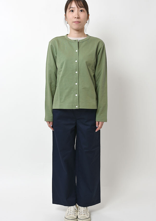 やわらかくて軽い着心地が嬉しい、ミニ裏毛素材のクルーネックカーディガン。やや短めの着丈で、ボリュームのあるパンツやスカートともバランスよく合わせられ、コーディネートがすっきりまとまります。シンプルなデザインなので着回し力も抜群。羽織りとしてはもちろん、ボタンを留めてトップス風に着こなすのもおすすめです。季節の変わり目や少し肌寒い日などに、1枚あると重宝する便利なアイテムです◎