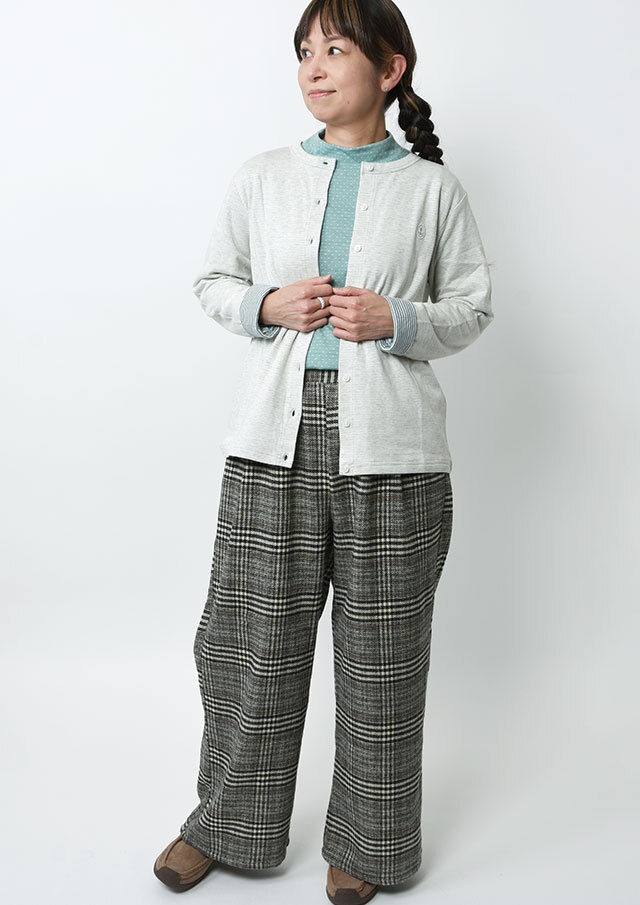 やわらかな綿100%の接結生地を使用した、優しい肌触りの無地カーディガン。裏側がボーダー柄なので、袖を折り返してボーダーをさりげなくのぞかせることで、コーディネートに表情をプラスできます。今季はレッドをポイントに、冬にぴったりのカラー展開になっています。おうち時間にもお出かけにも、軽やかに羽織れる一枚です。