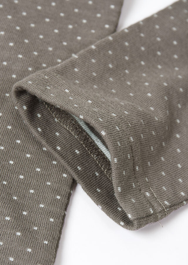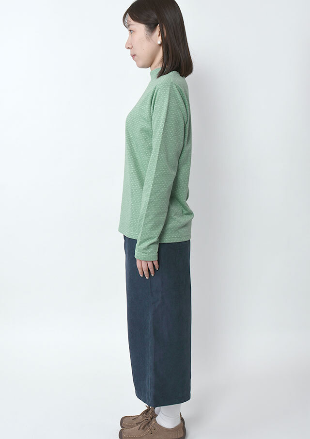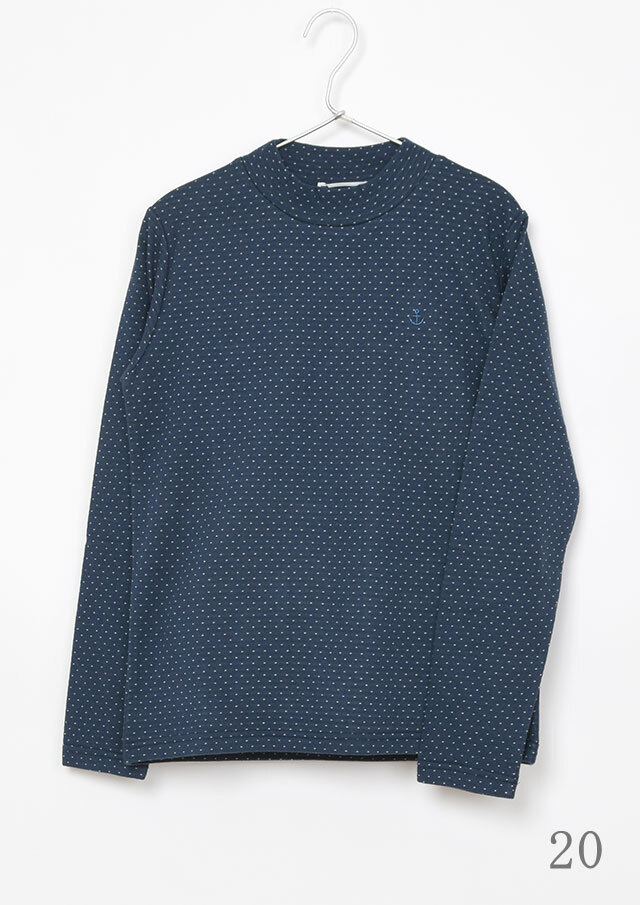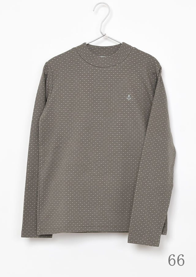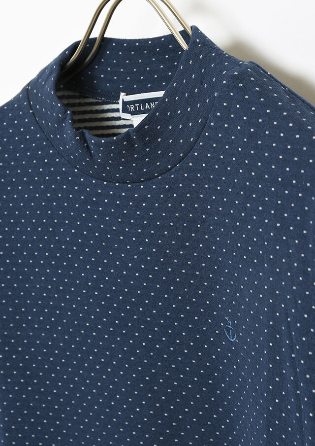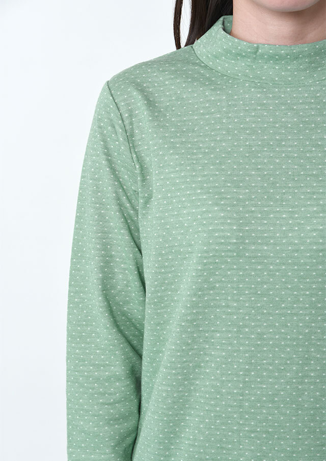 ドット柄が可愛いカットソーはポリエステルと綿を混紡した接結素材の1着。ほどよくフィットする着心地と短めのネックで首が詰まりすぎずスッキリと着れるハイネックデザインです。柔らかで2重組織の温かみのある風合いとメランジ風のカラーが優しい印象です。