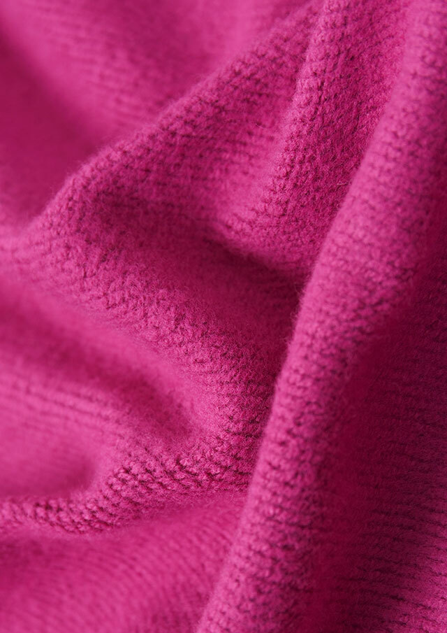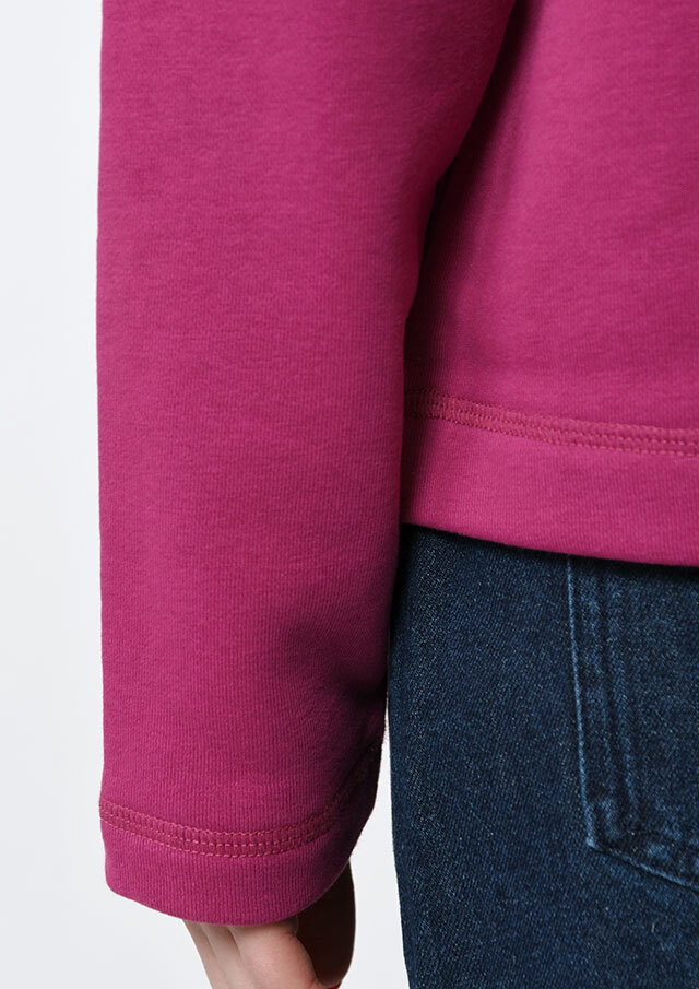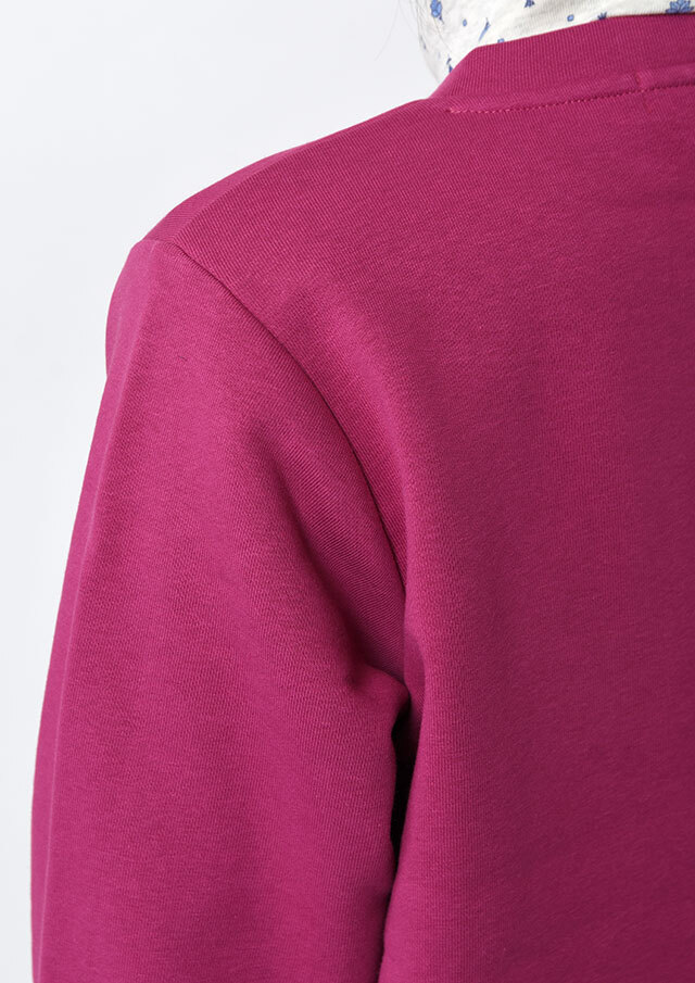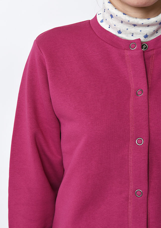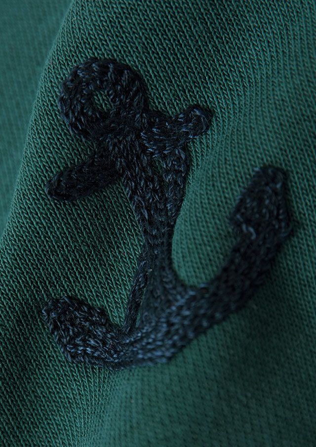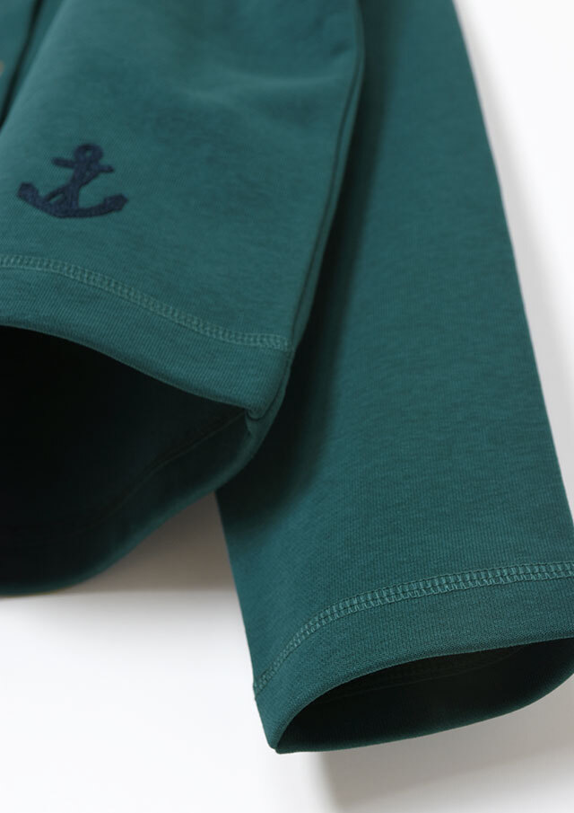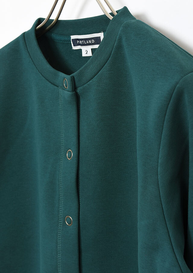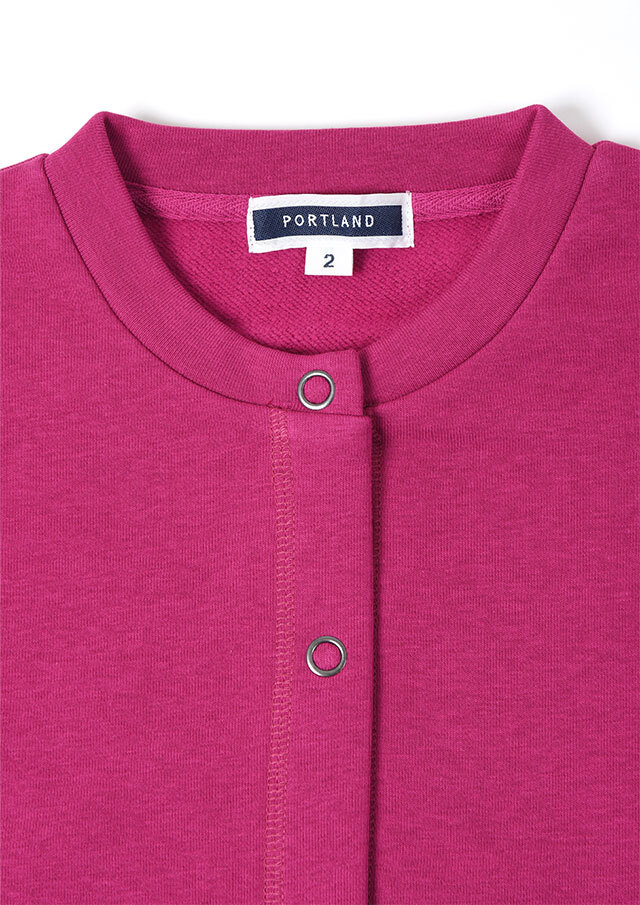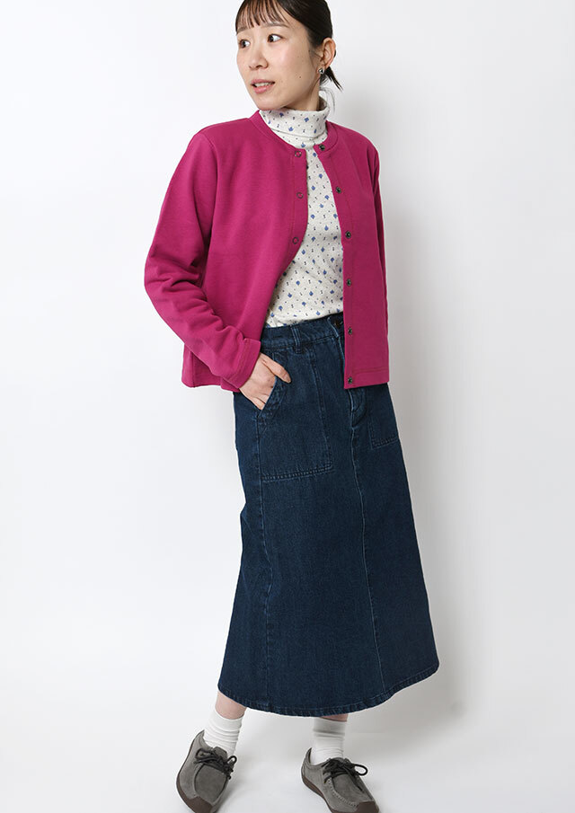 裏起毛素材のあたたかな着心地が魅力のスナップカーディガン。すっきりとしたショート丈でスカートやボリュームのあるボトムとも好相性。季節の気分を高めるビビッドなマゼンタ系と、落ち着きのあるグリーン系の2色をご用意しました。前身裾にはチェーンステッチで施した“イカリモチーフ”の刺繍を添えて、さりげないアクセントに。