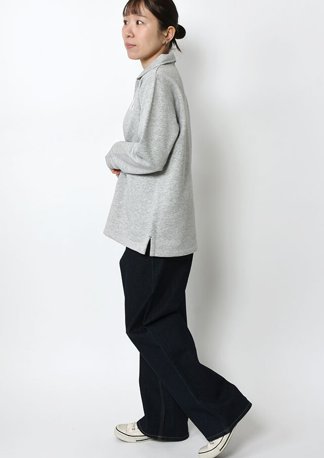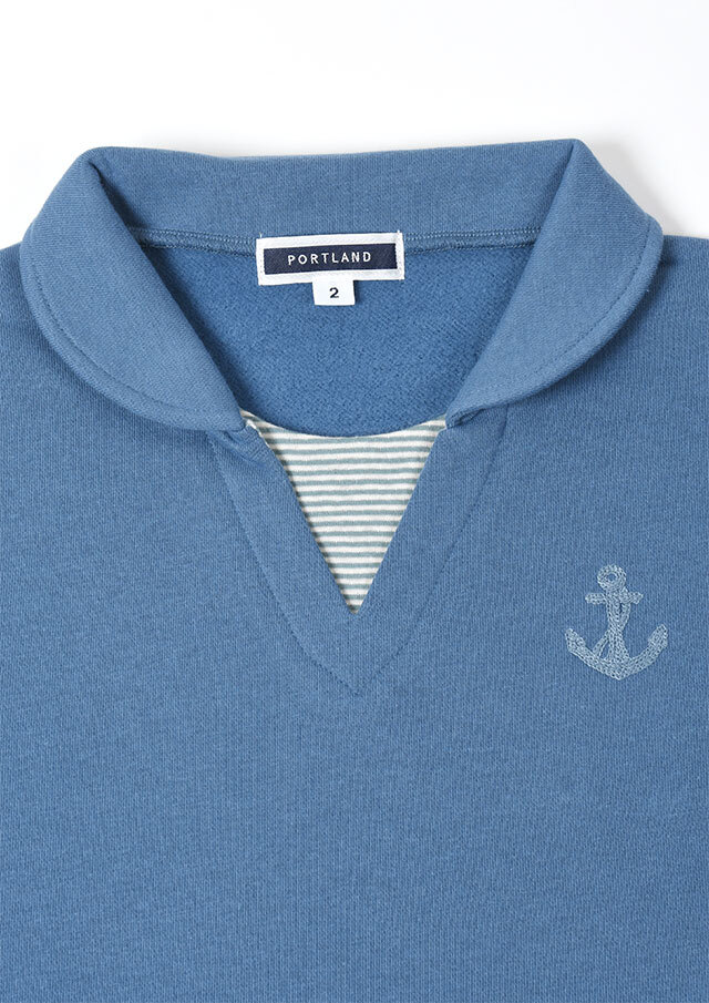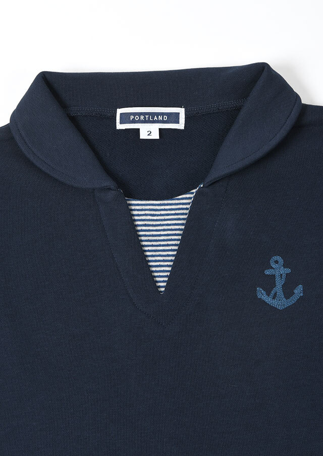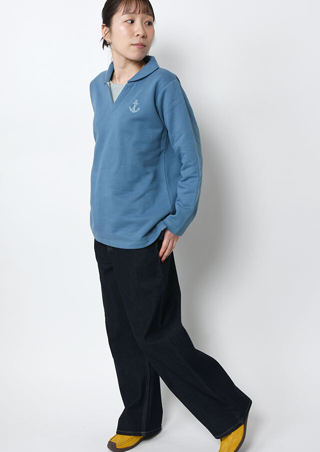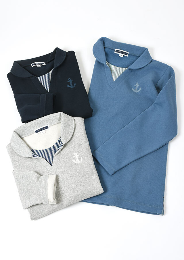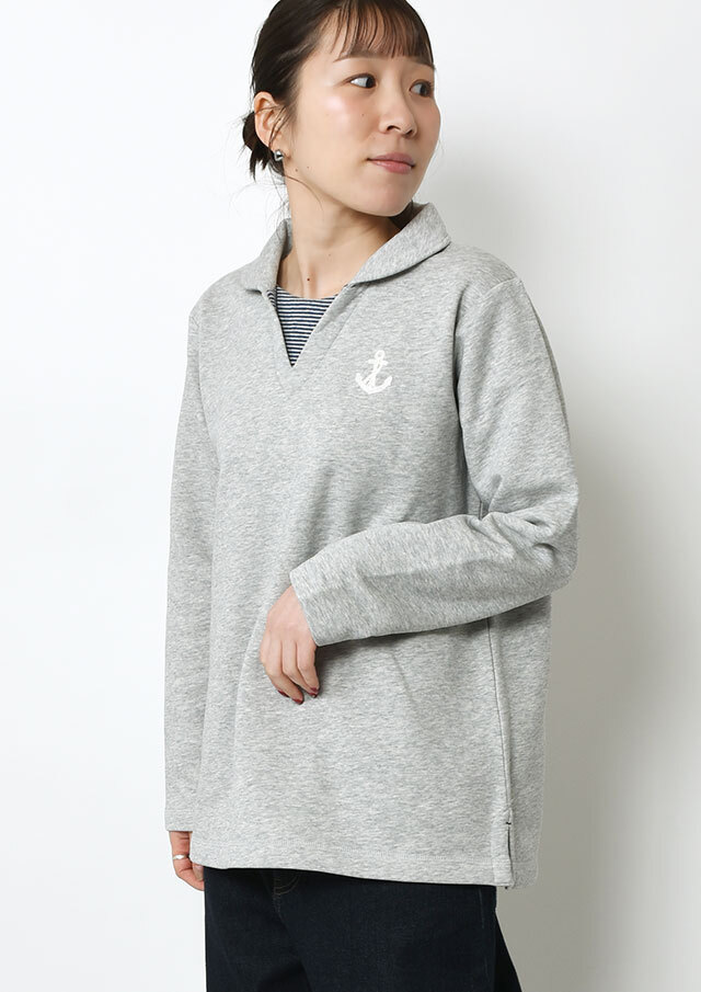 あたたかな裏起毛素材を使用した、着心地抜群のプルオーバー。首元とサイドスリットには接結のボーダーをあしらい、さりげないアクセントを加えました。チェーン刺繍のイカリマークもポイント。ほどよく広めの襟あきで、顔まわりをすっきり見せつつ、ハイネックインナーとのレイヤードも楽しめます♪やや長めの着丈がウエストまわりを自然にカバーし、体型を選ばずリラックスして着られる一枚。