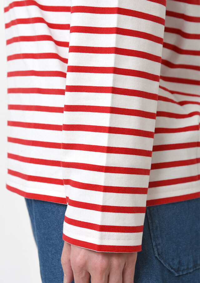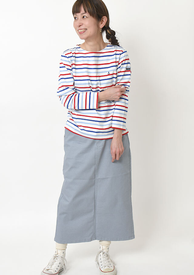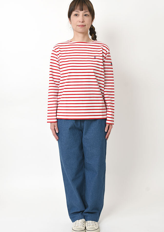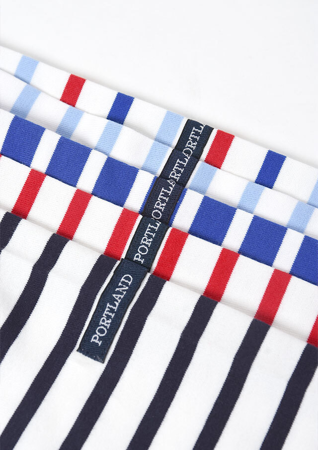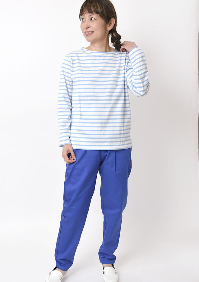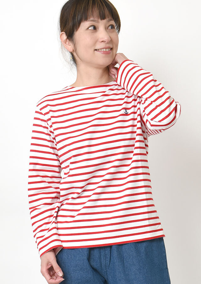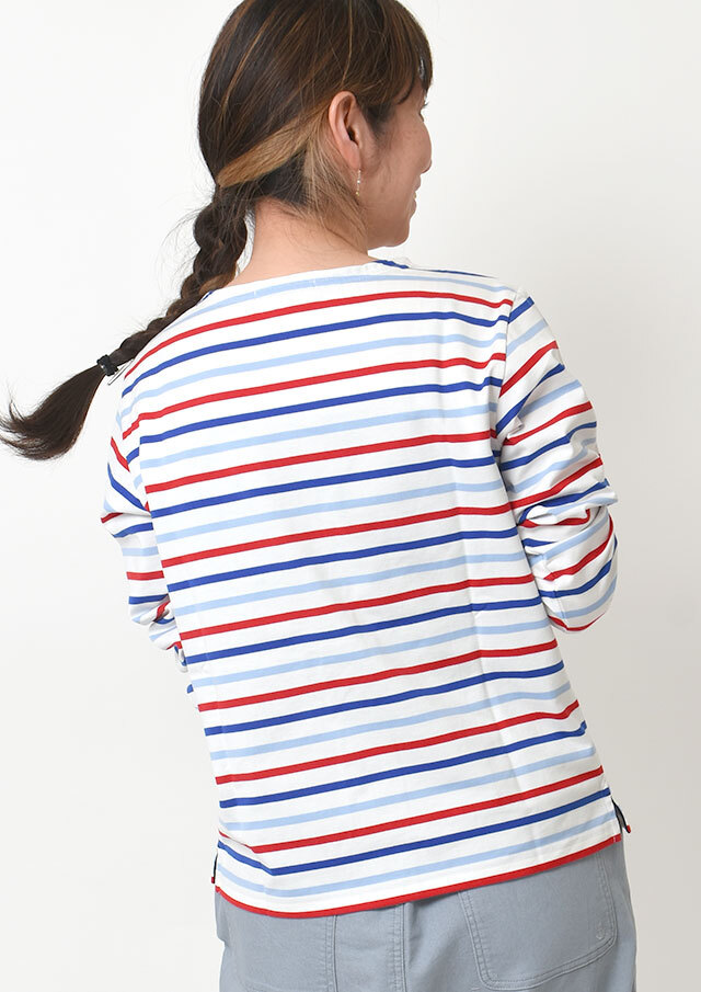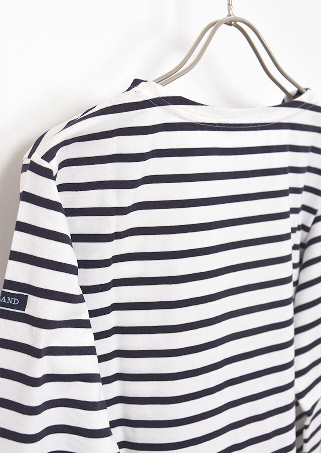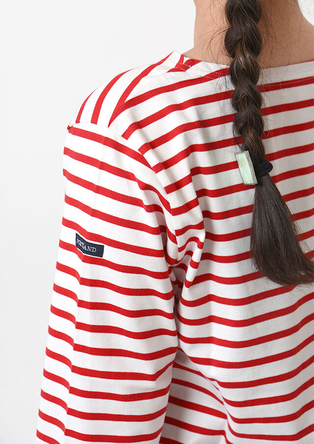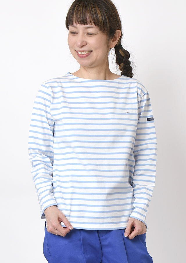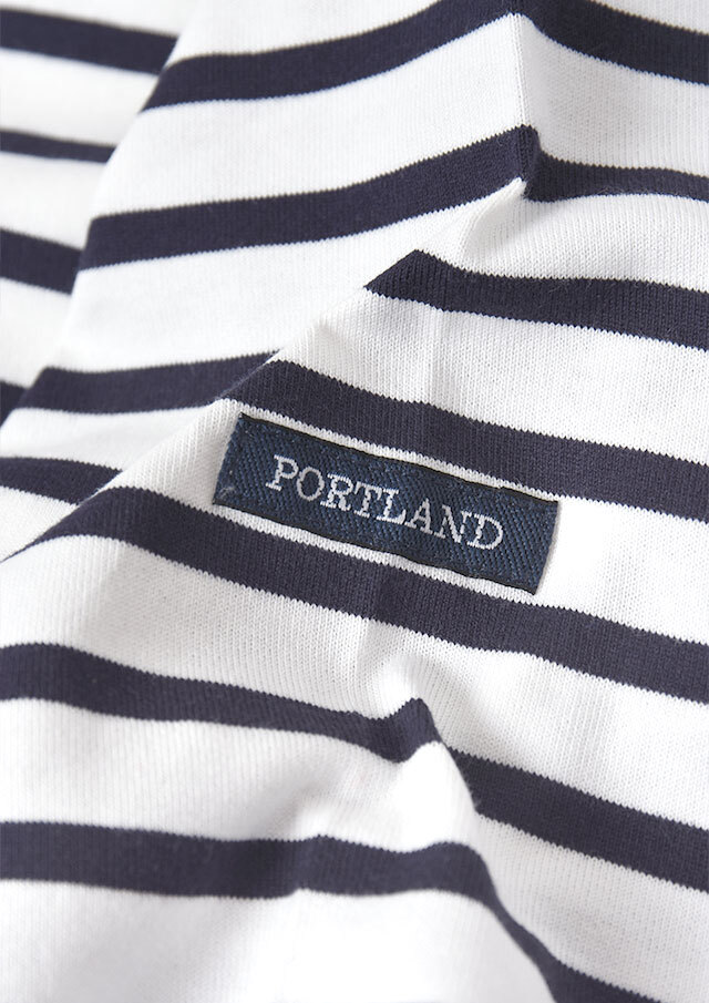 ポートランド定番アイテムのボーダーカットソー。綿100%の40/2天竺素材を使用。重ね着しやすい九分袖デザインで、季節の変わり目からロングシーズン活躍。今季はマリンテイストを感じる爽やかなカラー展開で、コーディネートの主役にもアクセントにもなるアイテムです。左胸にはおなじみのイカリ刺繍と、袖に付いたネームタグもポイントです。