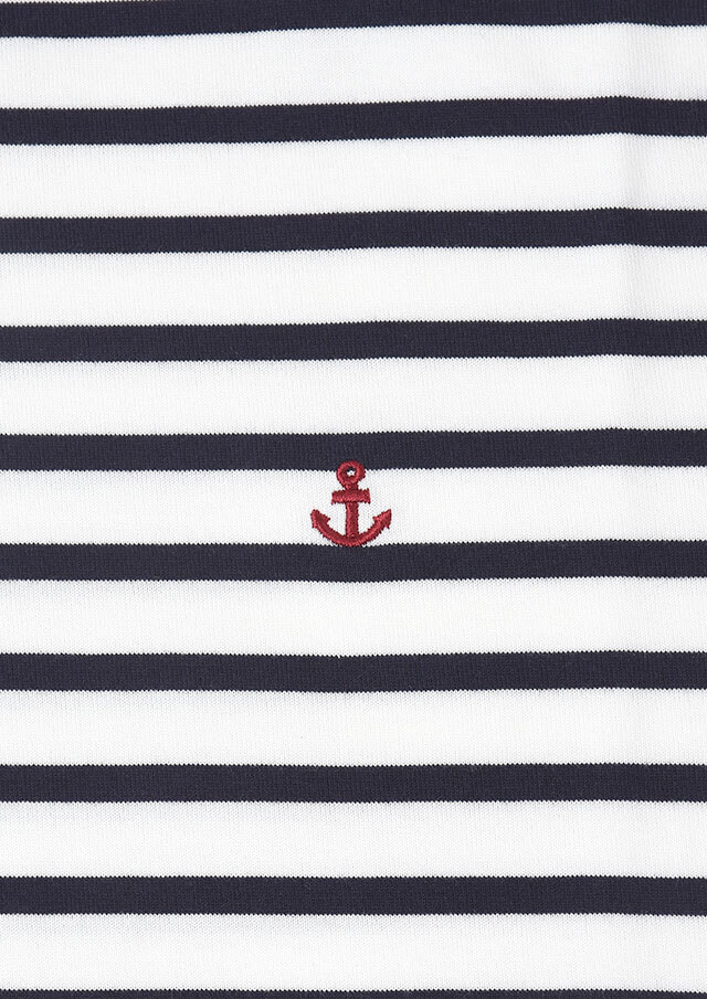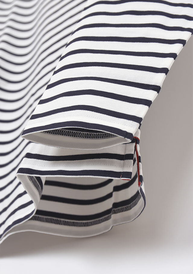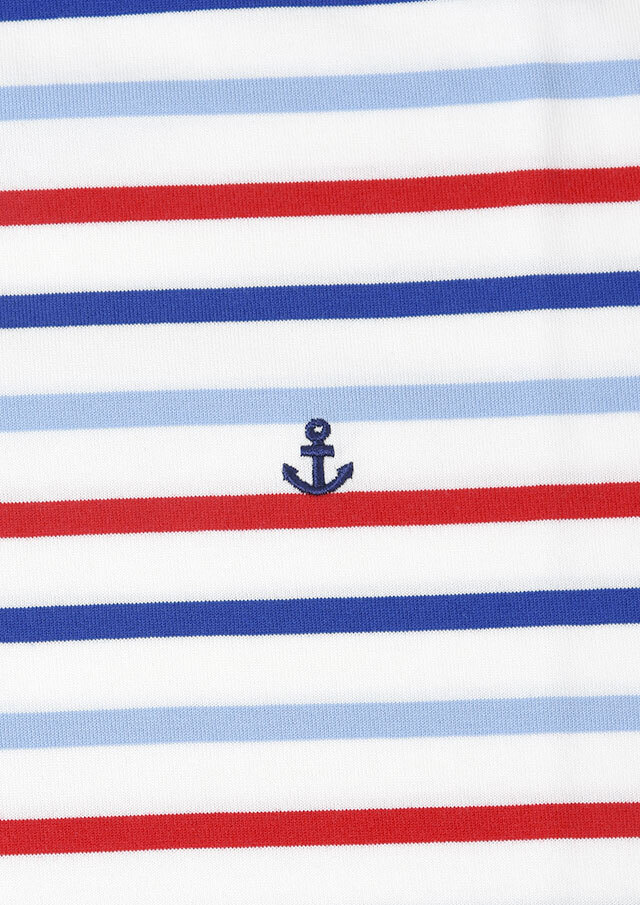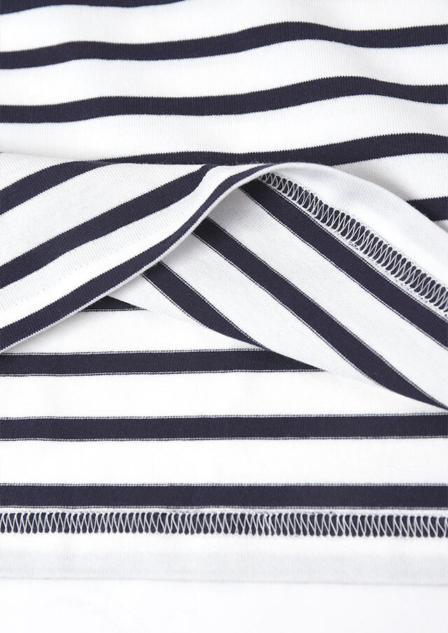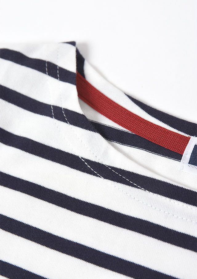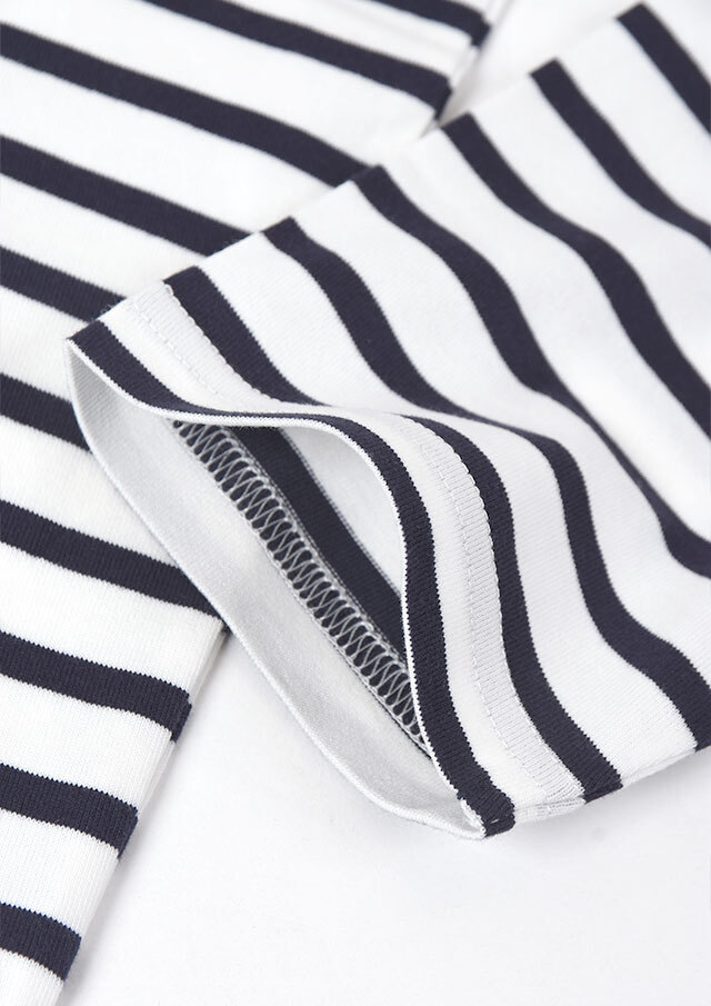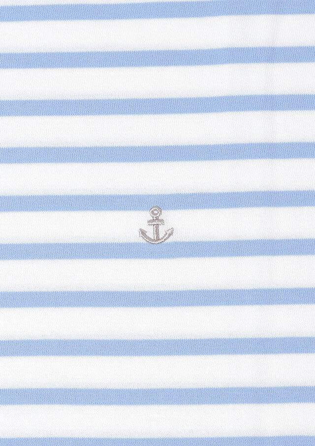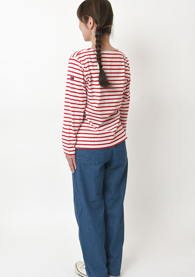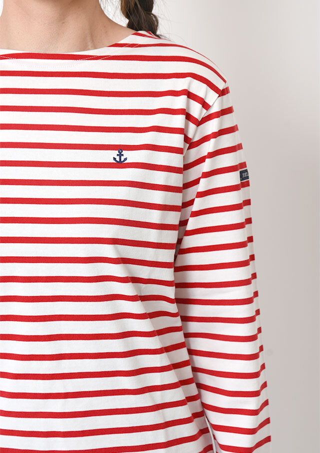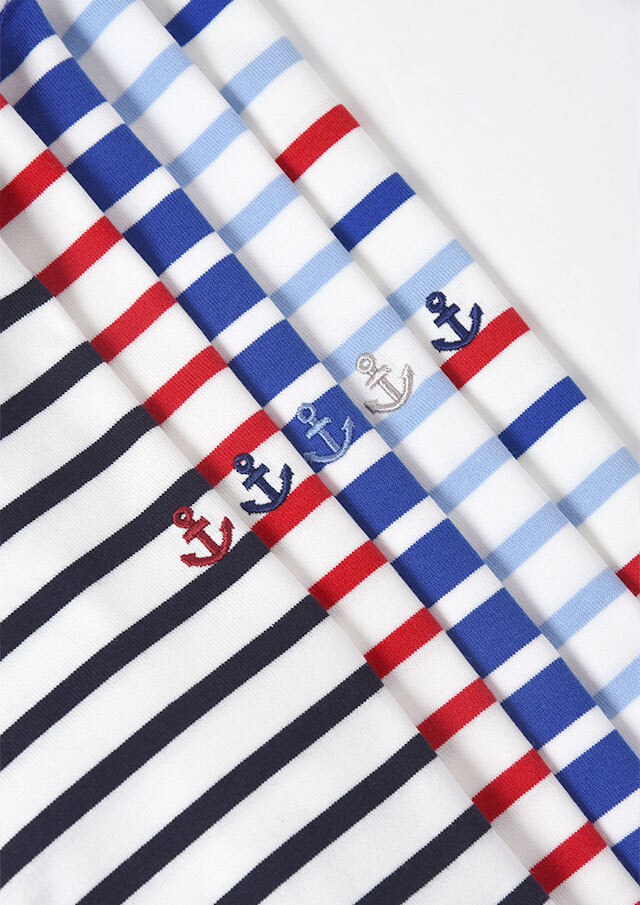 ポートランド定番アイテムのボーダーカットソー。綿100%の40/2天竺素材を使用。重ね着しやすい九分袖デザインで、季節の変わり目からロングシーズン活躍。今季はマリンテイストを感じる爽やかなカラー展開で、コーディネートの主役にもアクセントにもなるアイテムです。左胸にはおなじみのイカリ刺繍と、袖に付いたネームタグもポイントです。