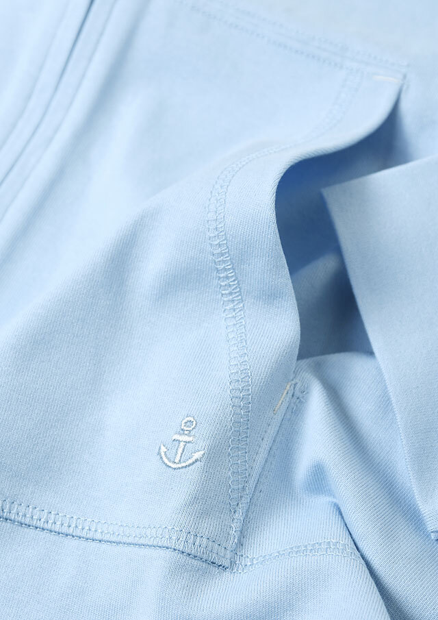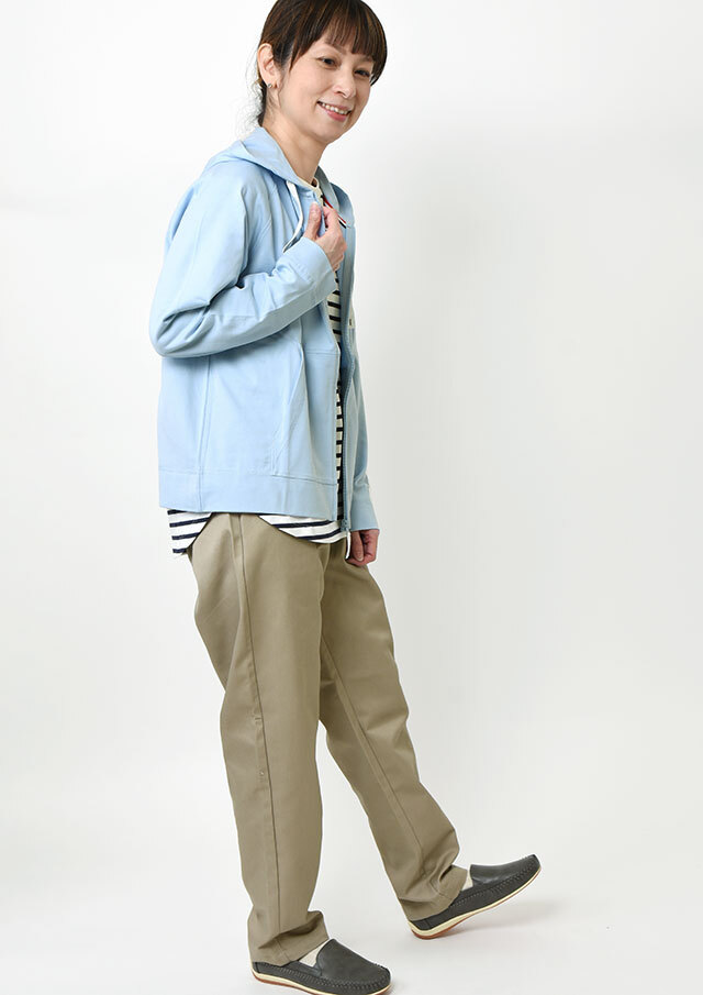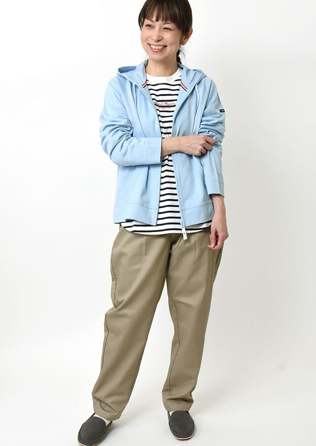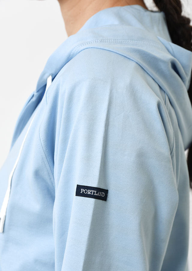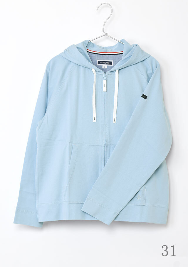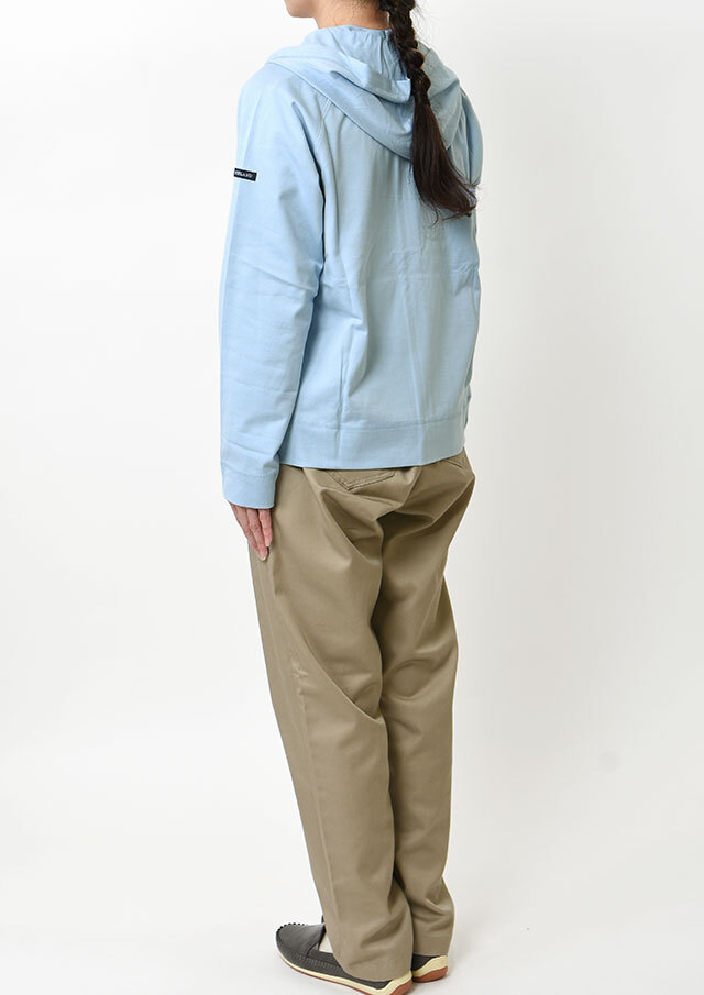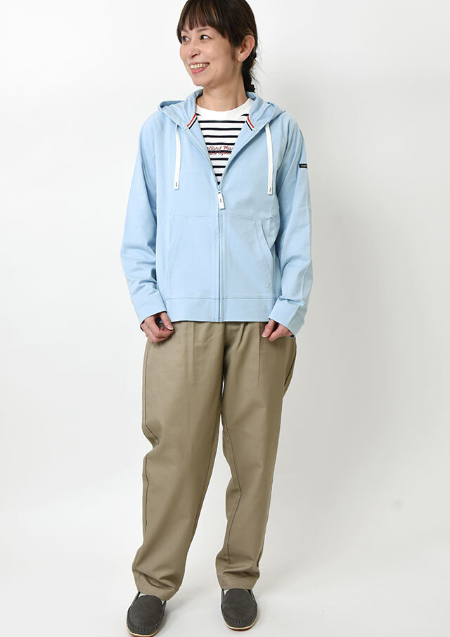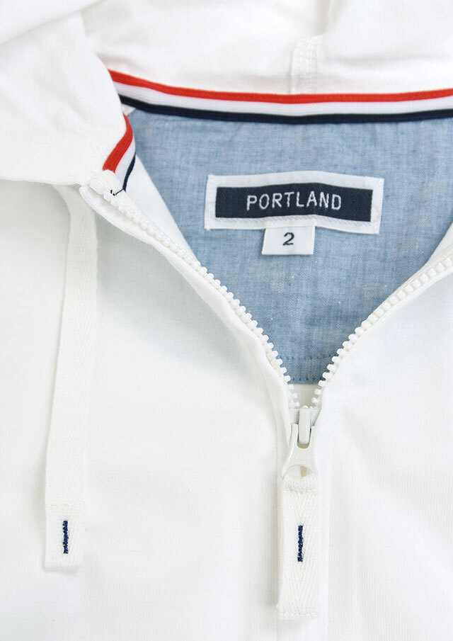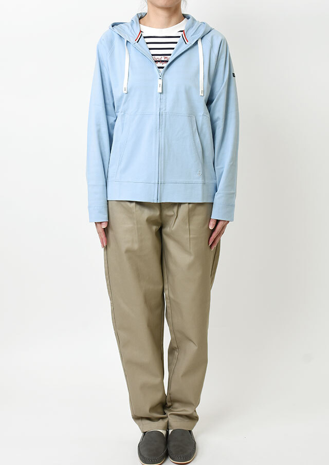 綿100%・40/2天竺素材を使用した、スタンダードなZIPフーディー。やわらかな風合いで、季節を問わず着回しやすいベーシックアイテム。シンプルなデザインの中に、襟ぐり裏のトリコロールテープ、左袖のネームや左ポケットのイカリ刺繍がさりげないアクセントに。カジュアルスタイルに欠かせない、ワードローブの定番としておすすめの一枚です◎