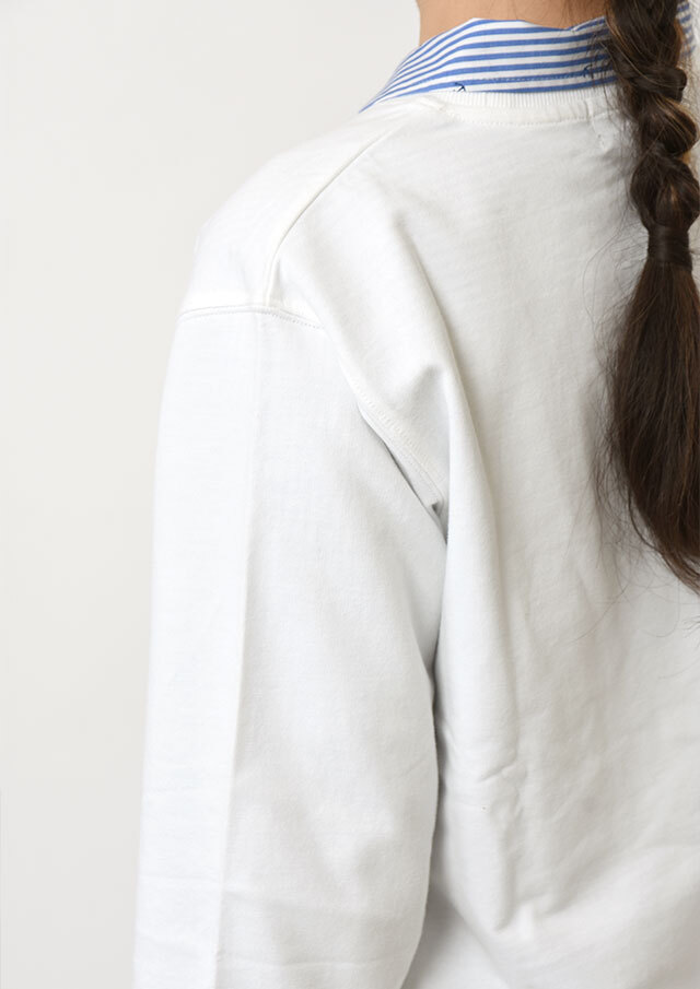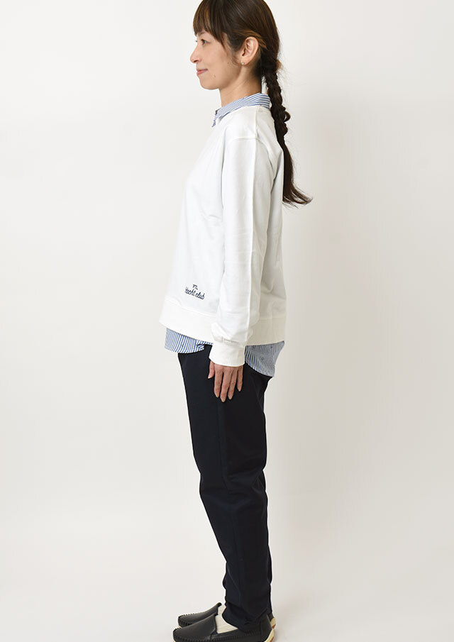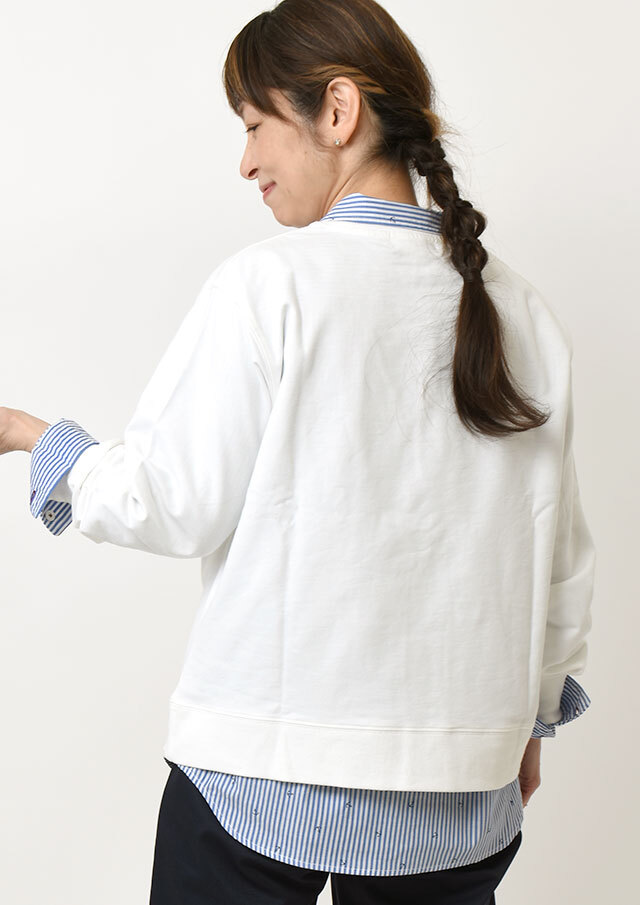 軽やかなミニ裏毛素材を使用したベーシックなサイズ感のプルオーバー。ロングシーズン着回しやすく、デイリーに活躍する一枚です。シャツやブラウスを重ねたレイヤードスタイルもおすすめ。シンプルなデザインだからこそ、インナー次第でさまざまな着こなしを楽しめます。ゆったりとしたシルエットで着用したい方は、ワンサイズアップも◎前身頃の裾と袖口に刺繍入り。