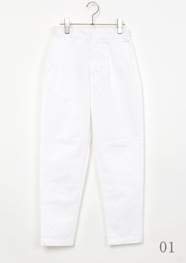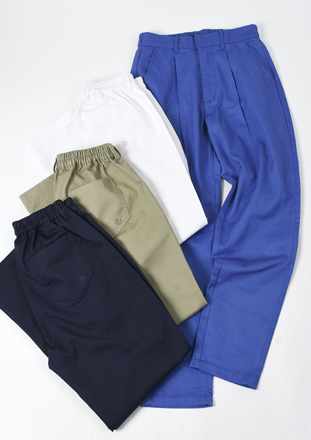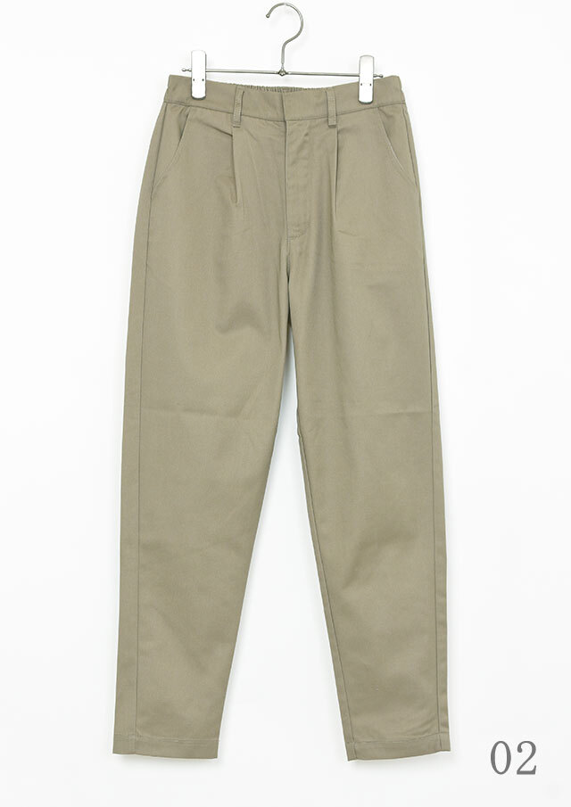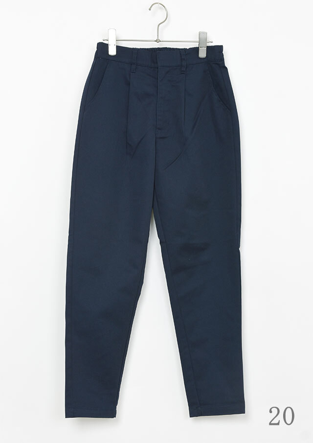 しっかりとした風合いのTC素材を使用したチノパンツ。きれいなラインを描くテーパードシルエットで、脚をすっきりと見せてくれる一本です。きちんと感がありながらも、カジュアルにも合わせやすく、オンオフ問わず活躍。通勤スタイルからデイリーコーデまで幅広く活躍します。ウエストは後ろゴム仕様で、ストレスフリーな穿き心地。見た目のすっきり感と快適さを兼ね備えた、着回し力の高いアイテムです◎