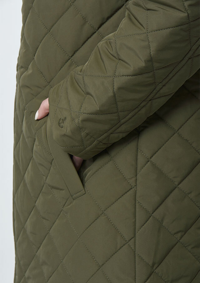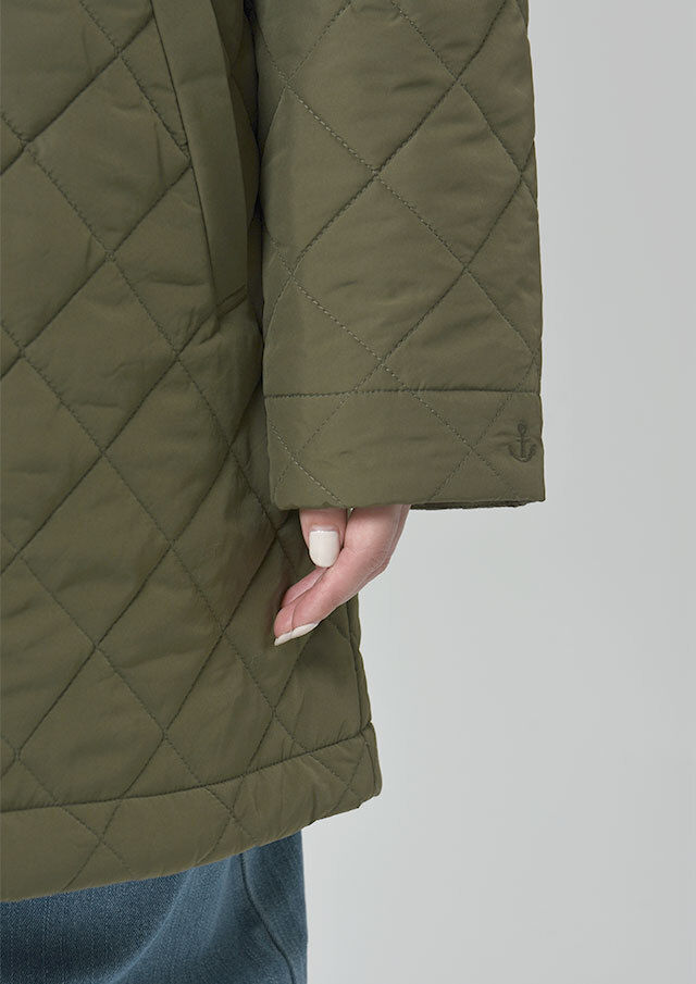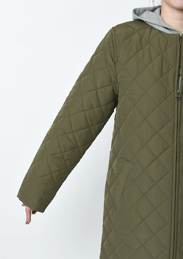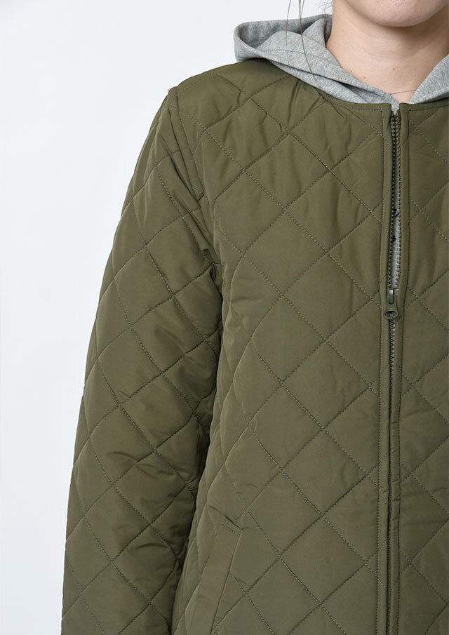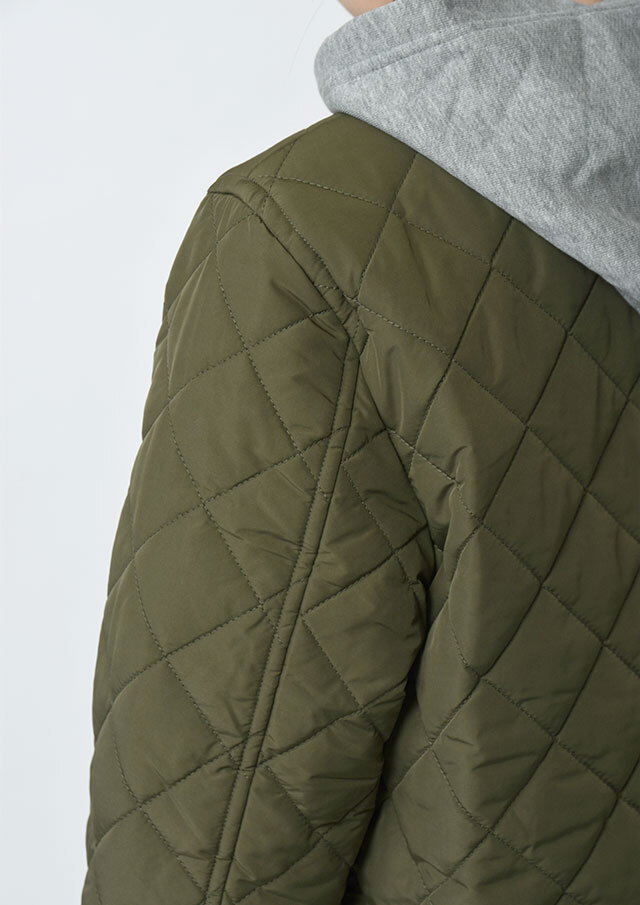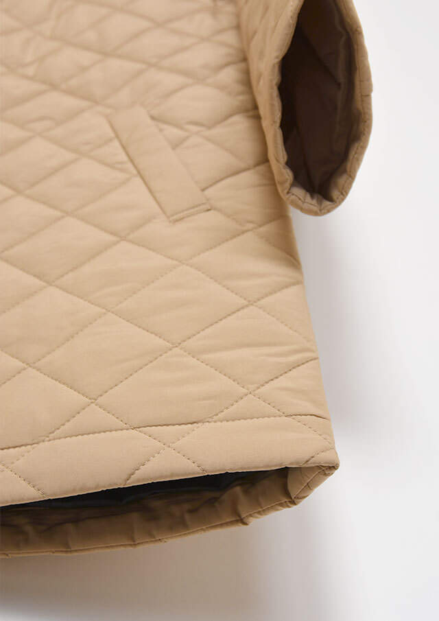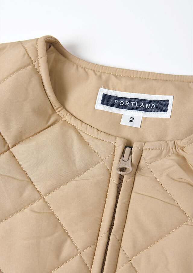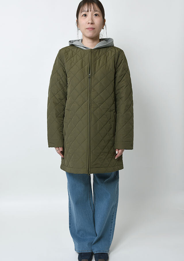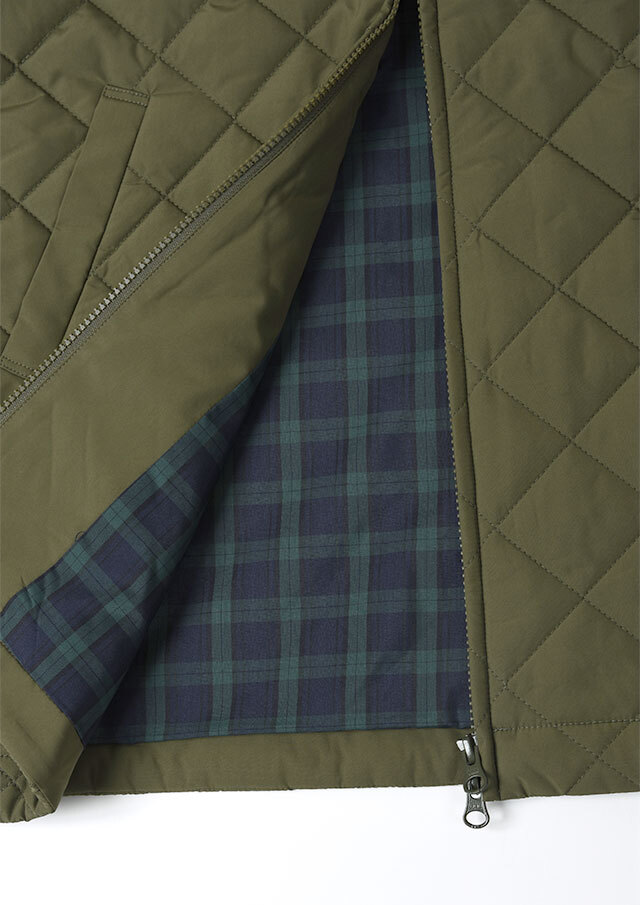 上品かつカジュアルな中綿スクエアキルトのノーカラーコート。軽やかで暖かく、普段使いからお出かけまで幅広く活躍します◎顔まわりがすっきり見えるノーカラーデザインは、フード付きのパーカーやタートルネックとのレイヤードにもぴったり。さっと羽織るだけで、こなれた印象に仕上がります。ブラックウォッチ柄の裏地もポイント。