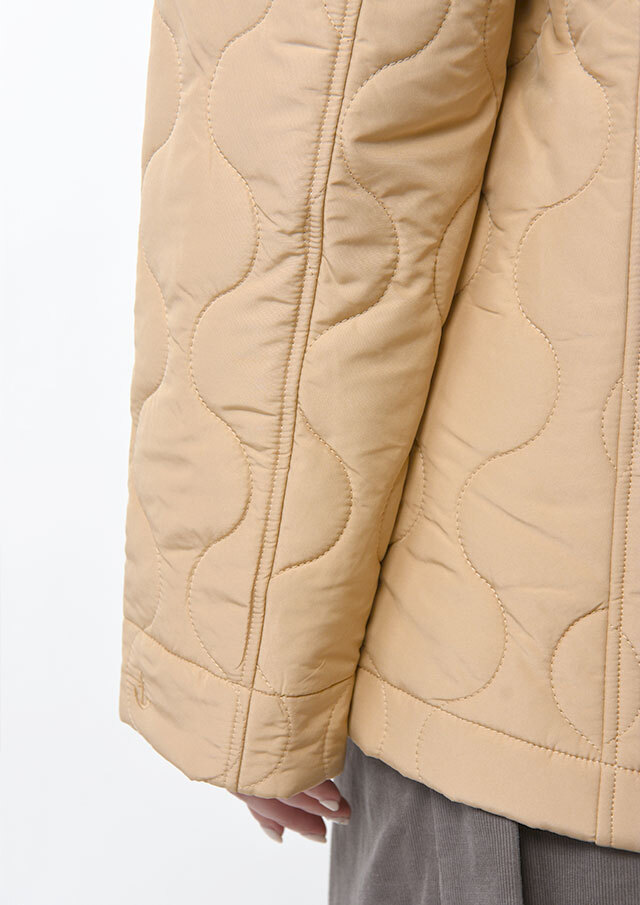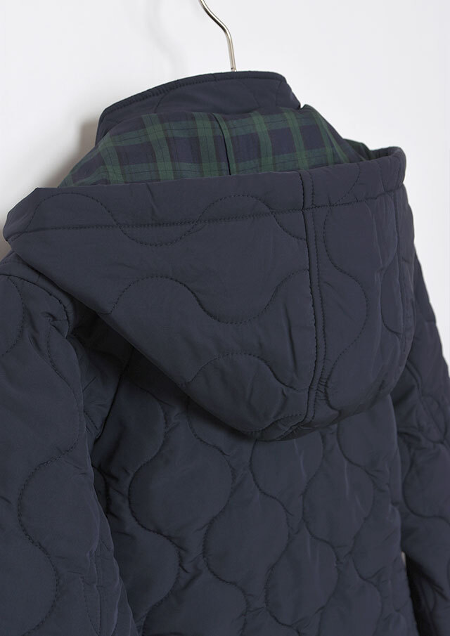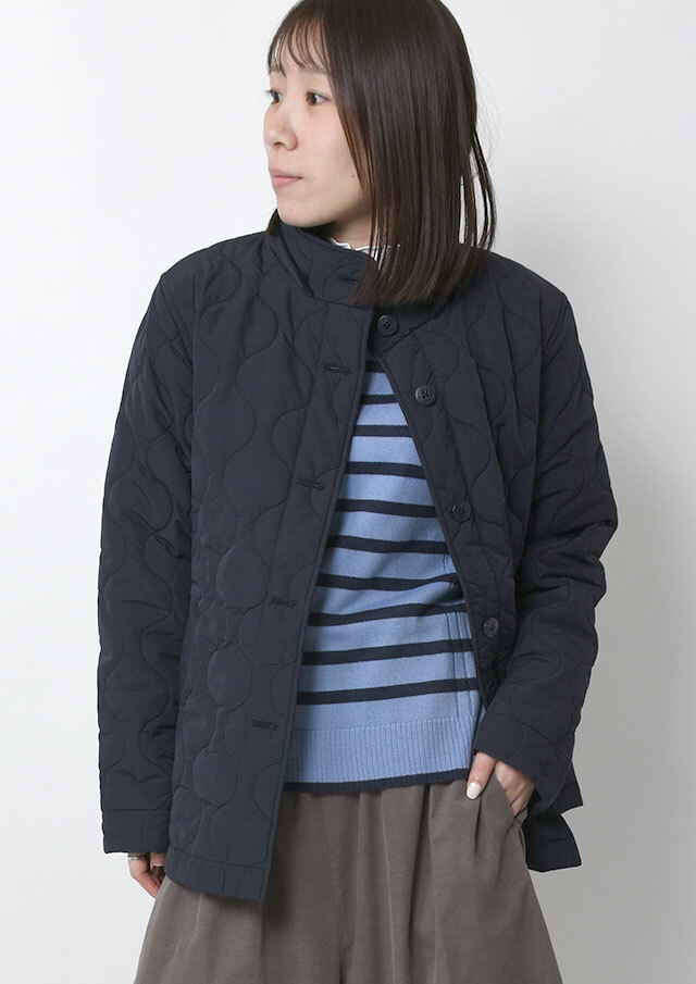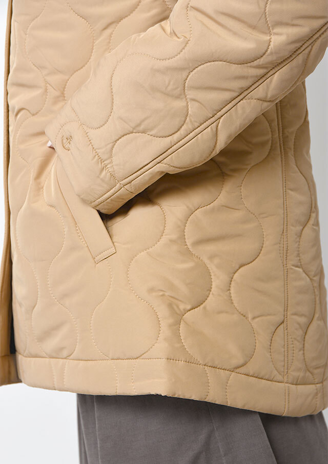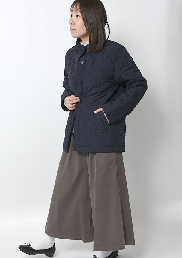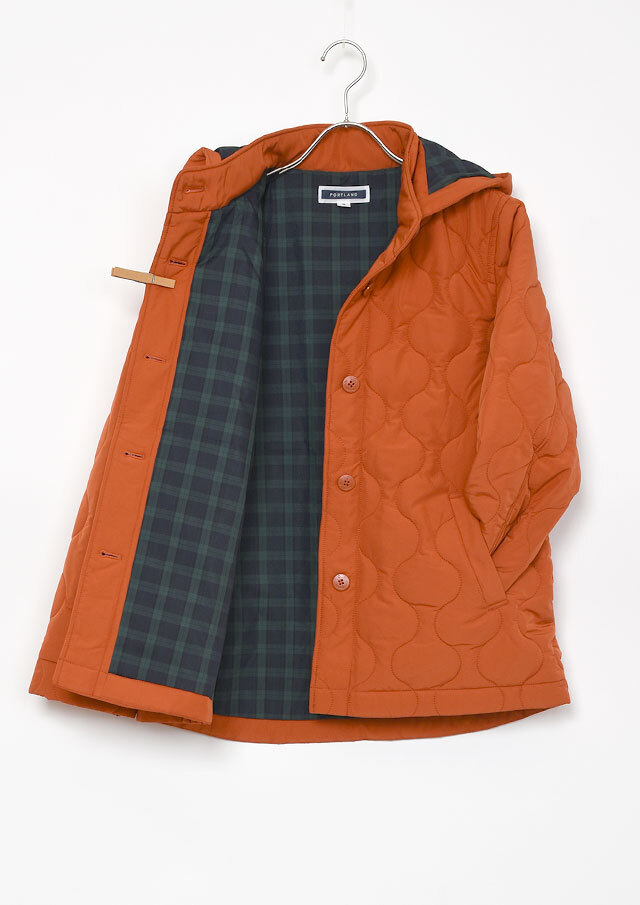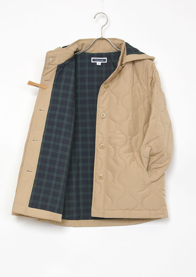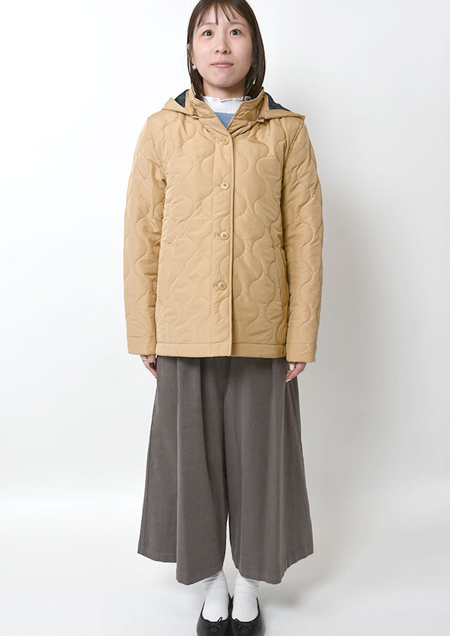 軽やかな着心地でしっかり暖かい、中綿ウェーブキルトのフード付きジャケット。中綿入りで防寒性も◎、裏地には上品なブラックウォッチ柄を採用し、脱いだときにもさりげないおしゃれを演出します。フードはファスナーで着脱可能。外せばスタンドカラーデザインで、シーンや気分に合わせて着こなしをアレンジできます。カジュアルからきれいめまで、幅広いスタイルに馴染む一着です。