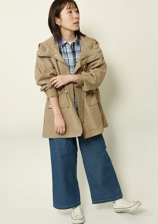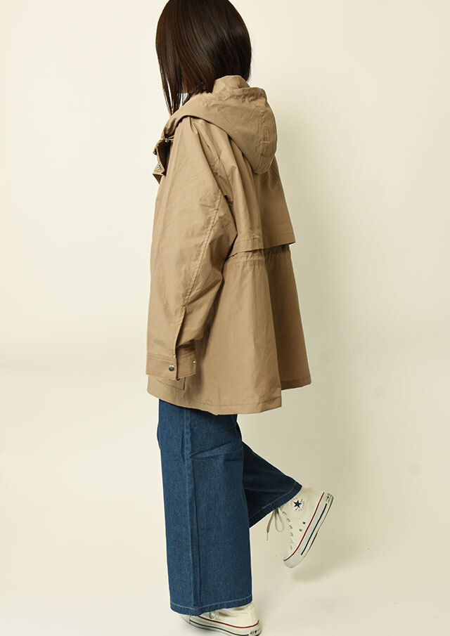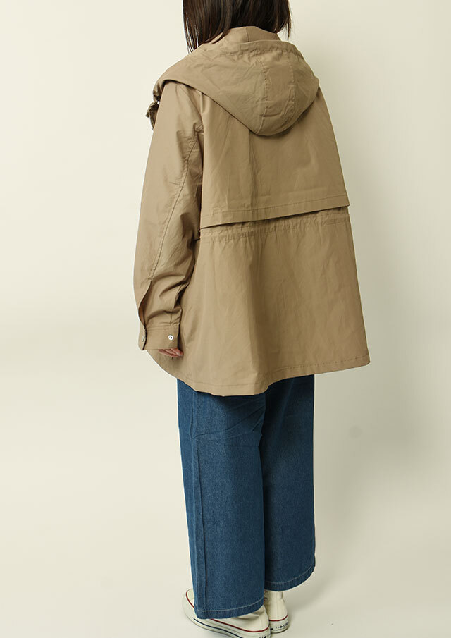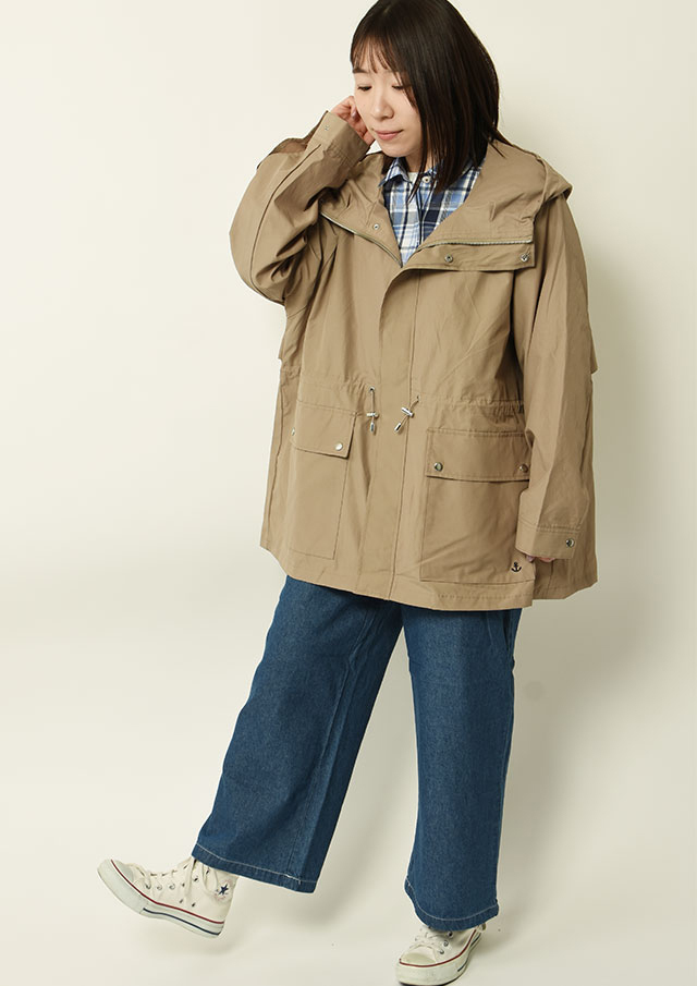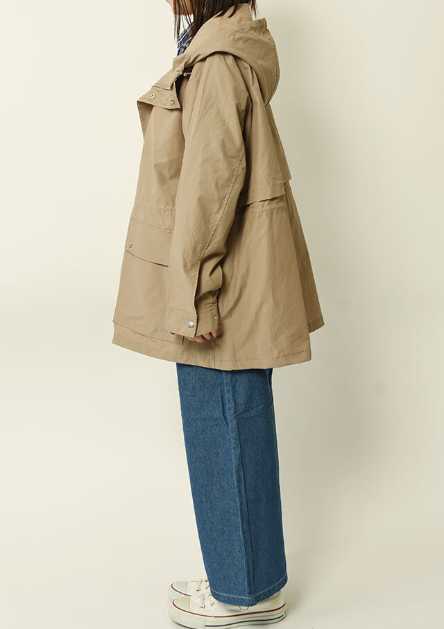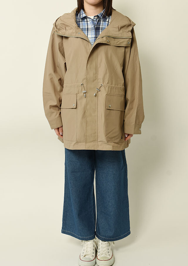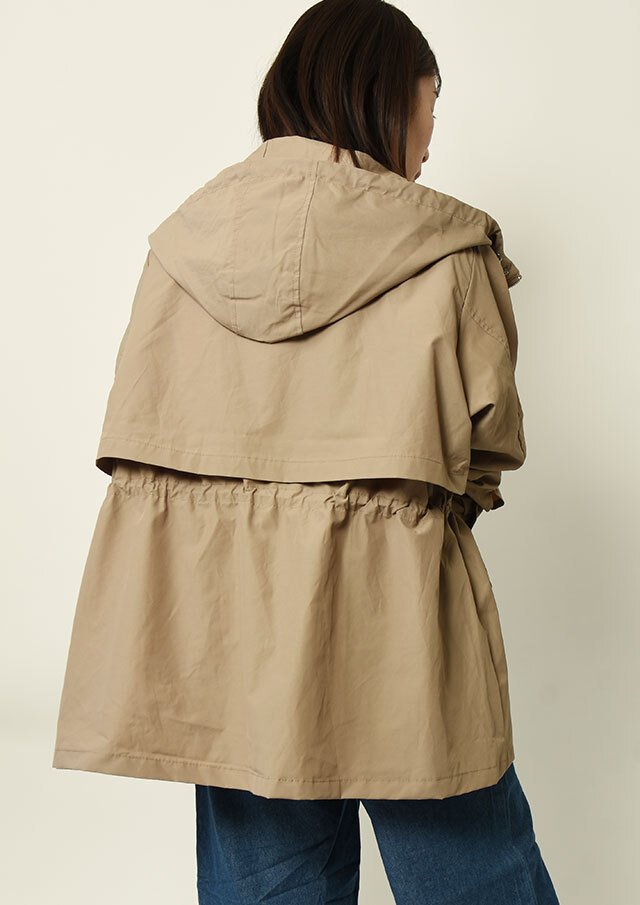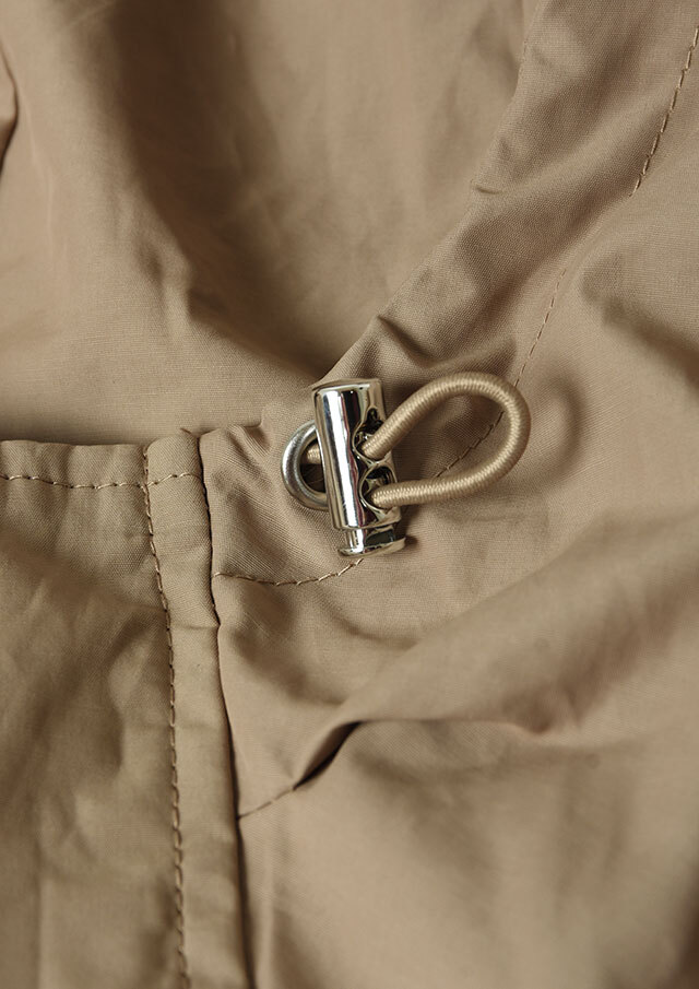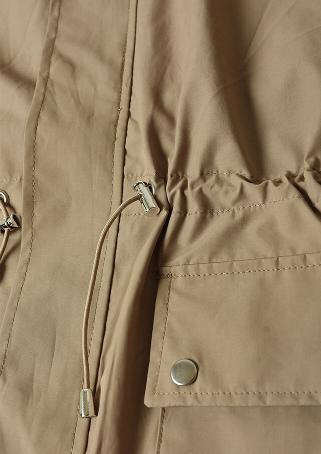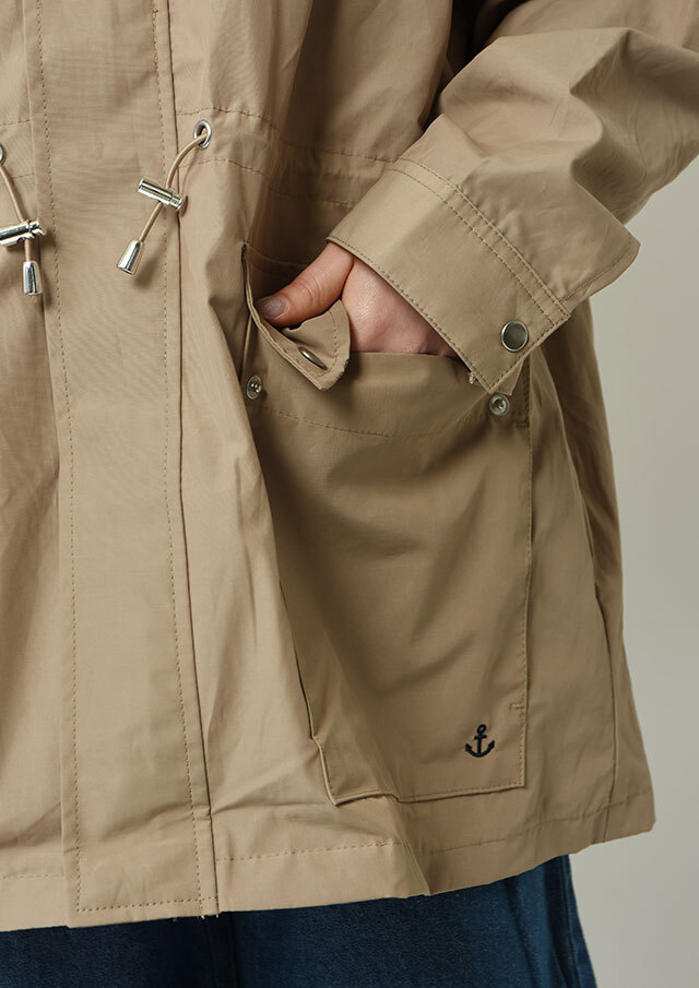 ライトな着心地でロングシーズン活躍するミリタリー風ミドル丈ジャケット。撥水加工が施されているので、タウンユースはもちろんレジャーシーンなど幅広くコーデでき、重宝する1着。ゆったり着れつつ、ウエスト部分のドロストを絞ってシルエットの変化も可能。ポケットも左右合わせて4つ!充実したデザインのライトアウターです。