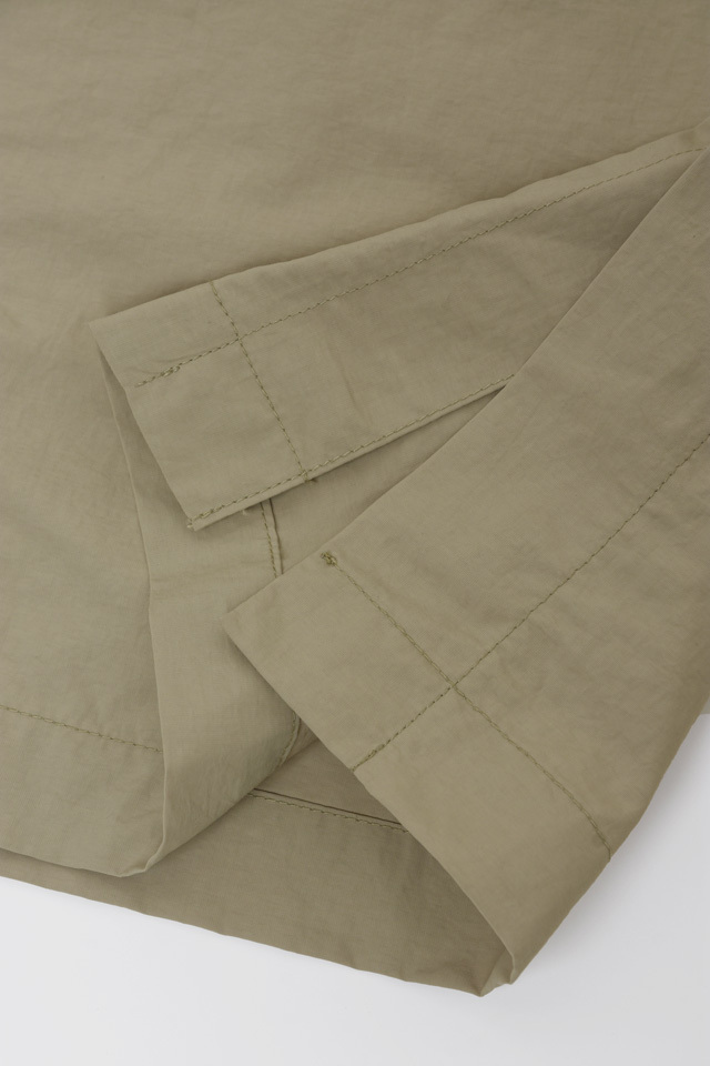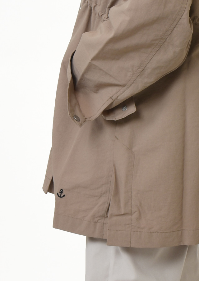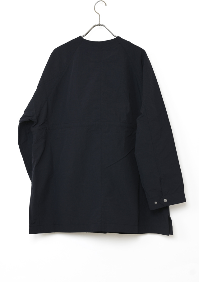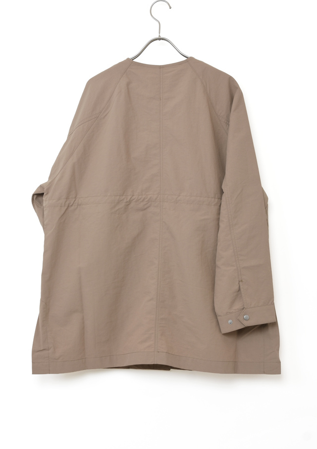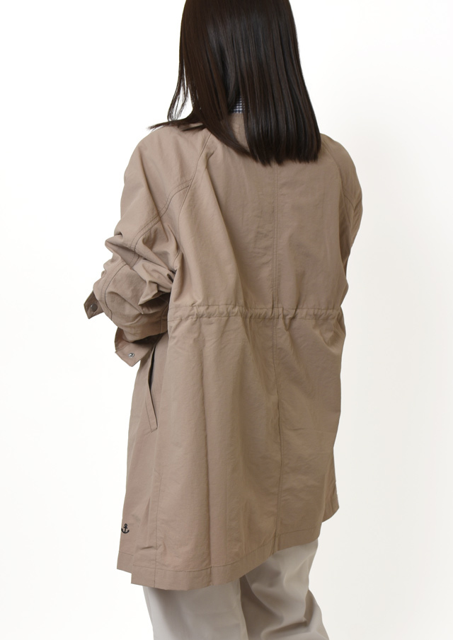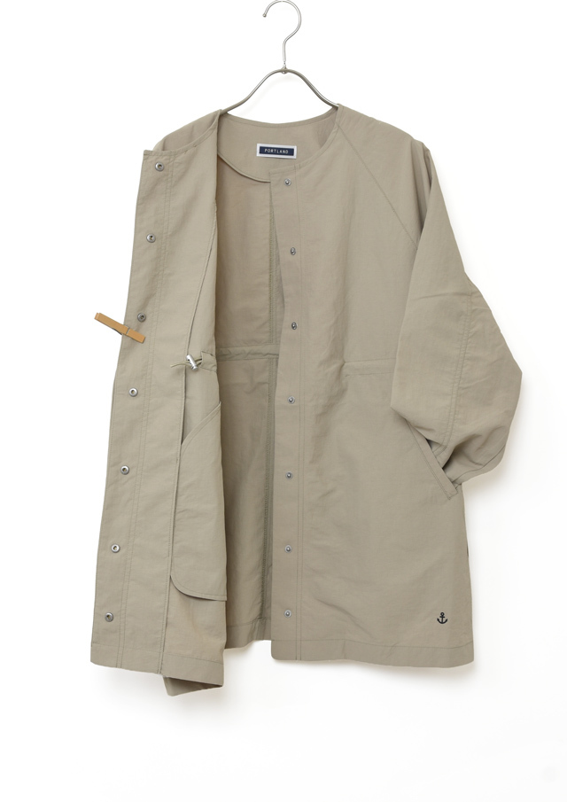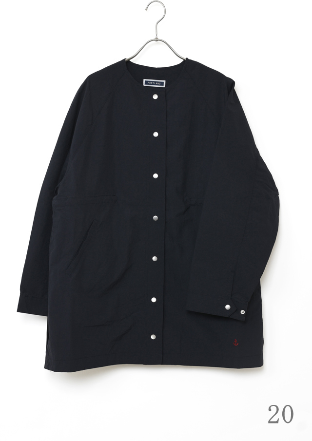 花粉が付きにくく、さっと払い落としやすい加工を施しているため、これからの季節のお出かけにも安心なノーカラーコート。ウエストにはドロストコードを施し、絞り具合でシルエットの変化を楽しめるデザインです。ノーカラーデザインなので、インナーやストールなど小物次第で襟元のレイヤードを楽しめます。ミドル丈で軽やかな印象に仕上がり、パンツはもちろんスカートスタイルとも好相性の一着です。