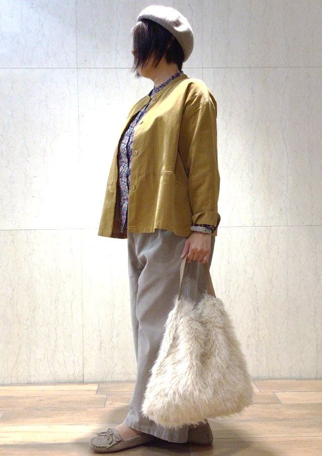 コーデュロイの柔らかな質感とリバティプリントの繊細な柄が